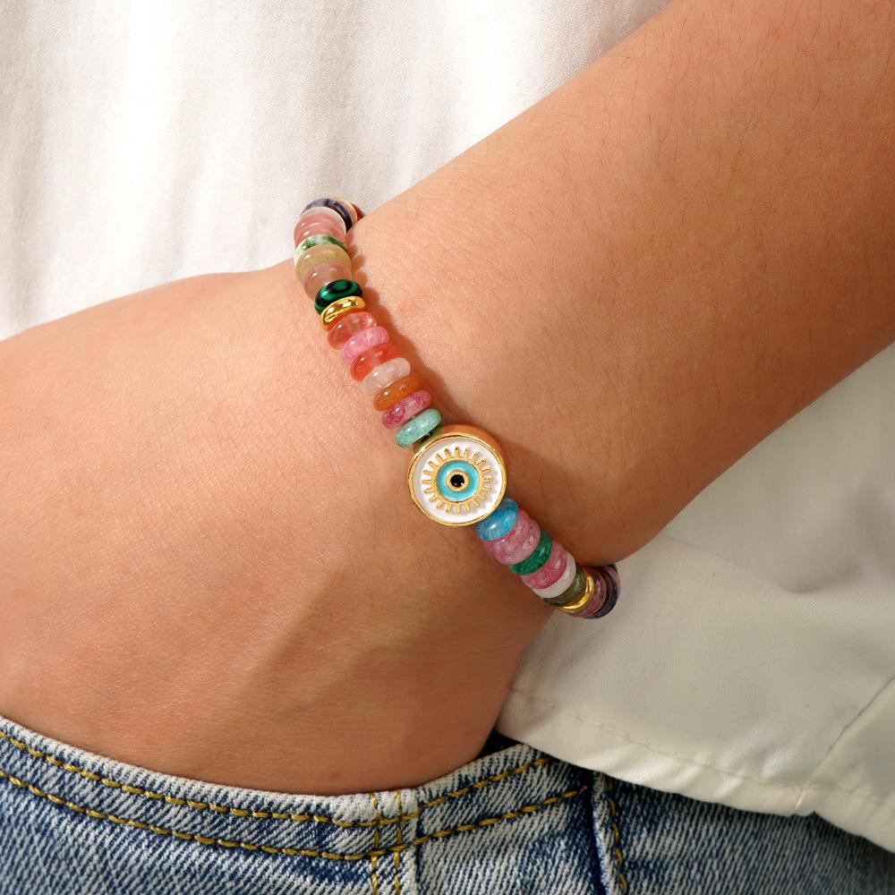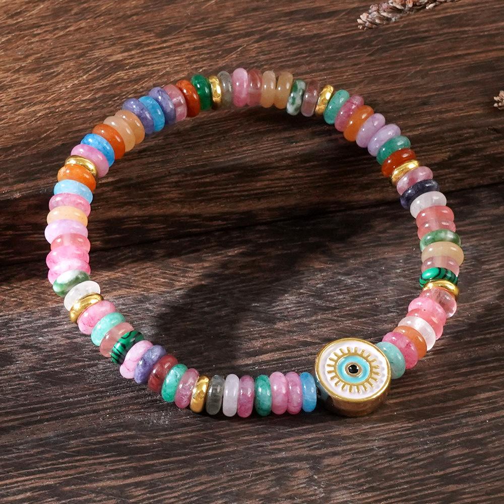 Pulsera Transfronteriza de Moda Simple Bohemia Espaciador de Cobre Color Mezclado Pulsera de Piedra Natural con Ojo de Demonio de Aleación