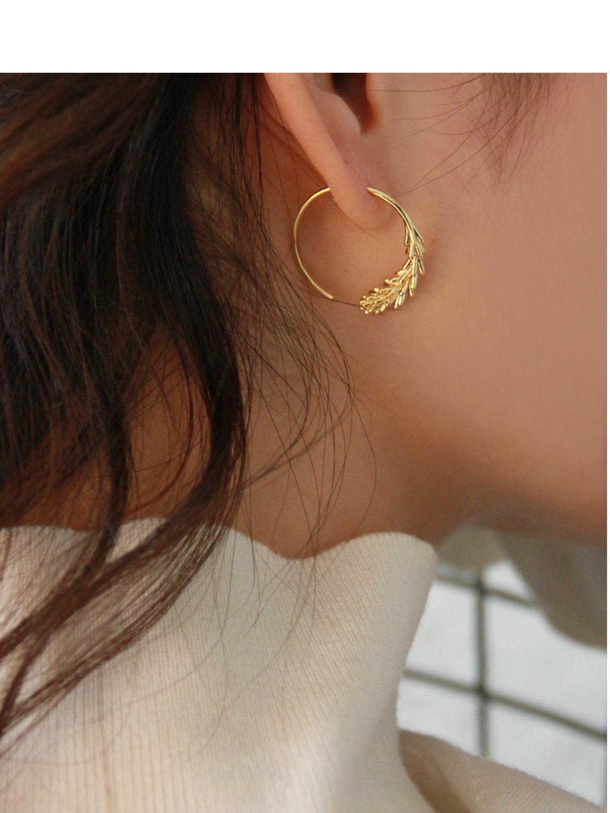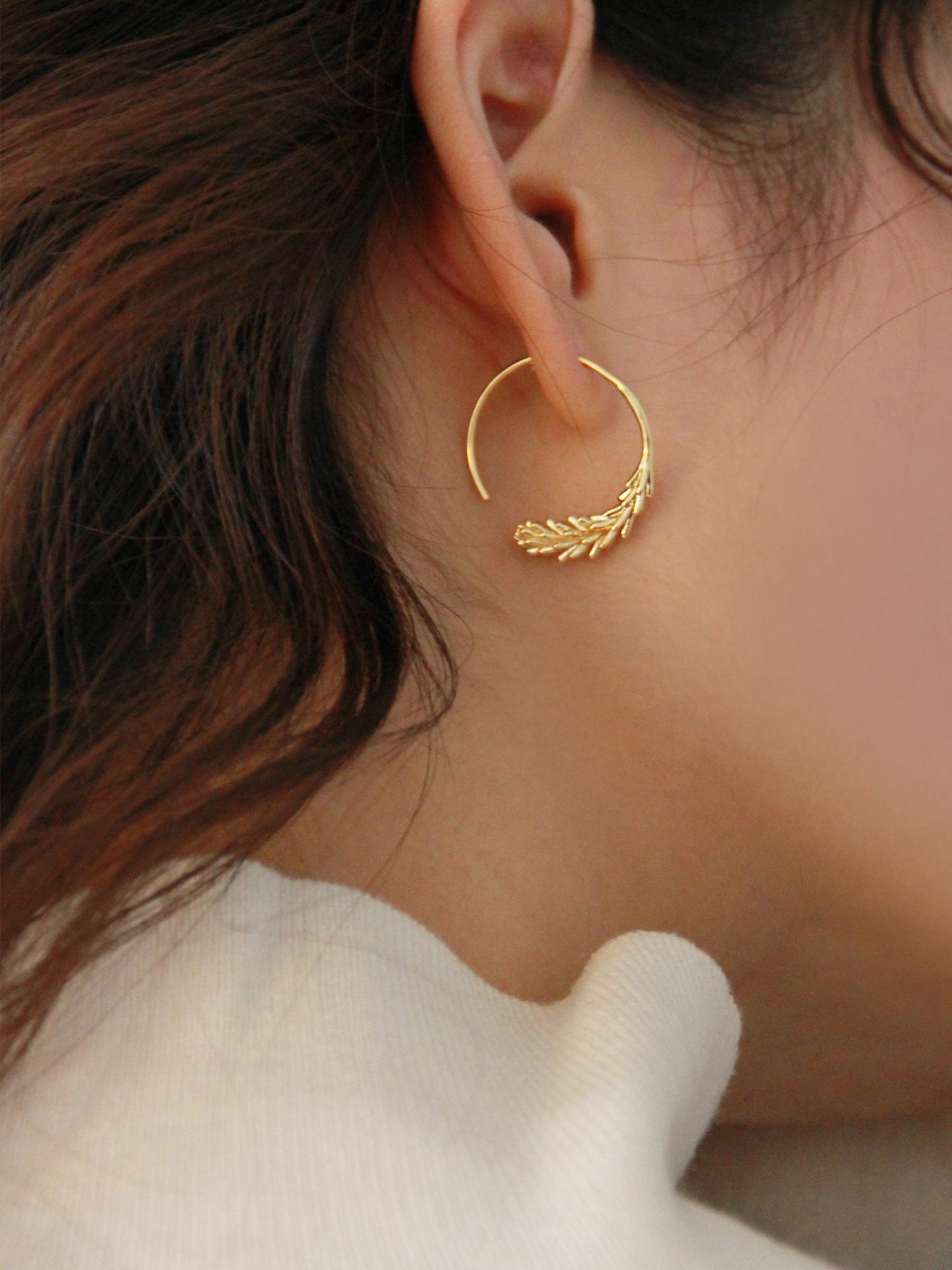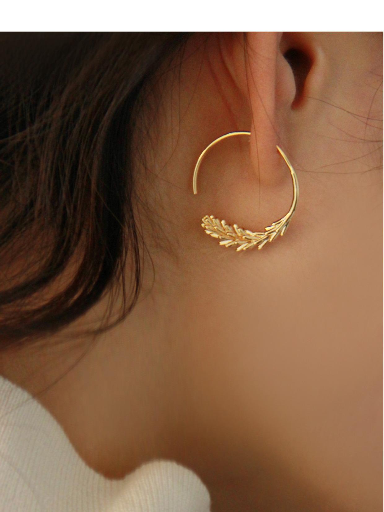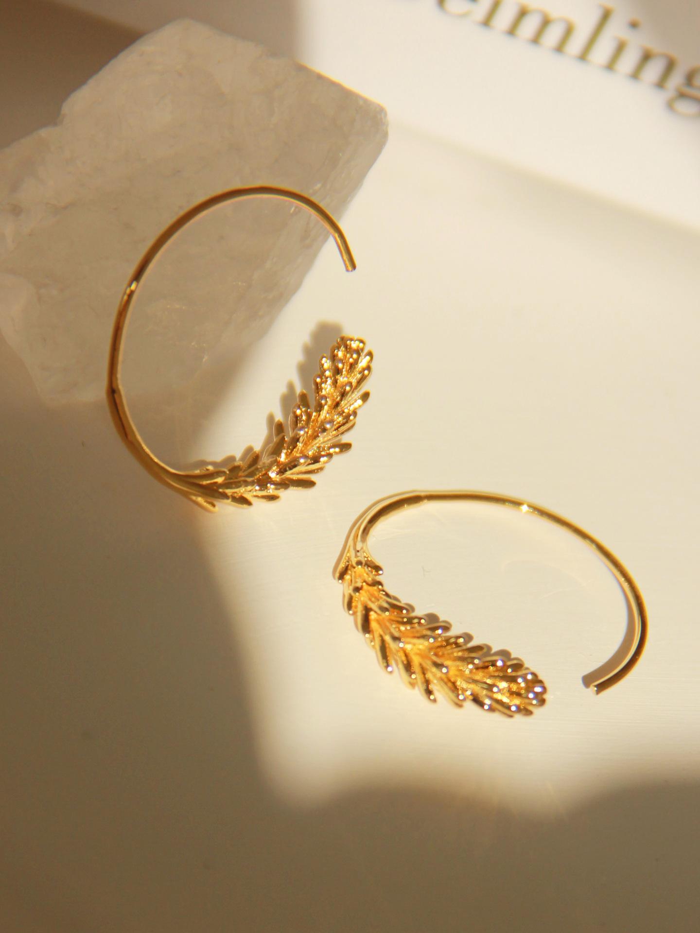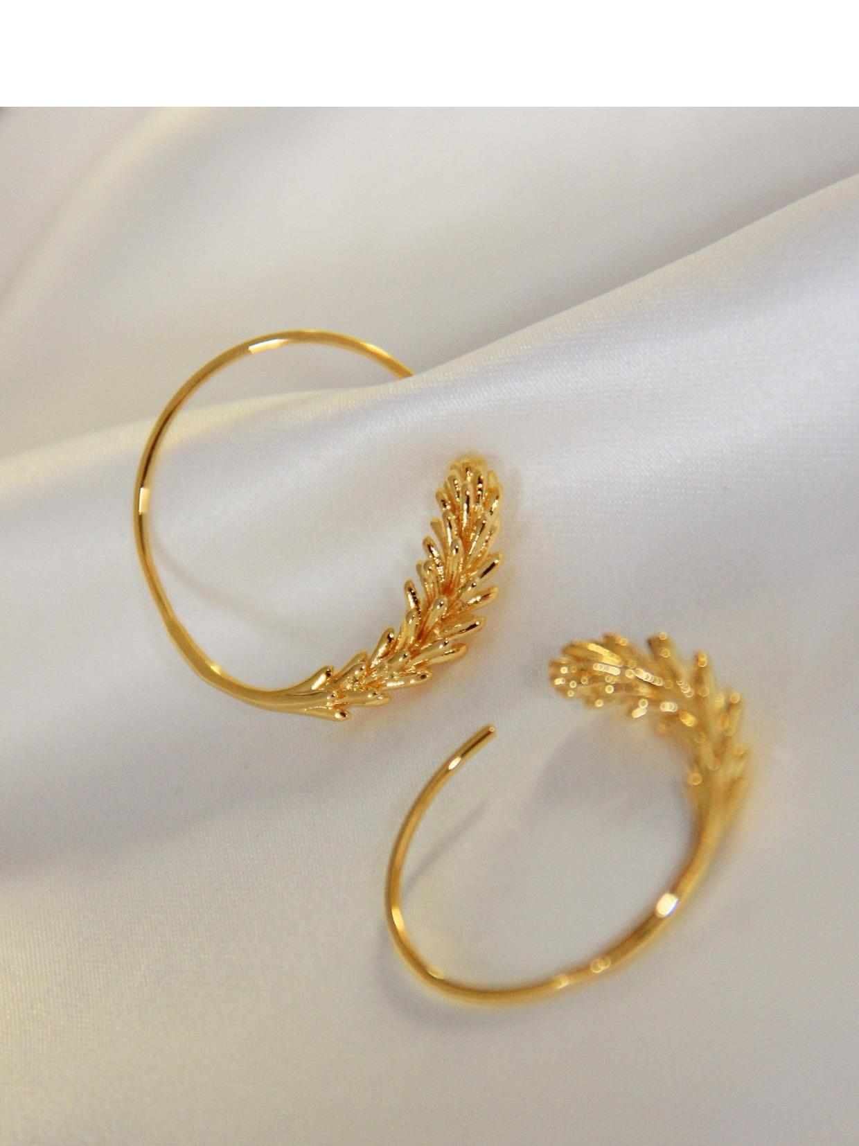 Pendientes pequeños con gancho para oreja de trigo, redondos, sencillos, chapados en oro antiguo, de diseño nicho francés, de estilo retro y moderno.