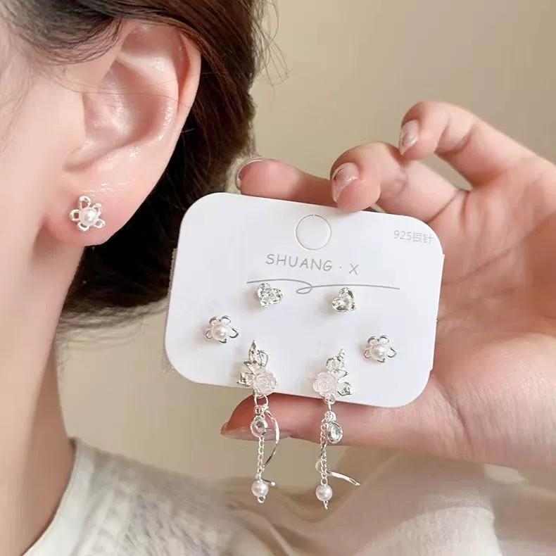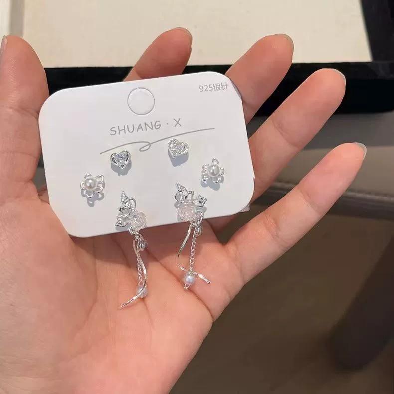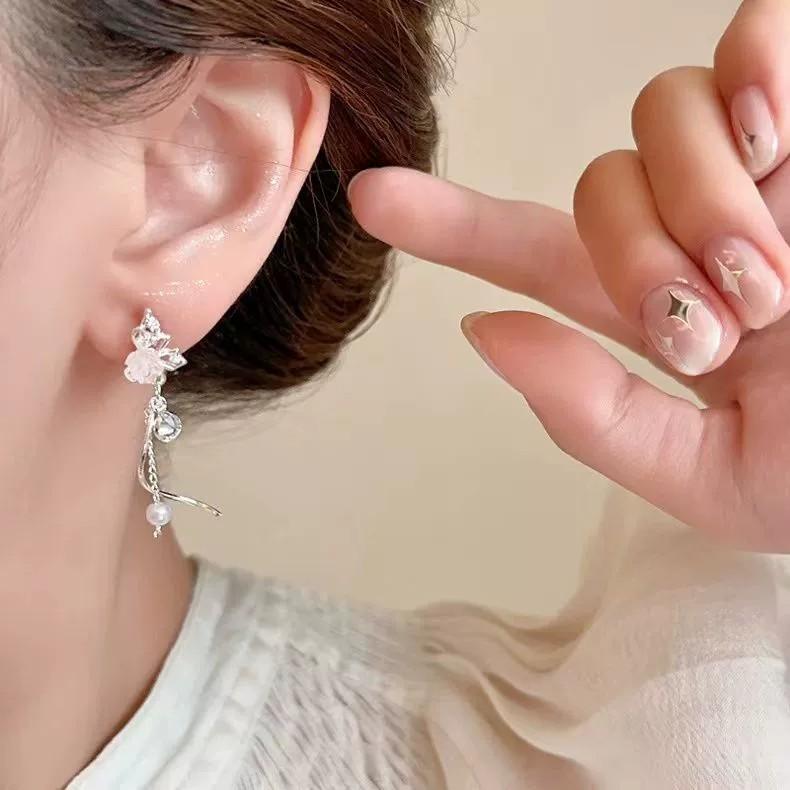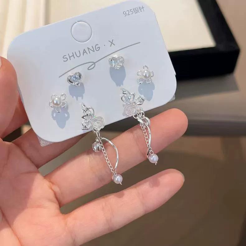 Butterfly tassel six-piece set, Icy rose tassel butterfly earrings