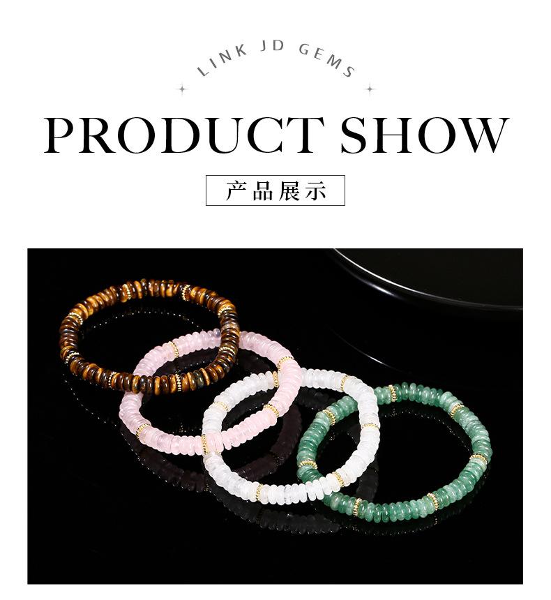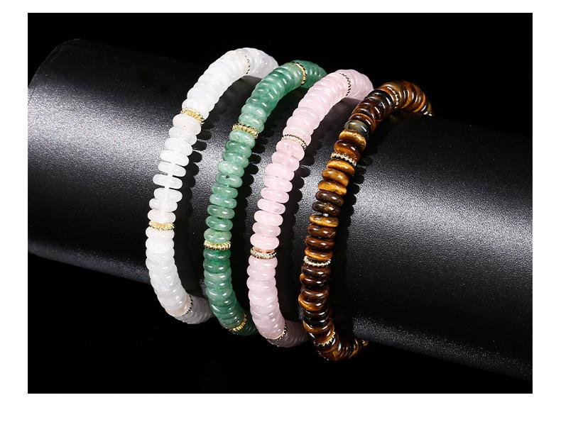 Natural green aventurine disc bracelet (alloy), Natural rose quartz disc bracelet (alloy), Natural yellow tige...