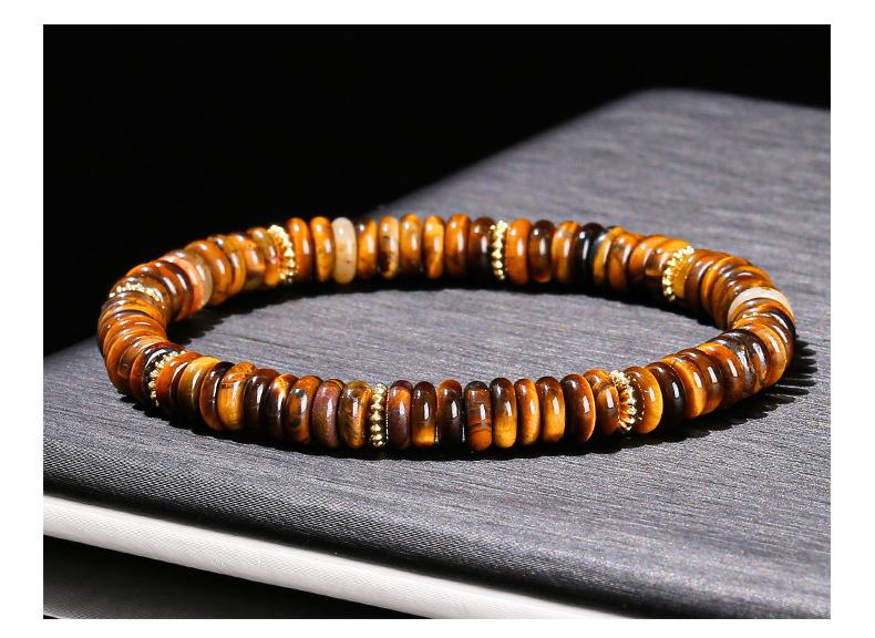 Natural yellow tiger eye stone disc bracelet (alloy)