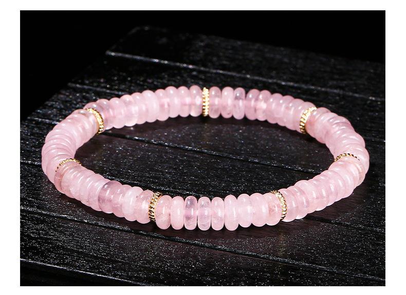 Natural rose quartz disc bracelet (alloy)