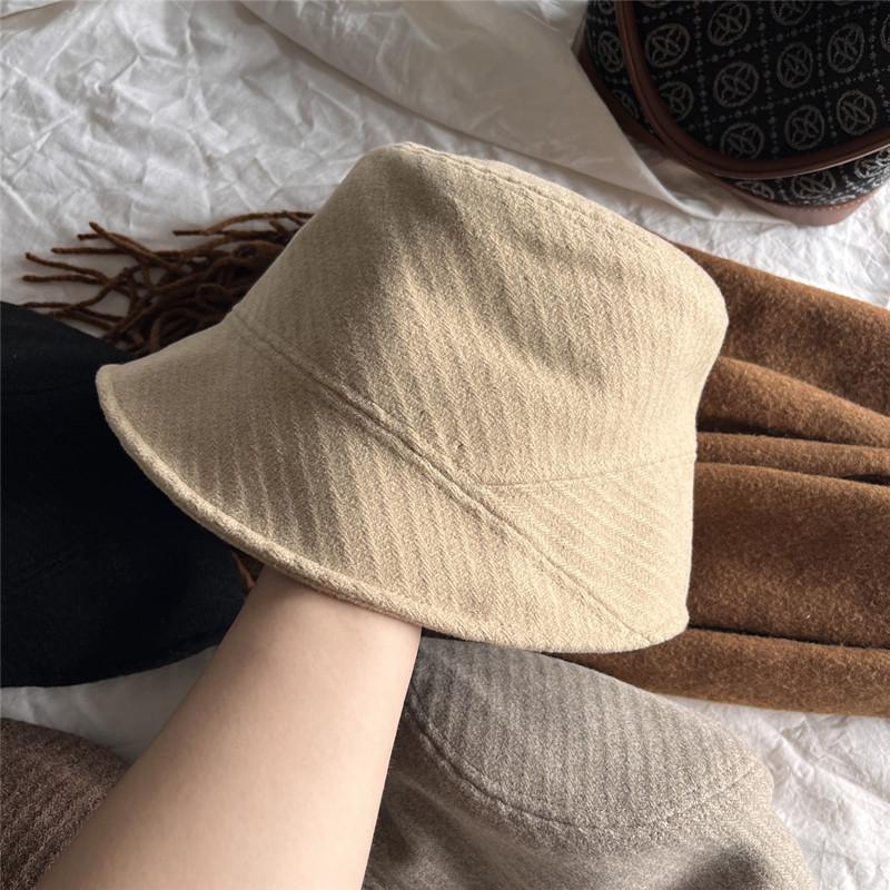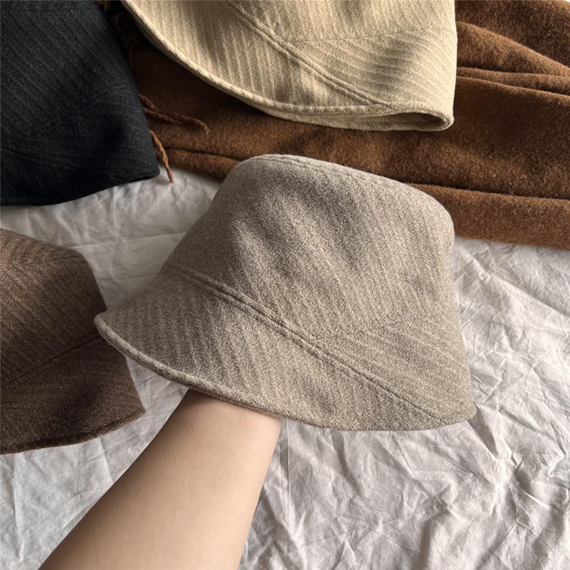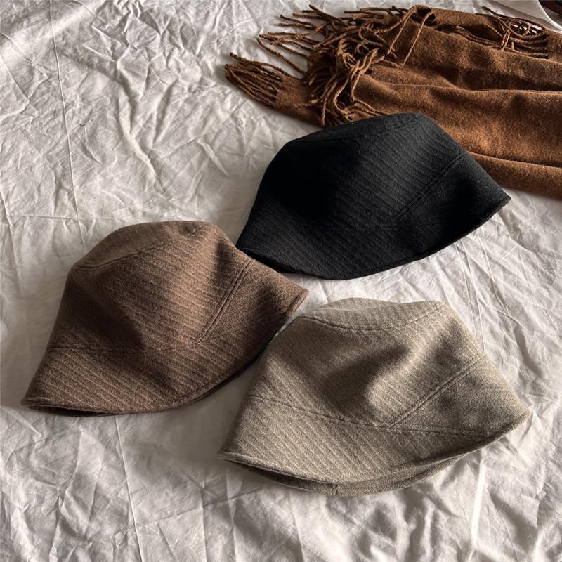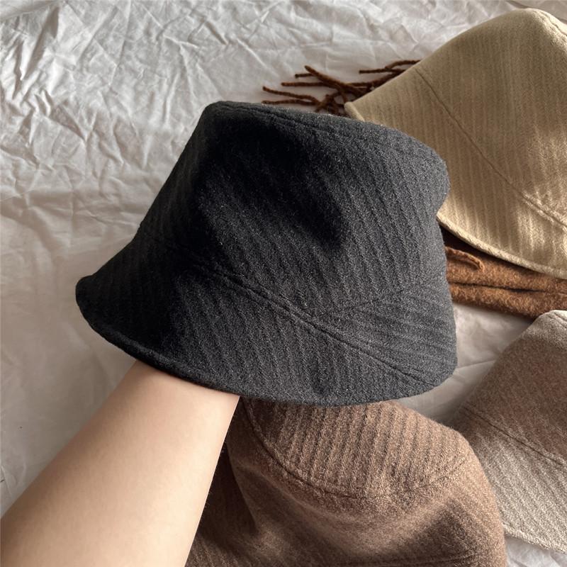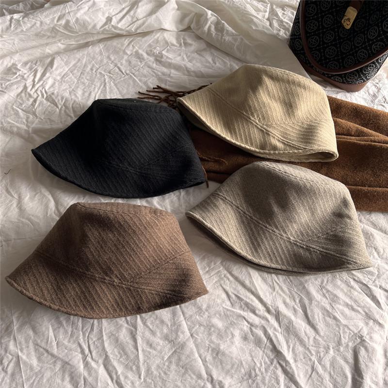 Sombrero de pescador de lana de Corea del Sur para mujer 2023 Nuevo Otoño e Invierno Alto Sentido Rostro Pequeño Sombrero de Cubo Negro Sombrero para Cabeza Grande