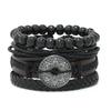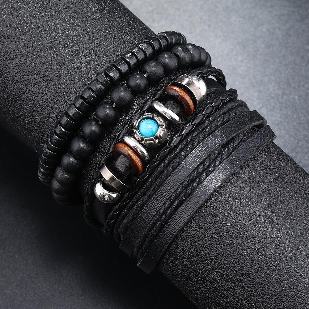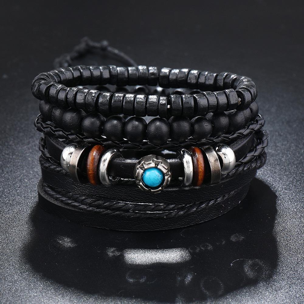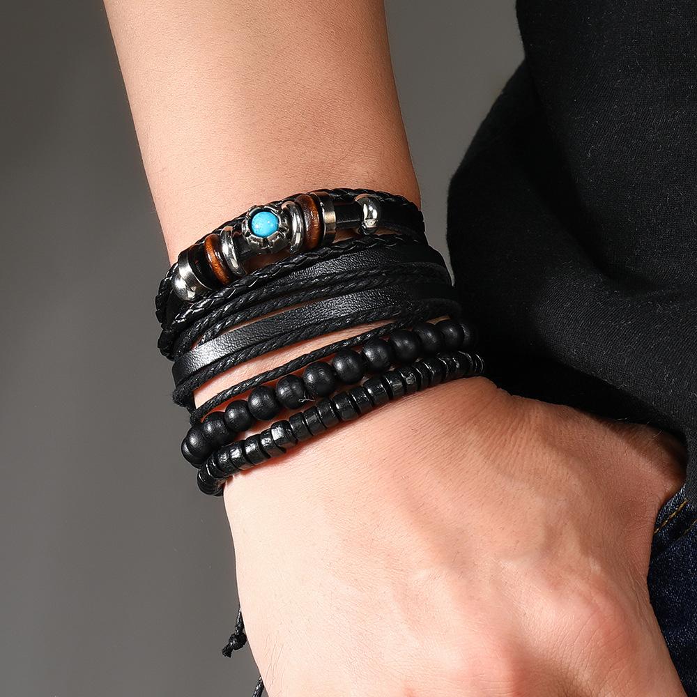 Pulsera tejida a mano de cuero multicapa retro para hombre, estilo punk, estilo transfronterizo europeo y americano, venta directa de fábrica