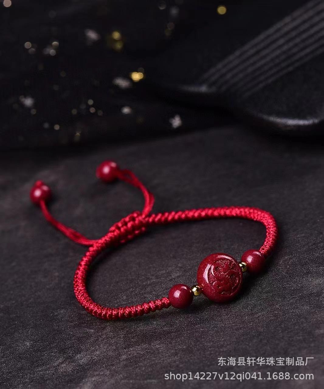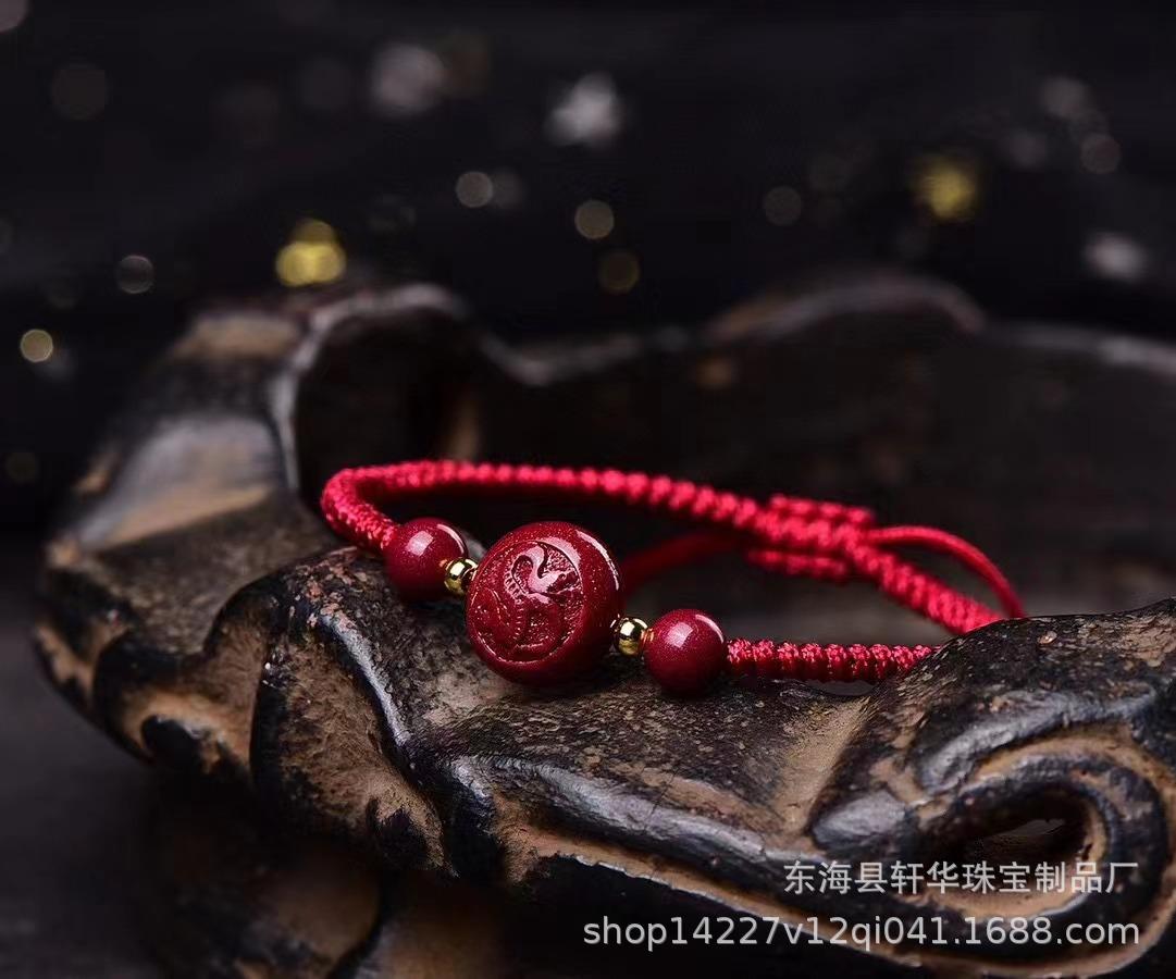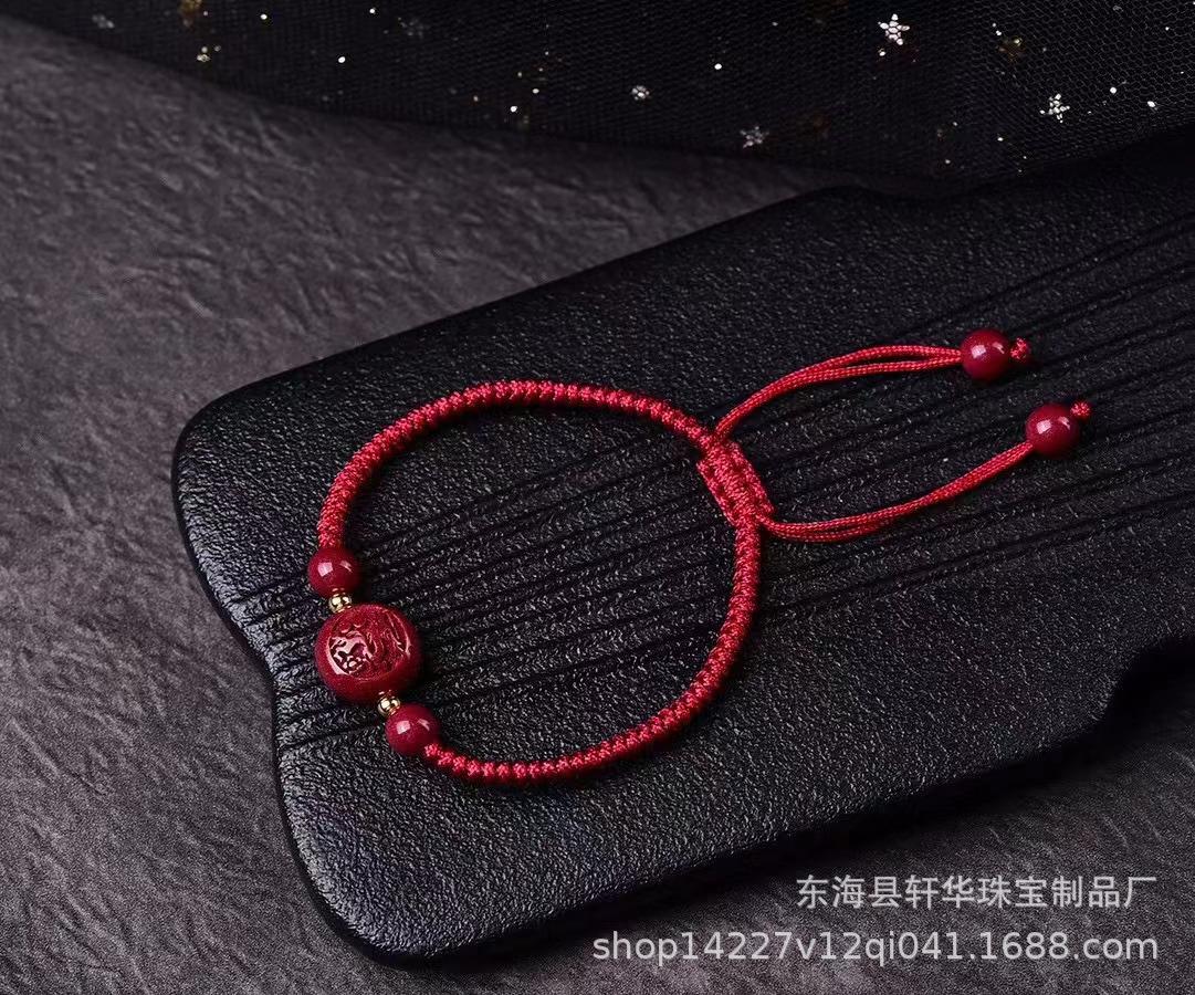 Pulsera de Cuerda de Mano Tejida a Mano con Nudo Diamante de Arena de Oro Púrpura de Alto Contenido Zodíaco Cinabrio Natural para Pareja Año de Nacimiento