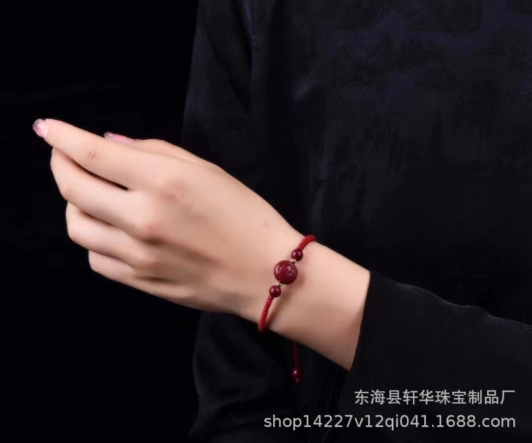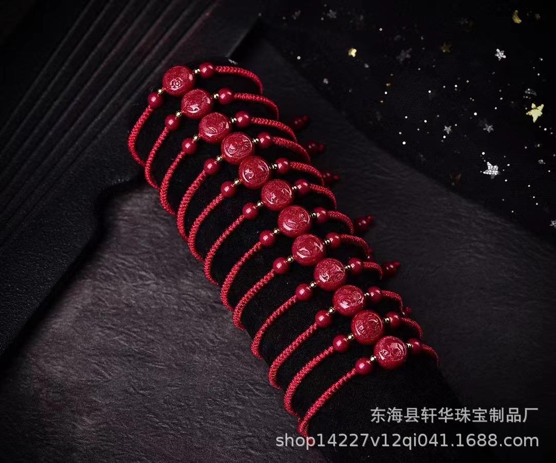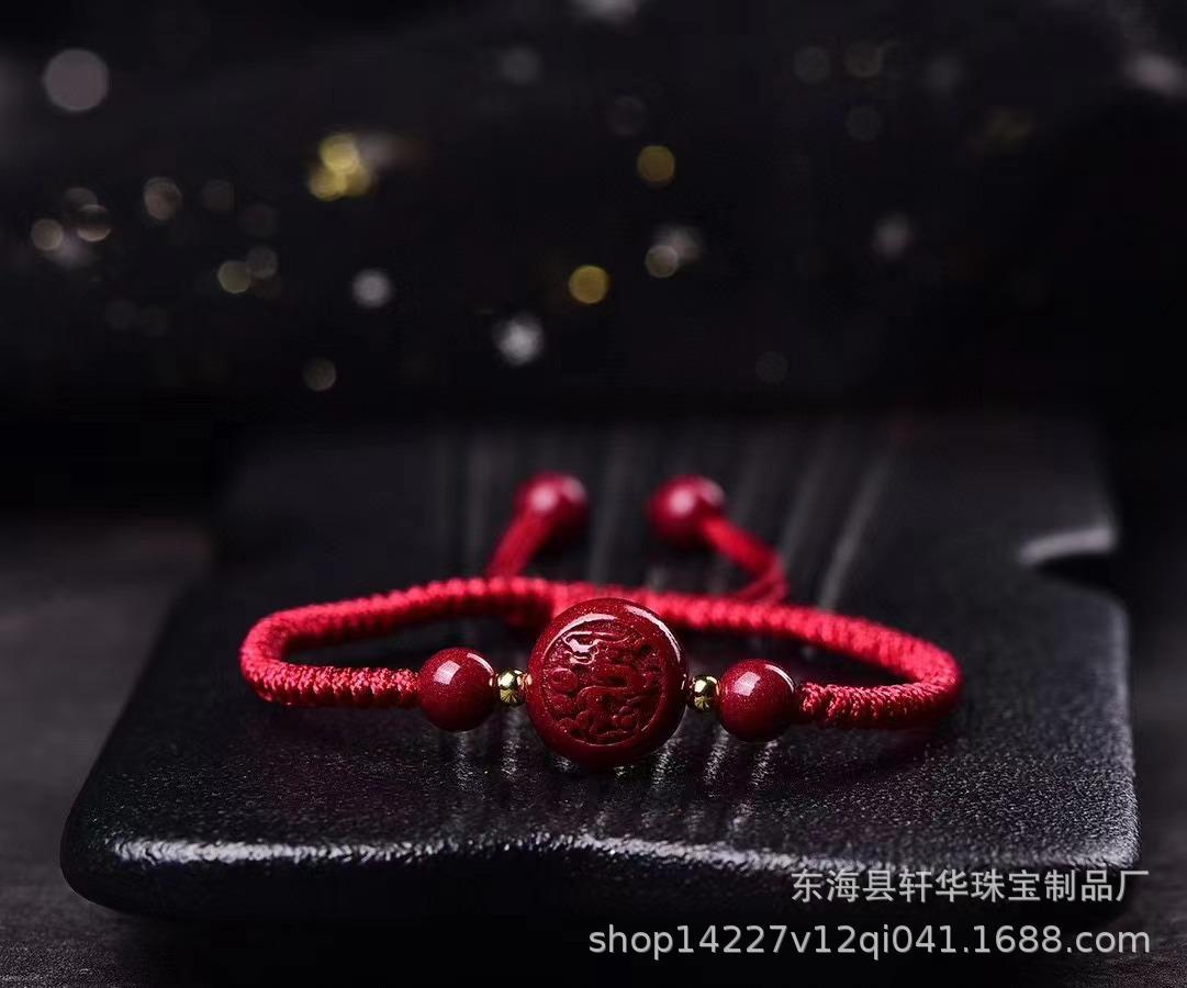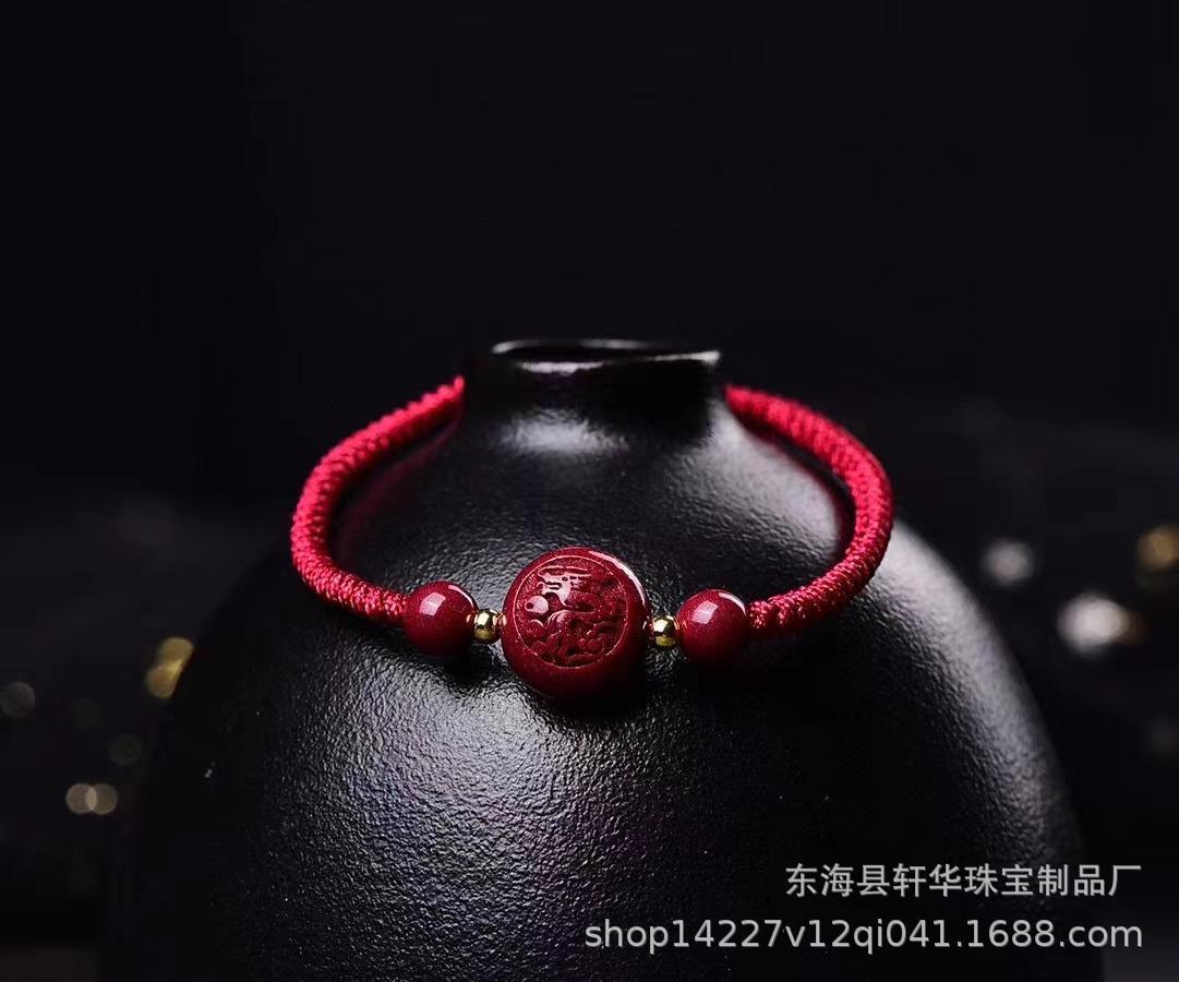 Pulsera de Cuerda de Mano Tejida a Mano con Nudo Diamante de Arena de Oro Púrpura de Alto Contenido Zodíaco Cinabrio Natural para Pareja Año de Nacimiento