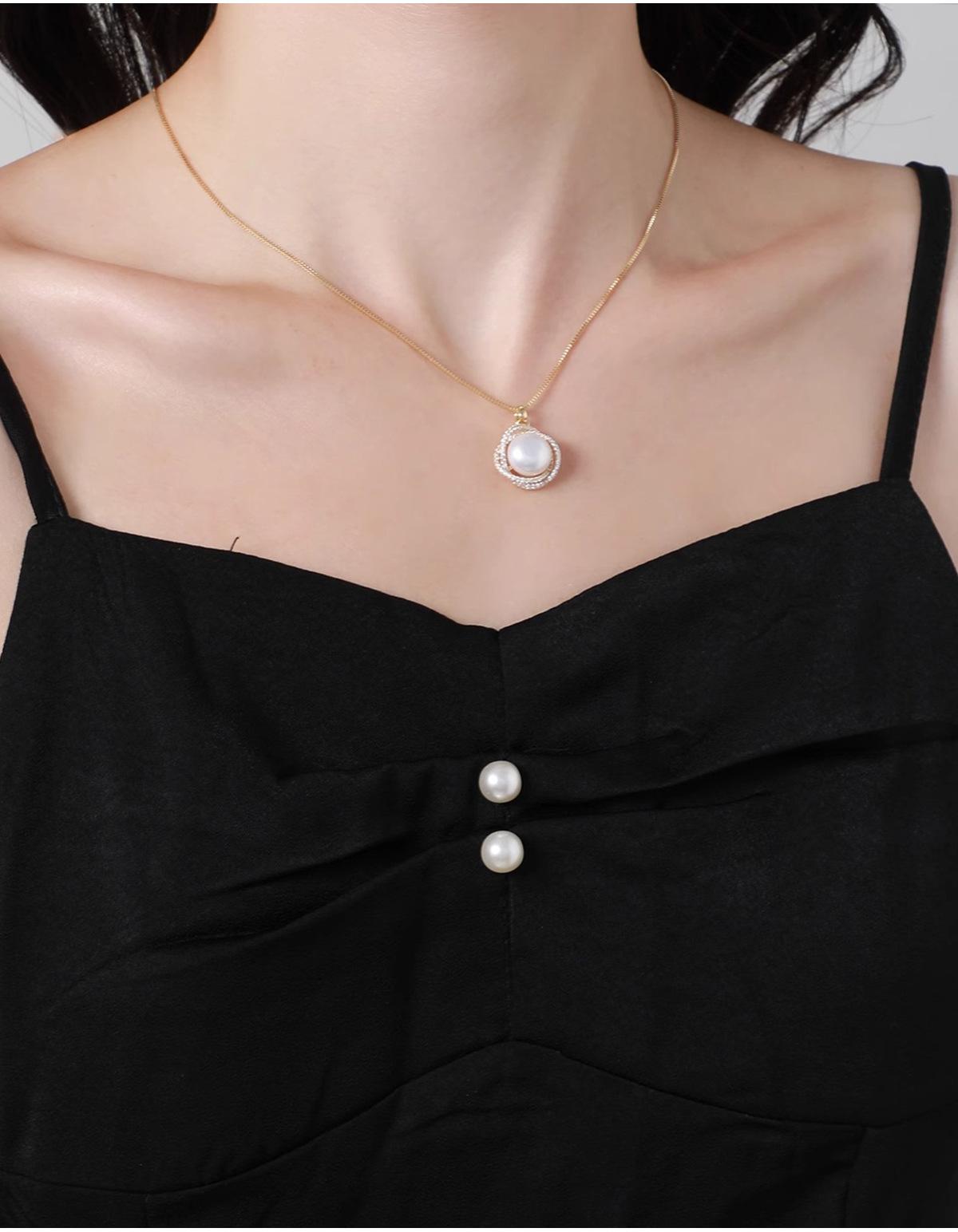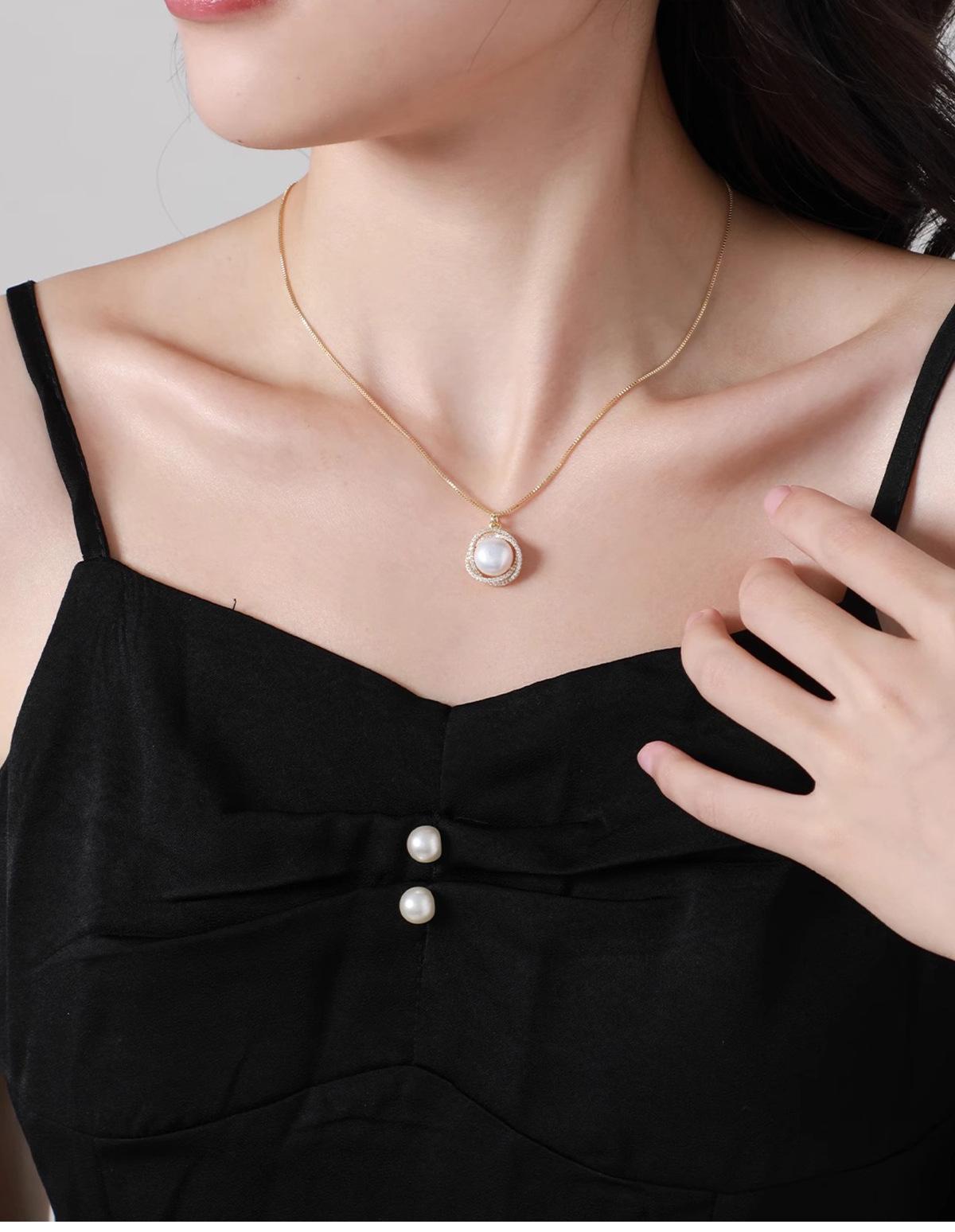 Collar con Colgante de Perlas Retro Francés Nuevo 2025 para Mujer Diseño de Lujo Ligero de Alta Gama Cadena para Clavícula de Circonita Micro-Incrustada