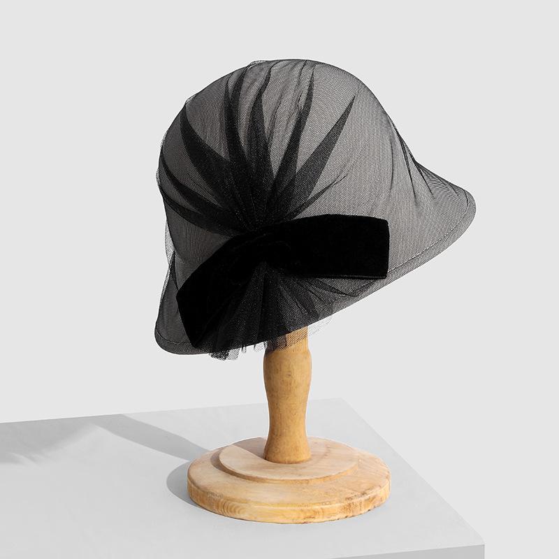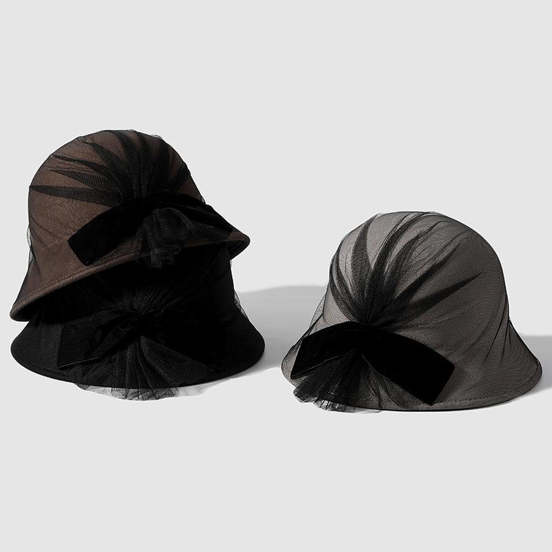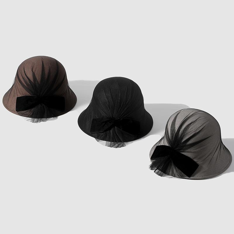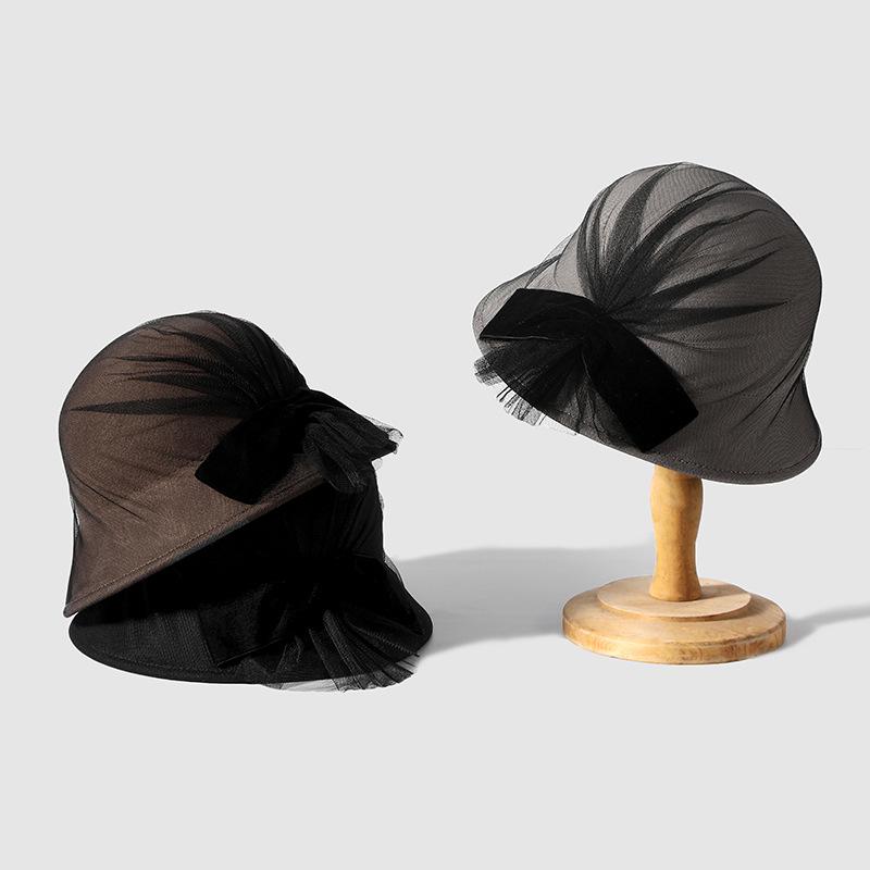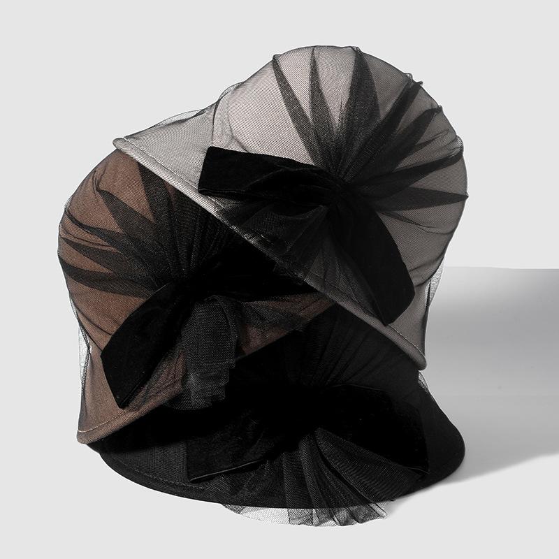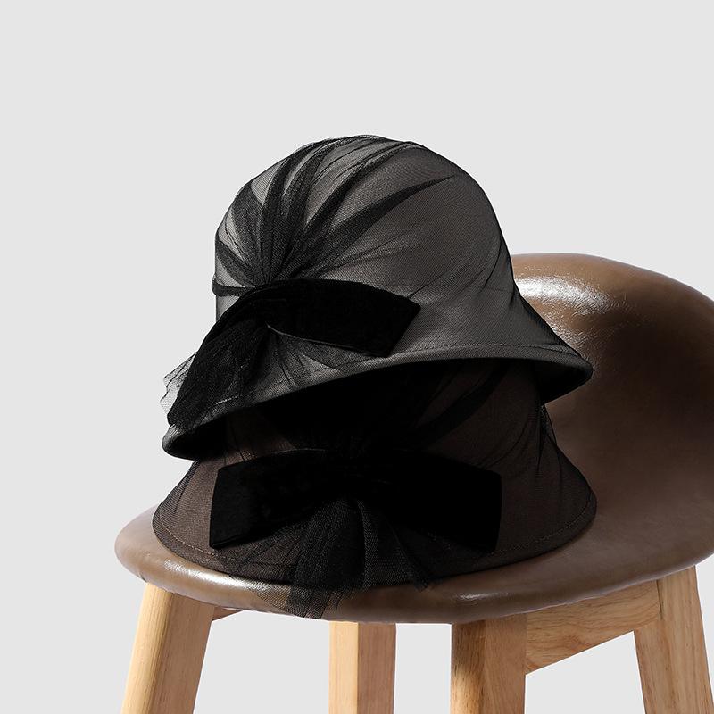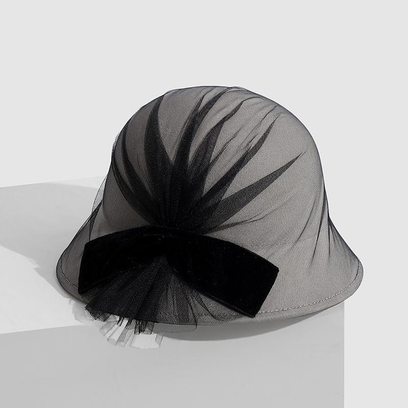 Hua Qiao otoño e invierno nuevo CA4LA sombrero de copa de red de encaje sombrero de pescador de arena sombrero de lavabo sombrero de fieltro de lana para mujeres