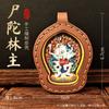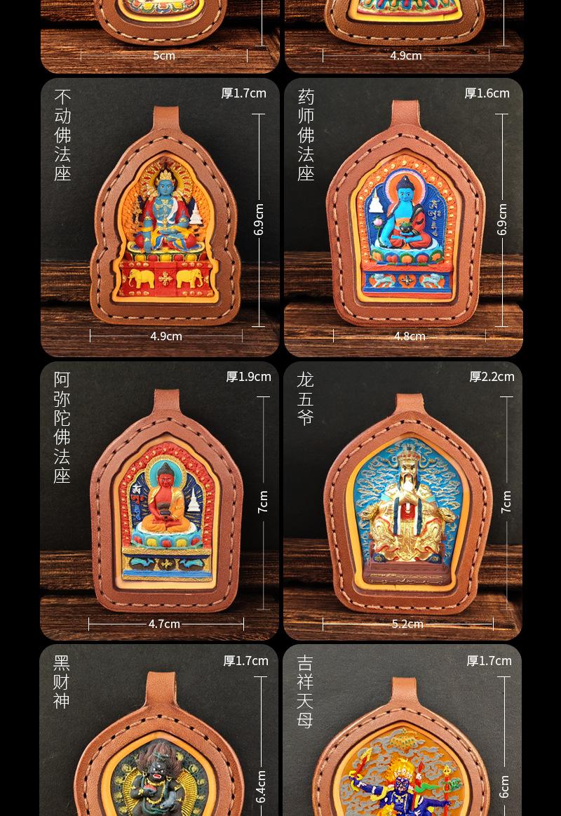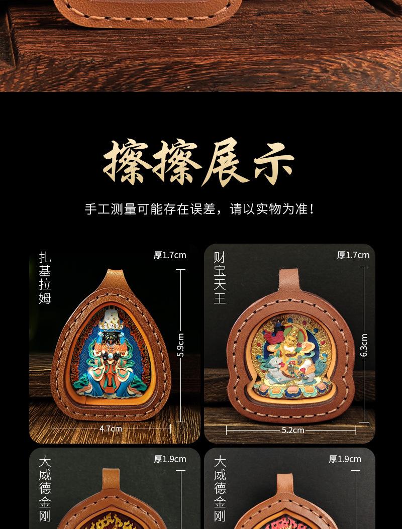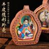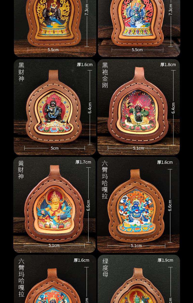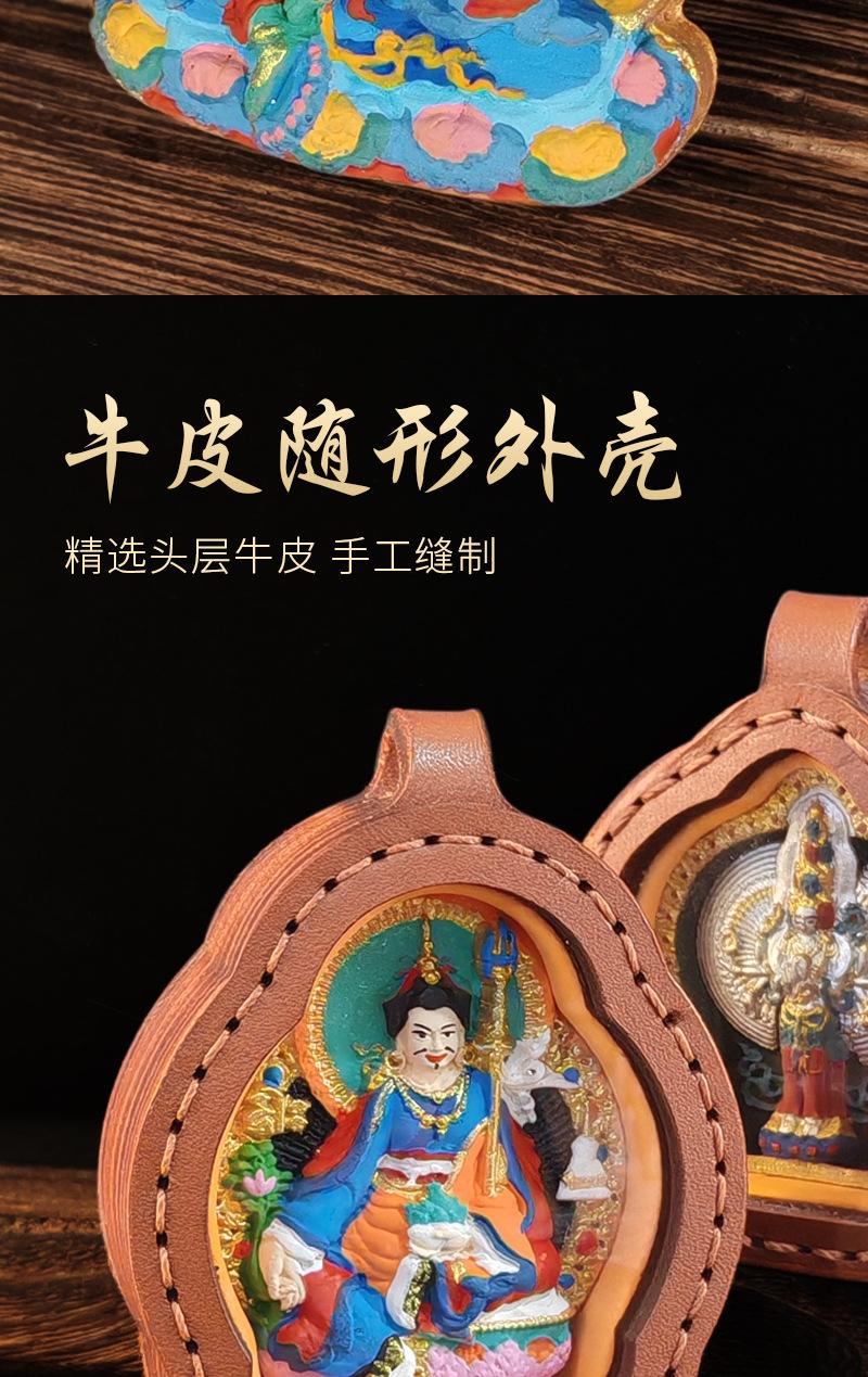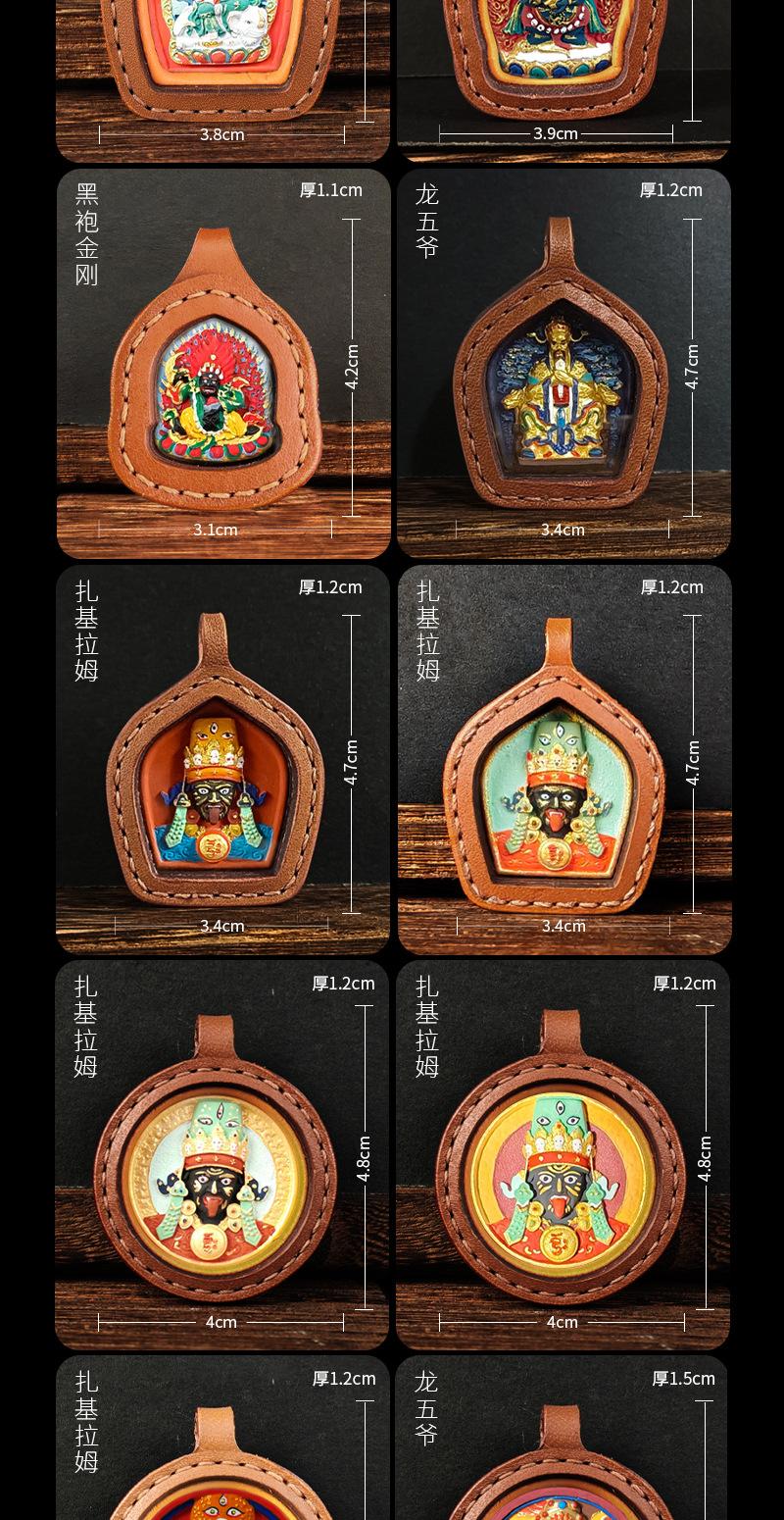 Zakiram Cinco Ancianos Estilo Tibetano Thangka Tridimensional Pintado a Mano Dios Amarillo de la Riqueza Caja Gawu Colgante Concha de Cuero Cosido