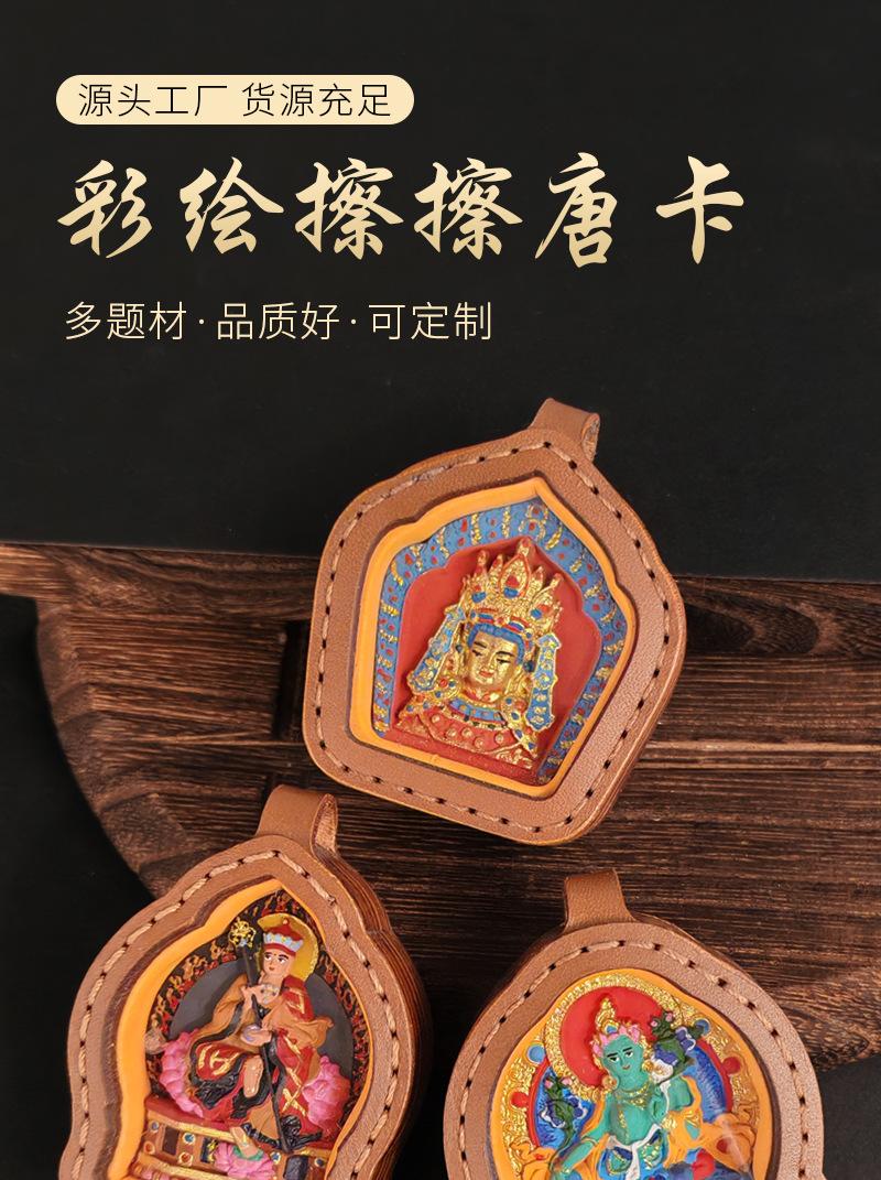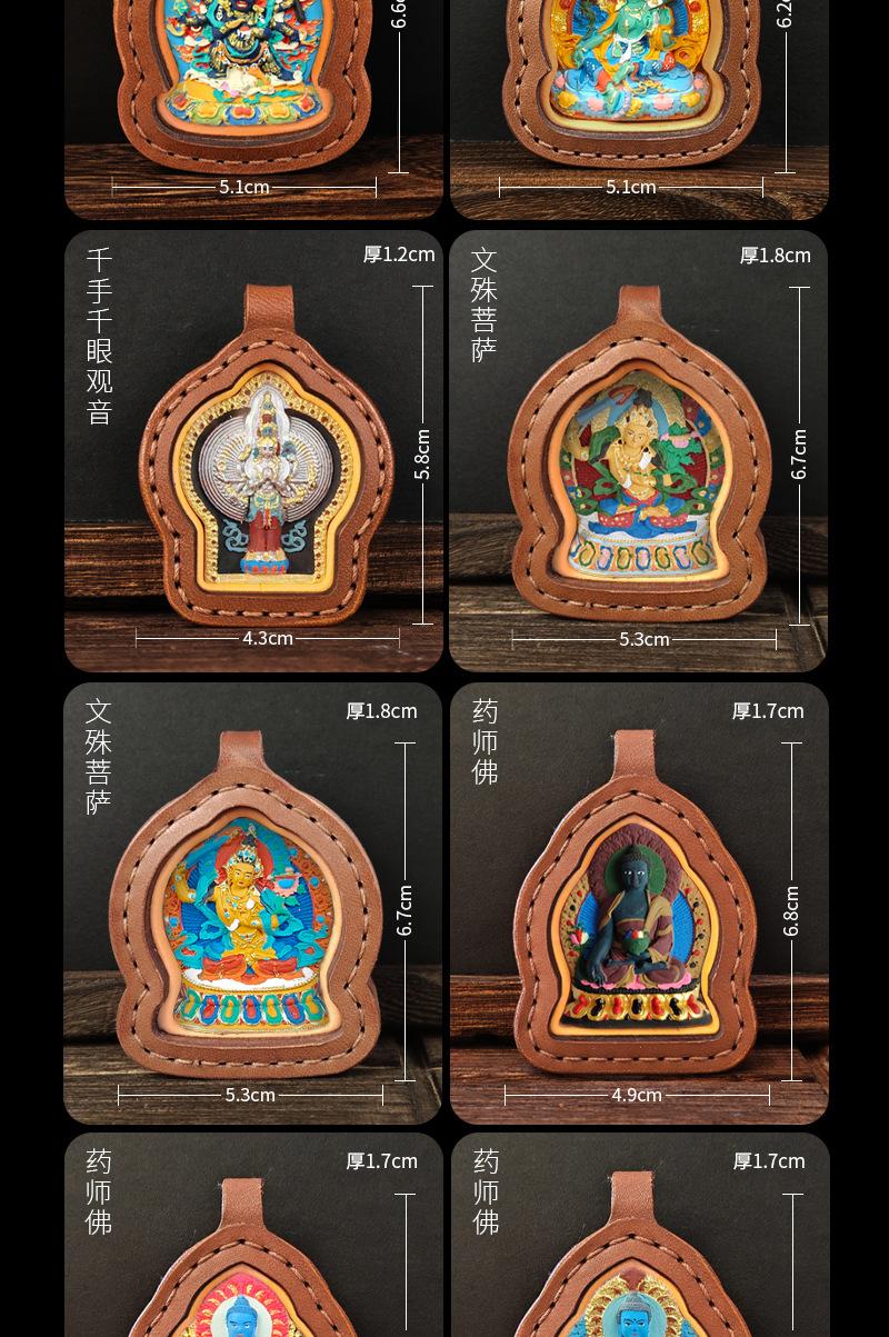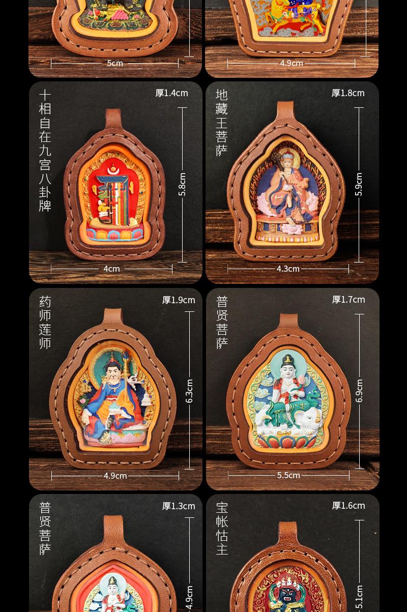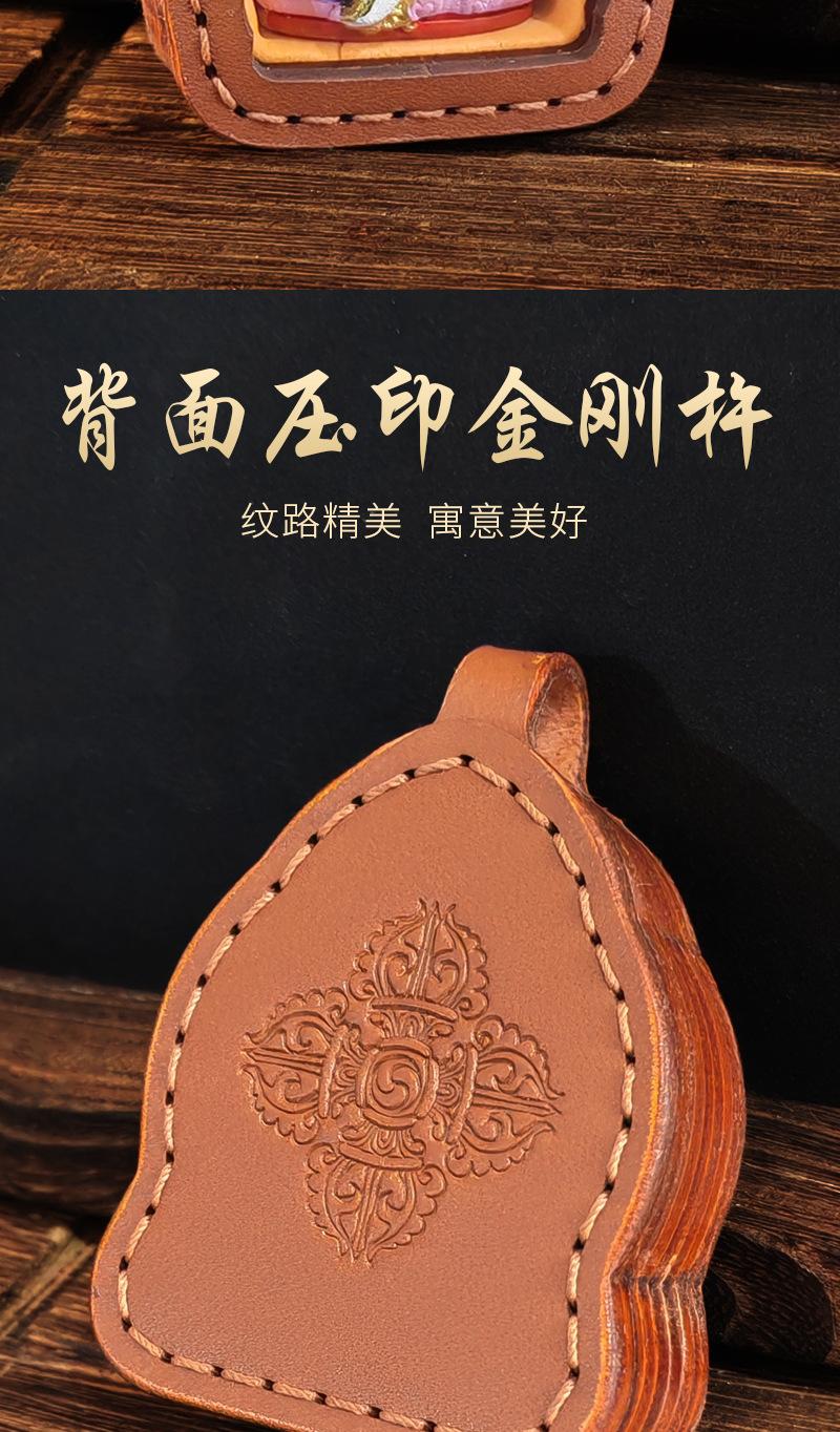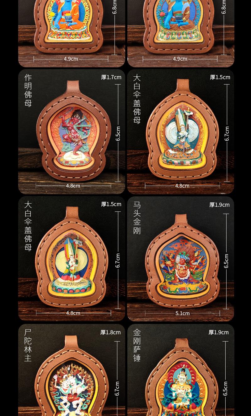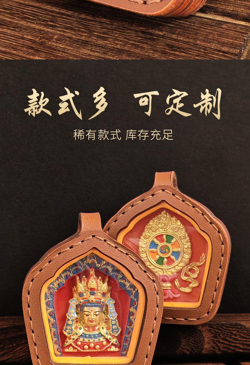 Zakiram Cinco Ancianos Estilo Tibetano Thangka Tridimensional Pintado a Mano Dios Amarillo de la Riqueza Caja Gawu Colgante Concha de Cuero Cosido