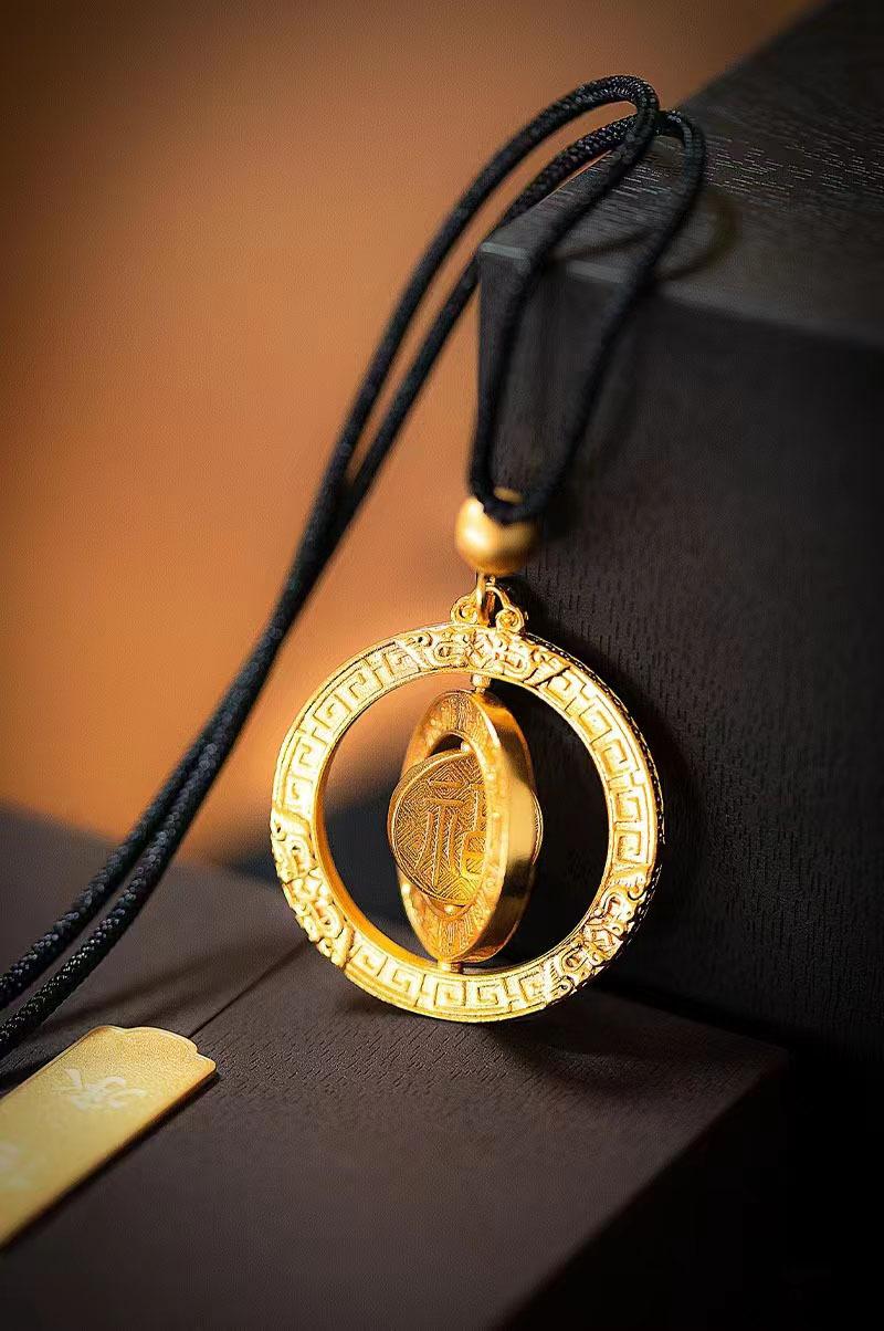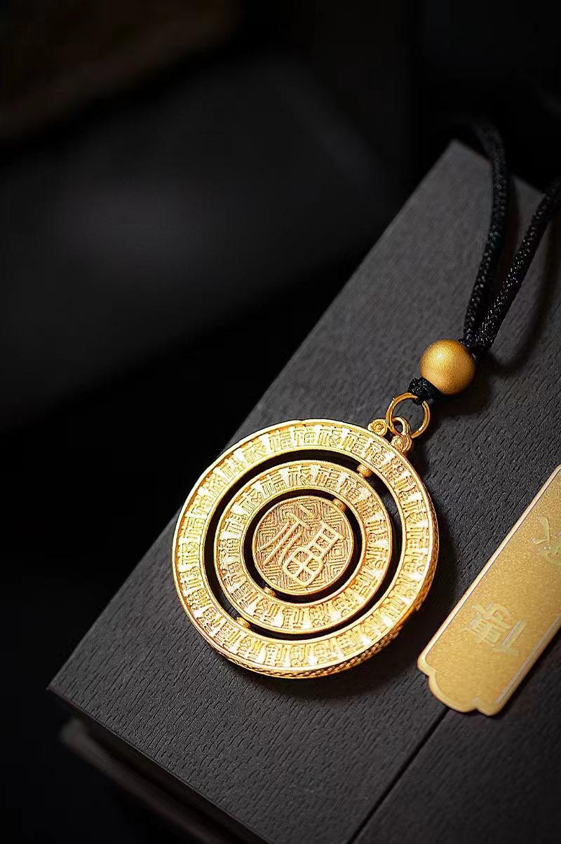 Colgante giratorio con hebilla de la paz Baifu, método antiguo, herencia, tiempo para ejecutar la palabra "fu", collar chapado en oro, colgante de oro de imitación, venta al por mayor.