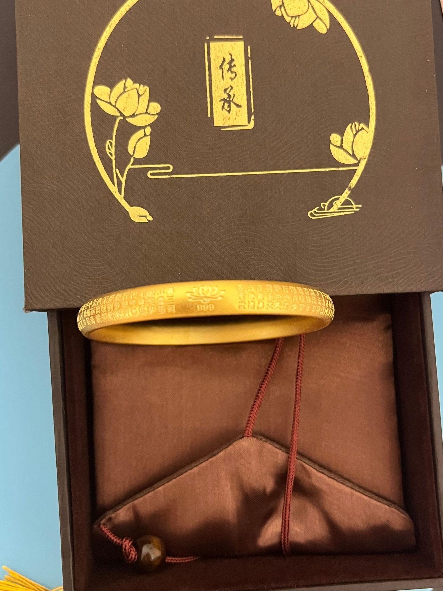Pulsera vietnamita de oro arena con método antiguo de herencia de loto y sutra con grabado exterior de sutra, anillo liso esmerilado sólido. Suministro en vivo.
