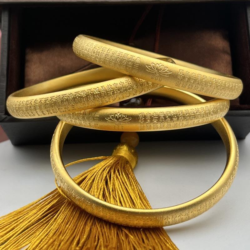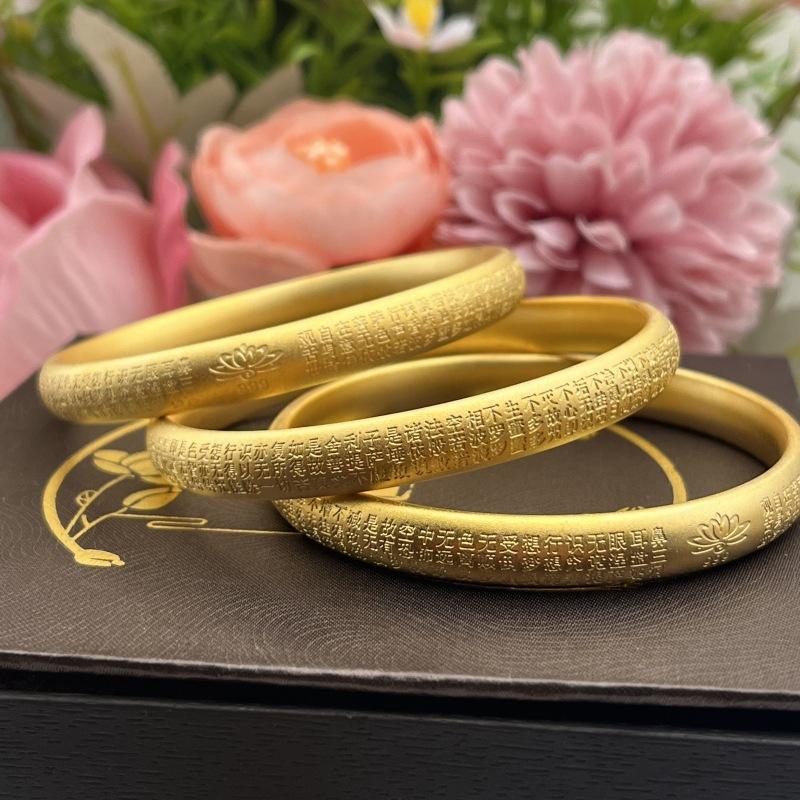 Compra Pulsera vietnamita de oro arena con método antiguo de herencia de loto y sutra con grabado exterior de sutra, anillo liso esmerilado sólido. Suministro en vivo. al por mayor en Joom.pro