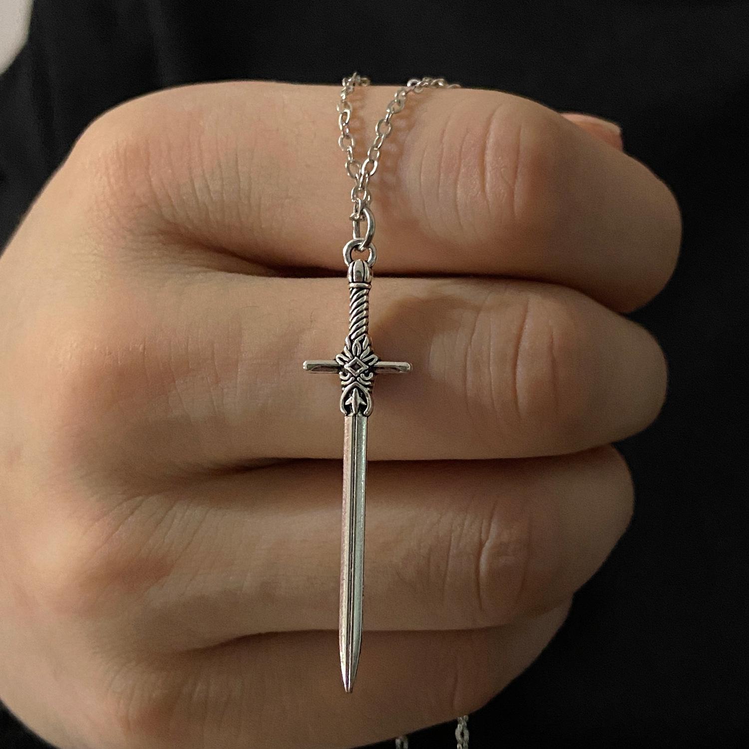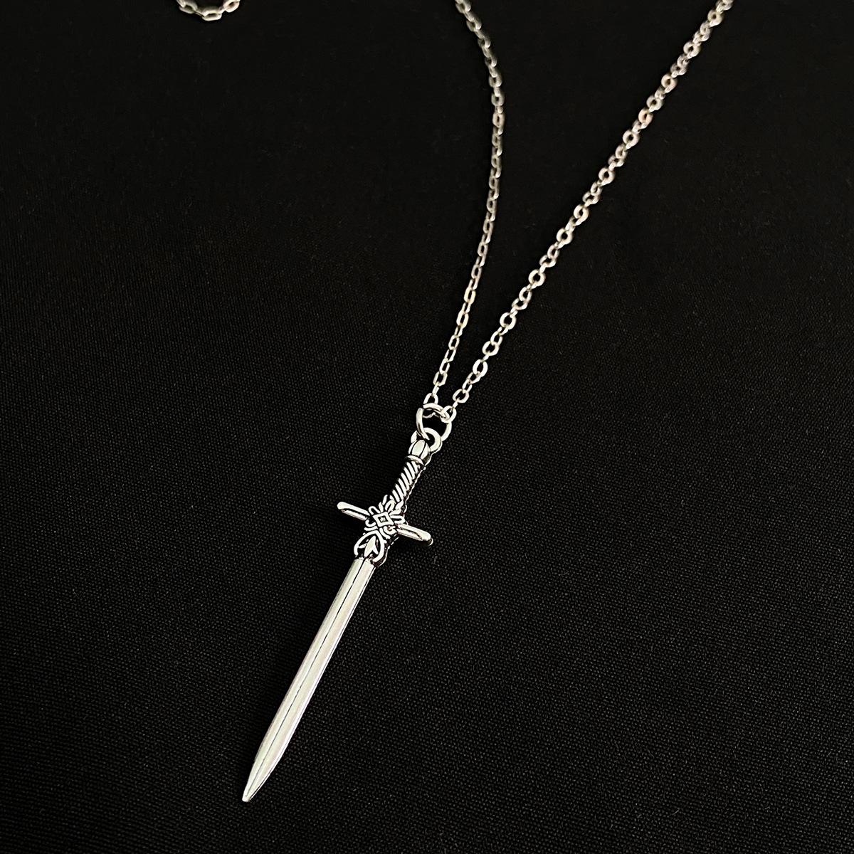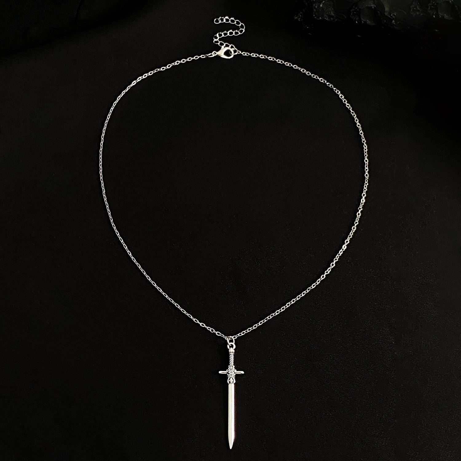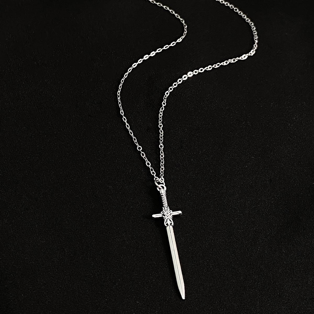 Collar con colgante de espada cruzada simple para hombre, estilo hip-hop punk, estilo transfronterizo europeo y americano, con cadena geométrica creativa para mujer.
