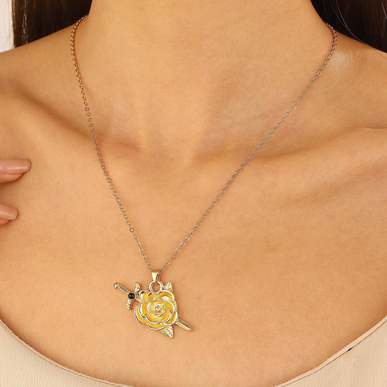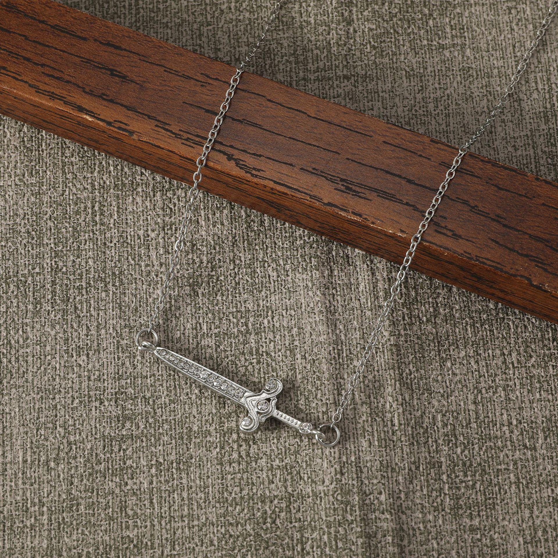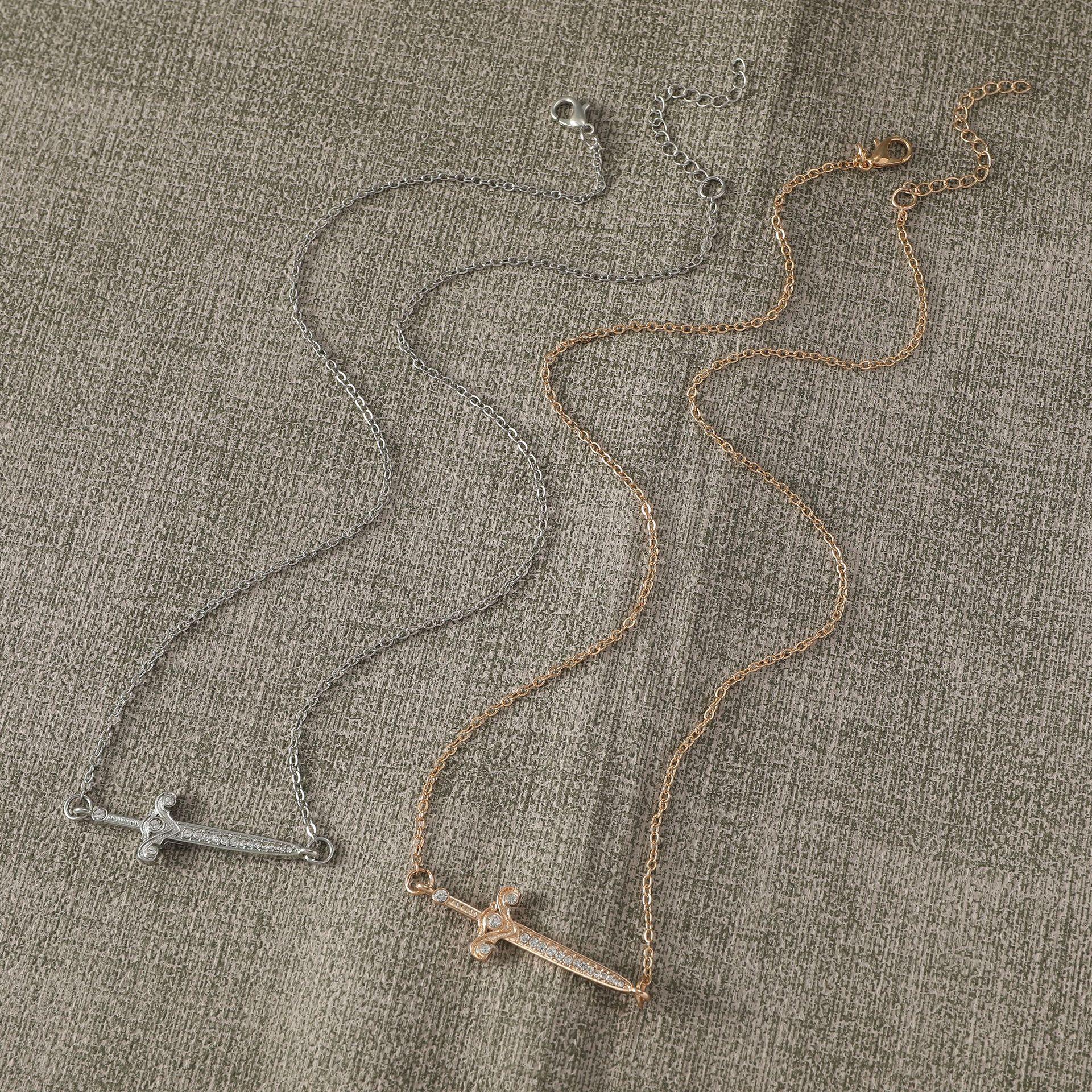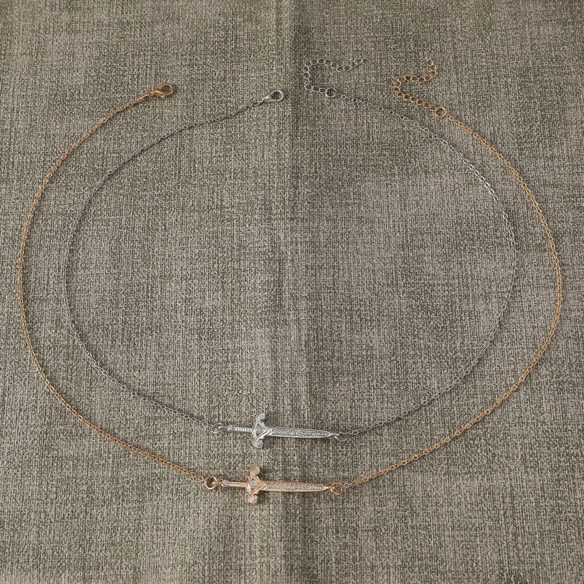 Collar con colgante de espada cruzada simple para hombre, estilo hip-hop punk, estilo transfronterizo europeo y americano, con cadena geométrica creativa para mujer.