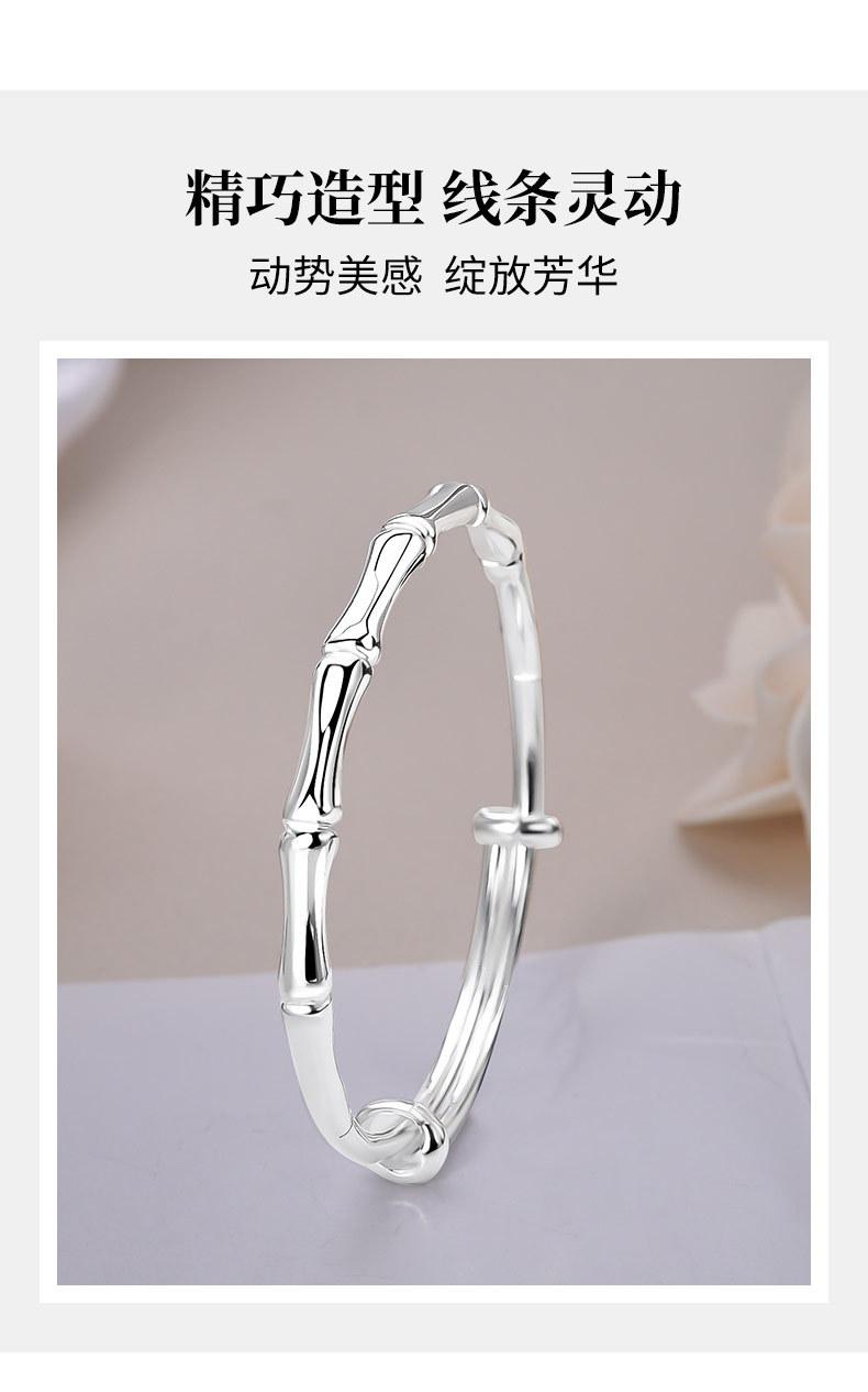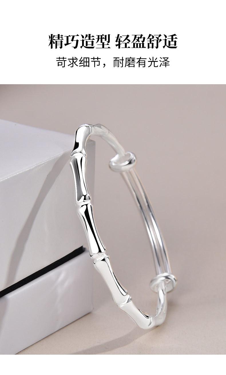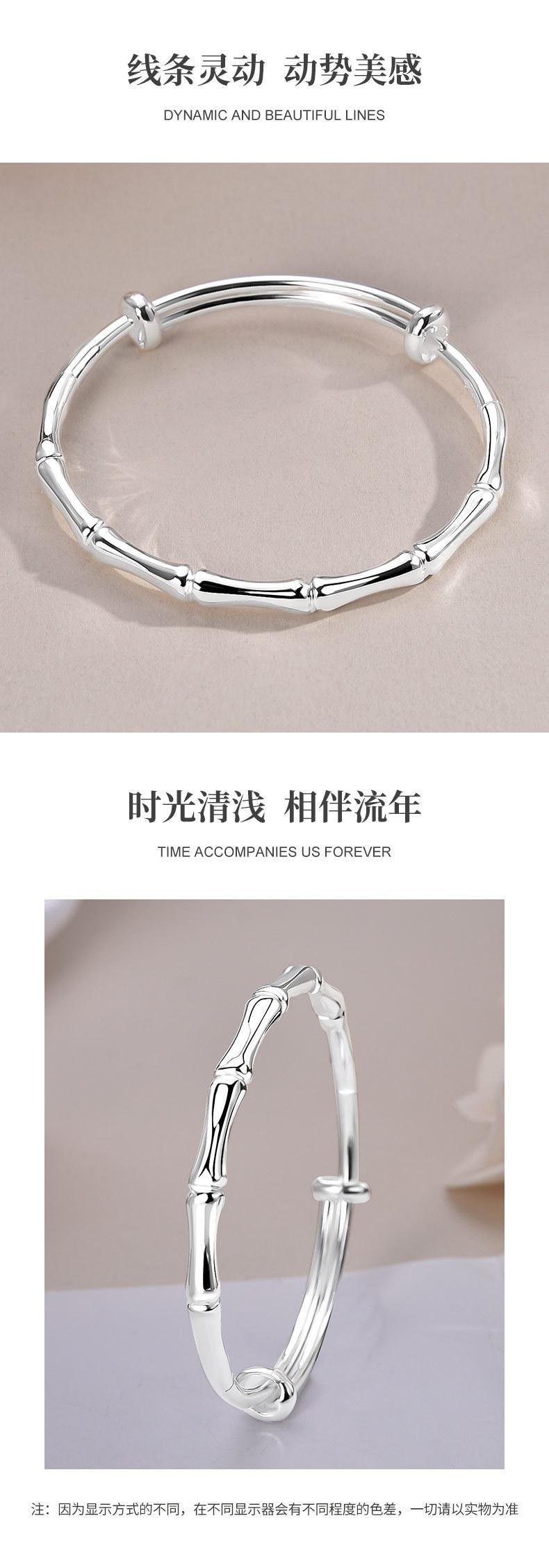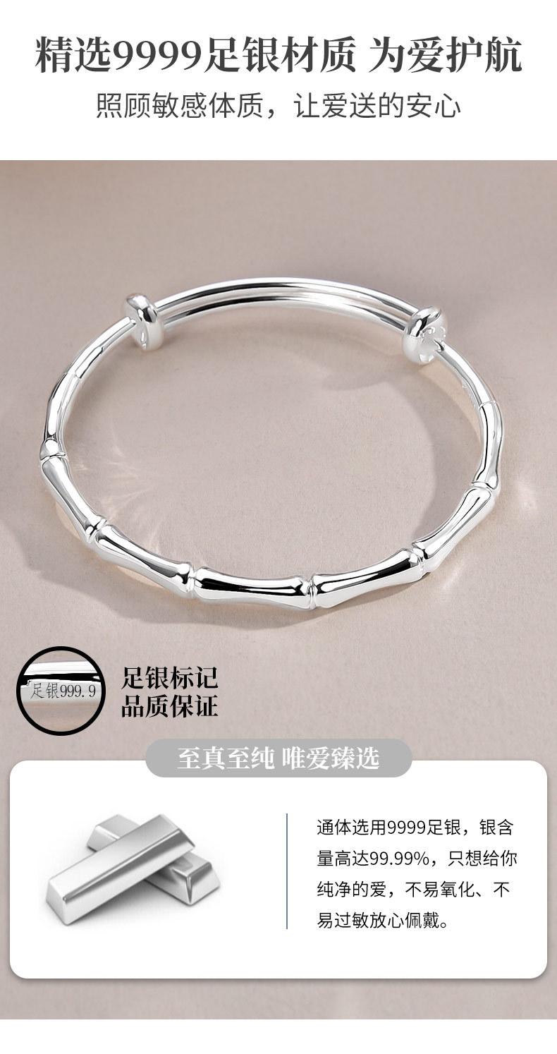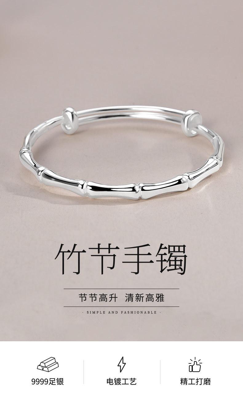 Compra Pulsera de plata de bambú para mujer, de plata de ley 9999, con pie de empuje y tracción, pulsera de plata maciza, regalo de cumpleaños para novia. al por mayor en Joom.pro