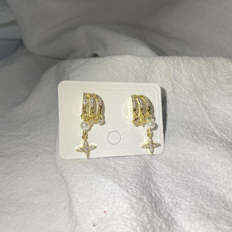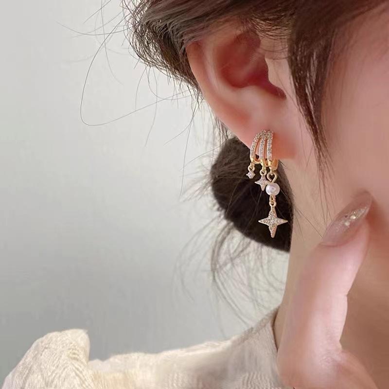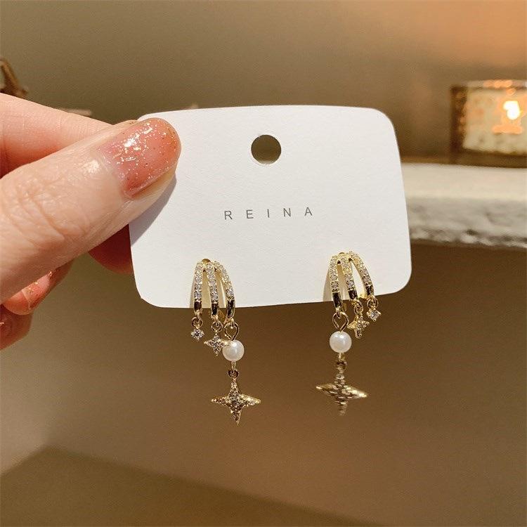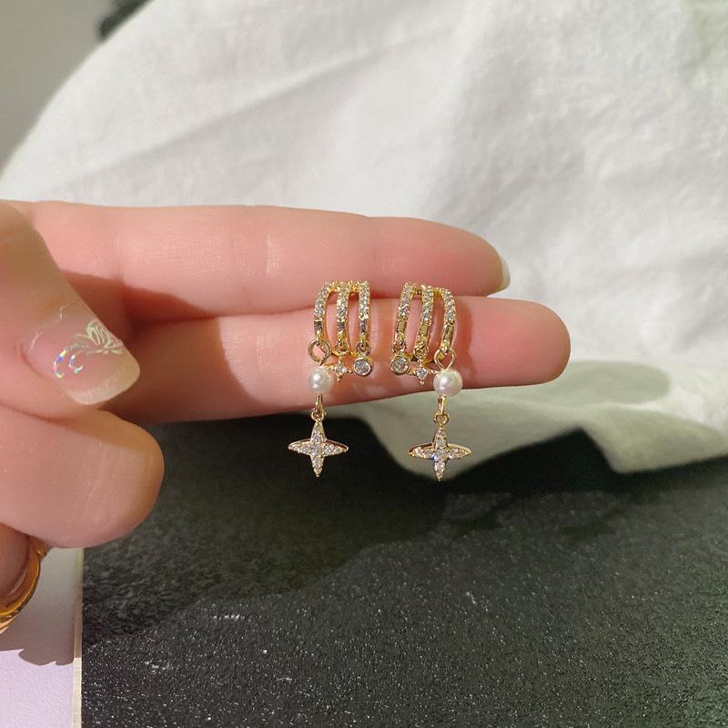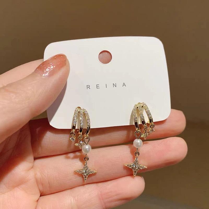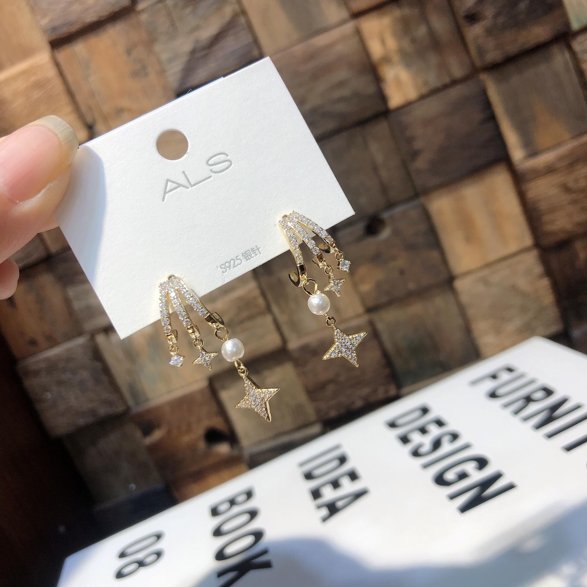 Pendientes de estrella con diseño de nicho dorado, combinables con todo, exquisitos, ligeros, de lujo, elegantes, nuevos y modernos pendientes de aguja de plata para mujer