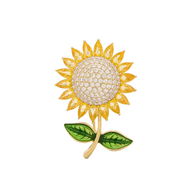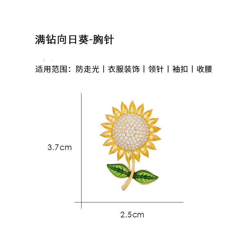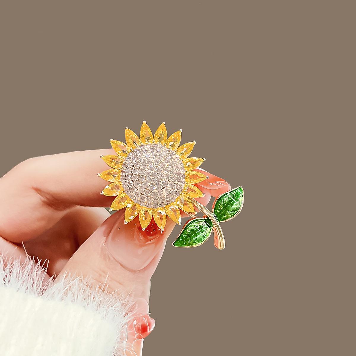 Broche de girasol de alta gama, estilo nicho, ramillete de cristal para mujer de alta gama, hebilla antiluz, alfiler personalizado, accesorios de ropa
