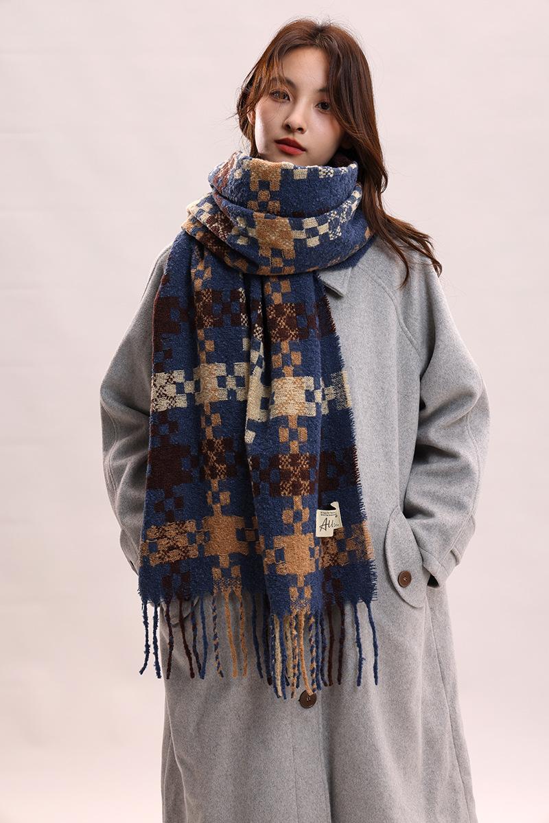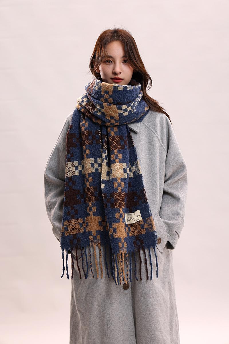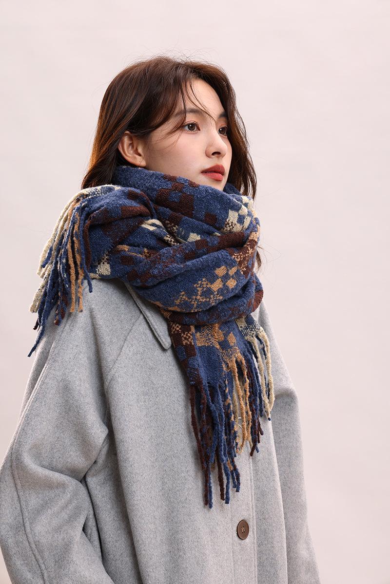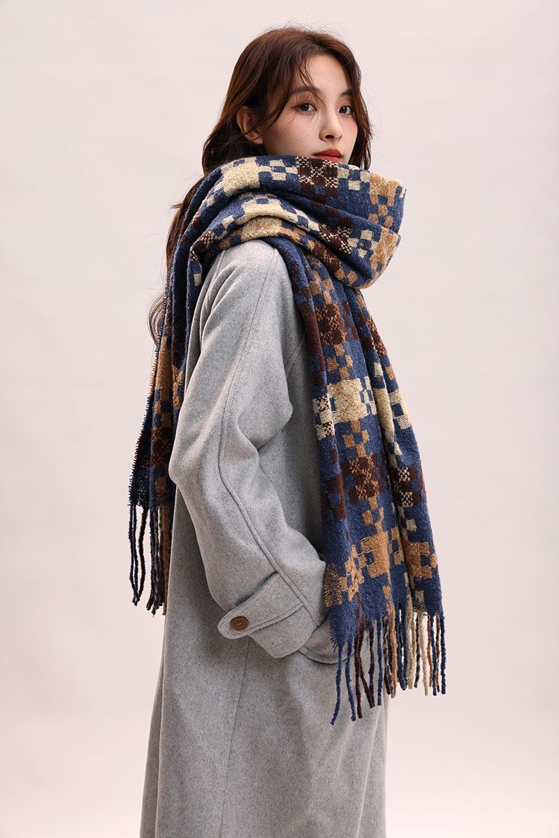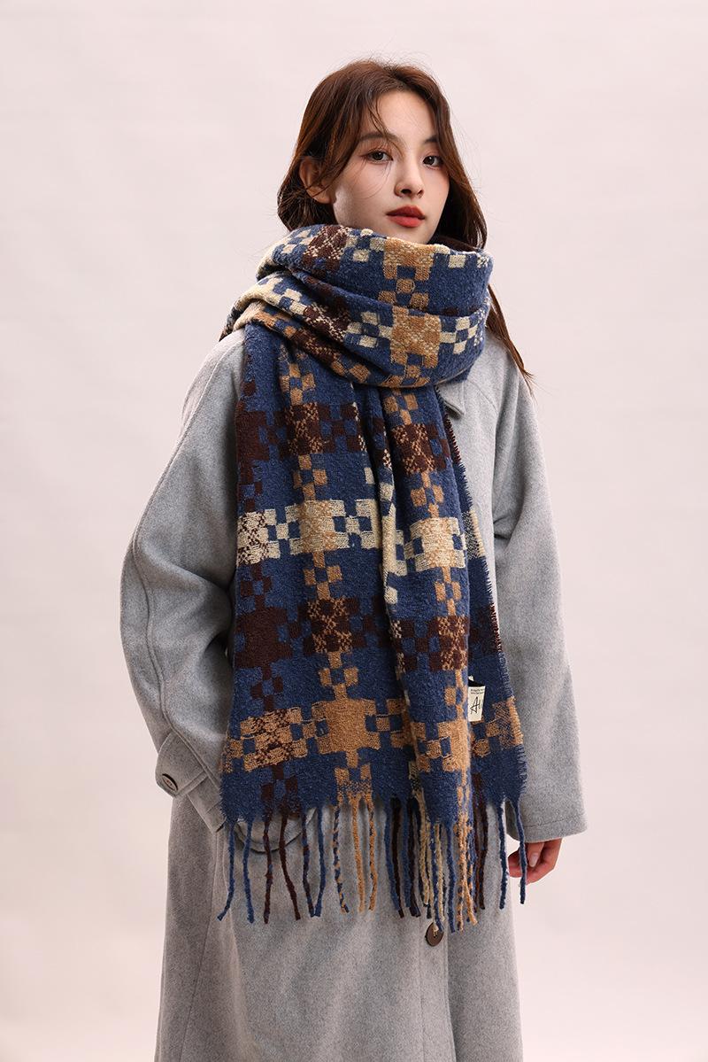 2025 Nuevo Otoño e Invierno Atmósfera Tartán Borla Bufanda Cálida para Hombres y Mujeres Parejas Bufanda Larga Engrosada Regalo