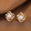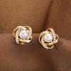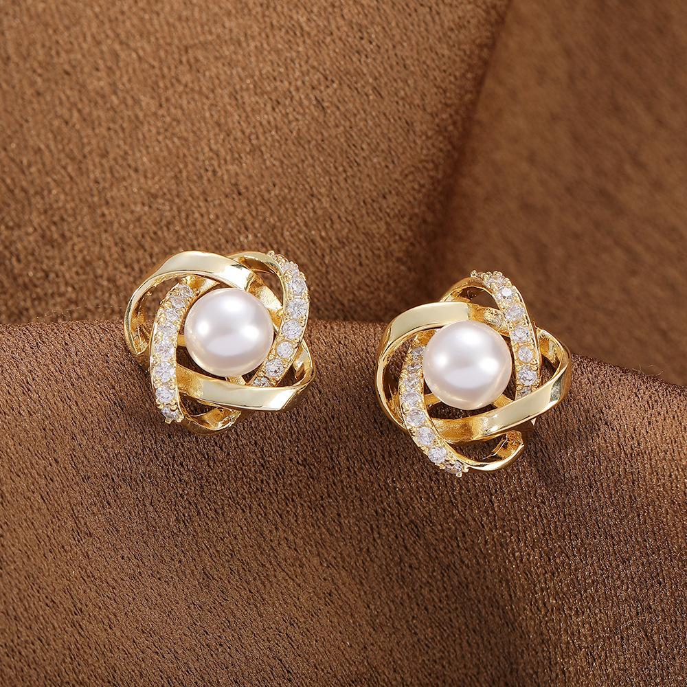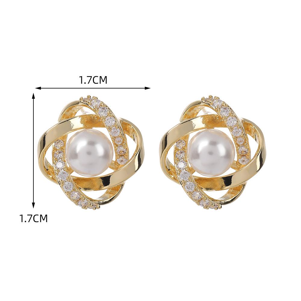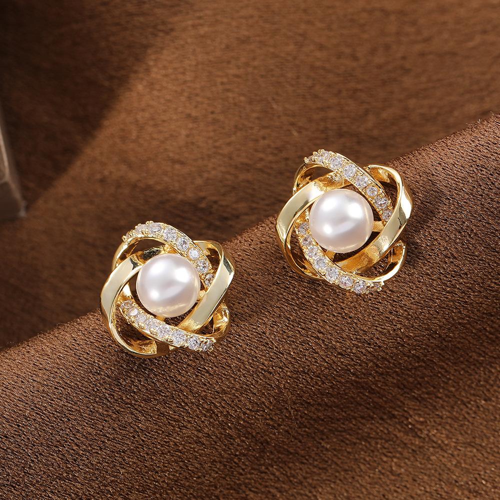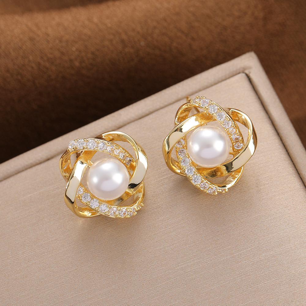 Pendientes de perlas con anillo envuelto para mujer, estilo francés, ligeros, de lujo, con microdiamantes, diseño creativo, elegantes y elegantes.