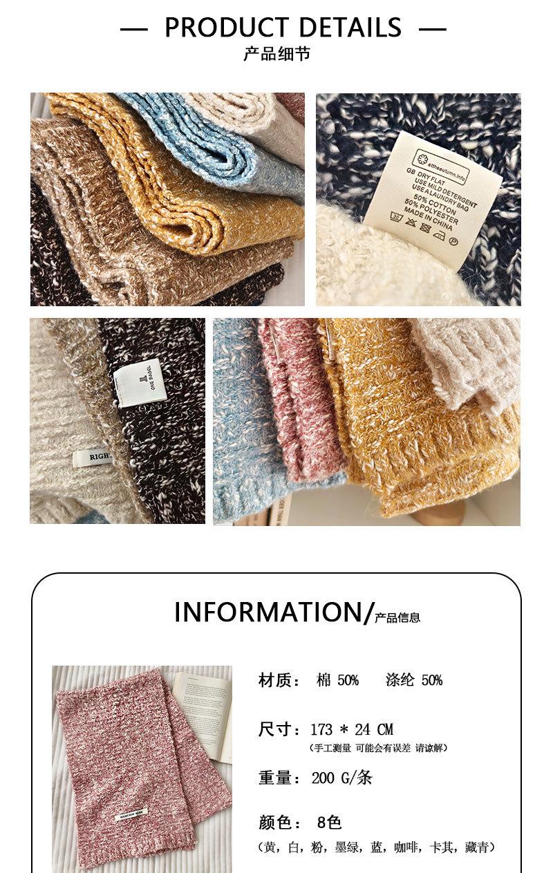 Bufanda de punto con flores de color sólido estilo coreano para mujer, otoño e invierno, nueva, combina con todo, elegante, para parejas de estudiantes, gruesa, cálida y a la moda.