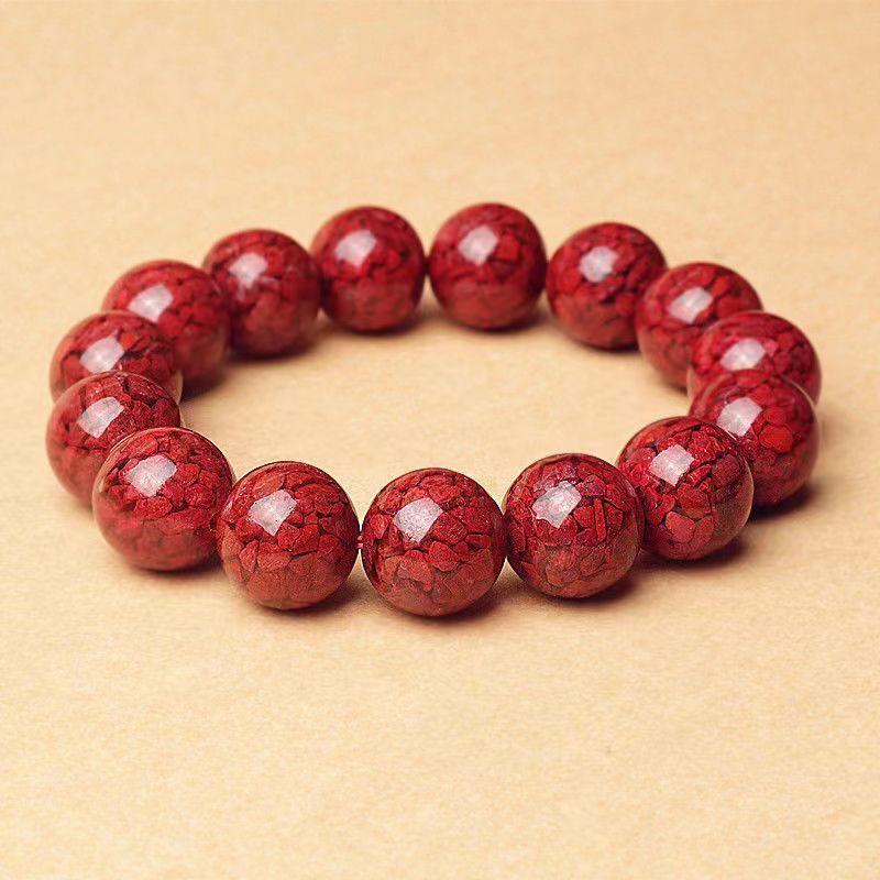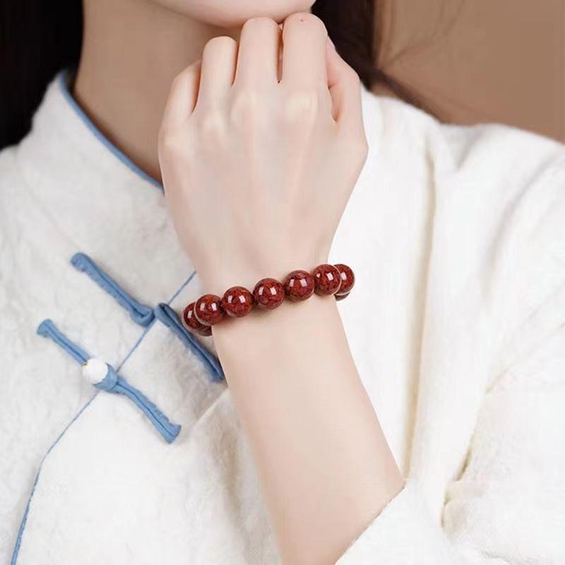 Pulsera de cuentas redondas de arena cristalina de alto contenido de mineral crudo al por mayor, pulsera de arena de oro púrpura con cinabrio Fidelity, joyería Live Supply