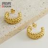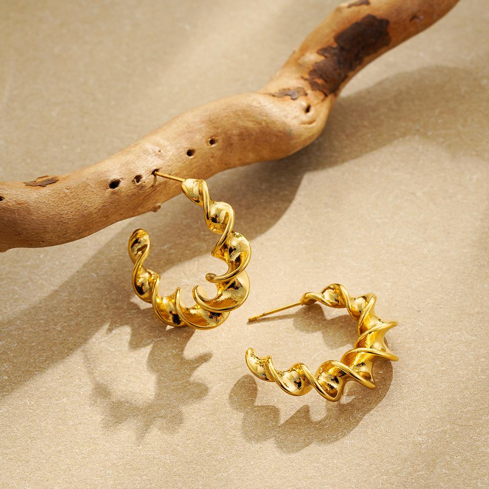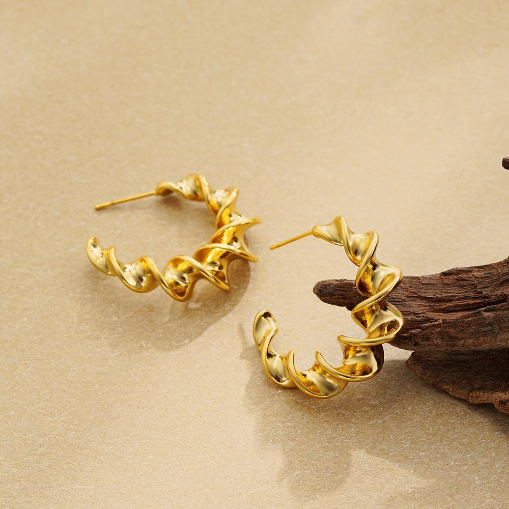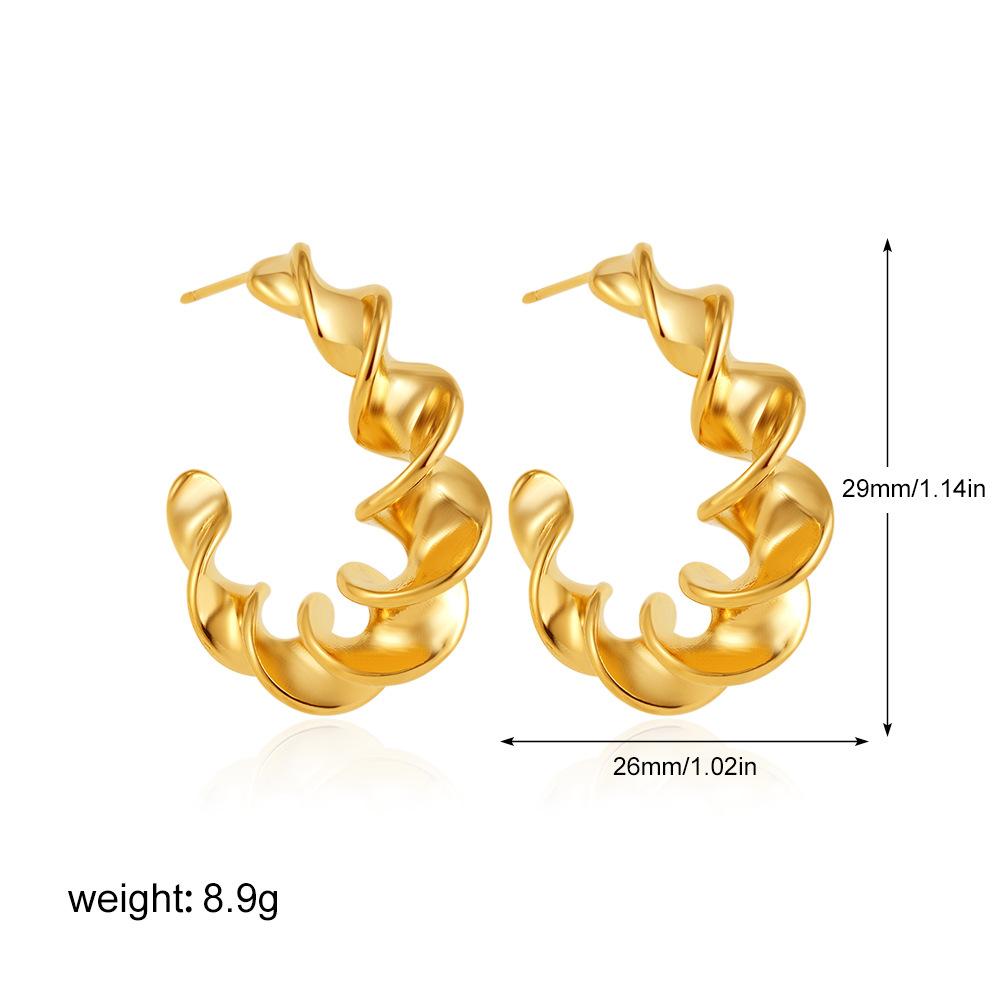 Pendientes de acero inoxidable con forma de C exagerada en espiral, de oro auténtico de 18 quilates, estilo Joker, de titanio y acero, para Europa y América.