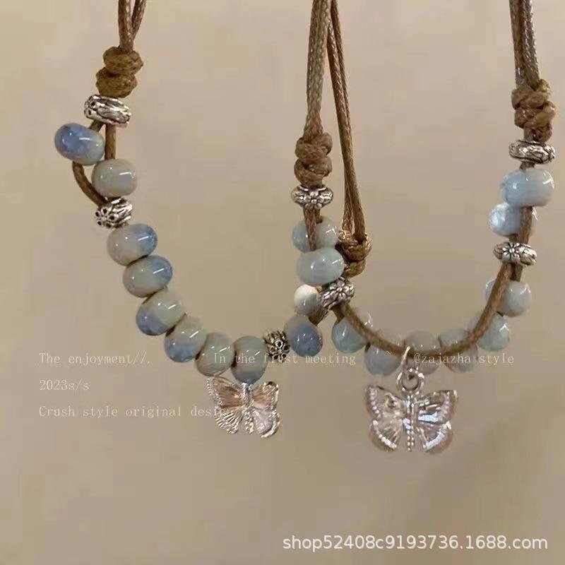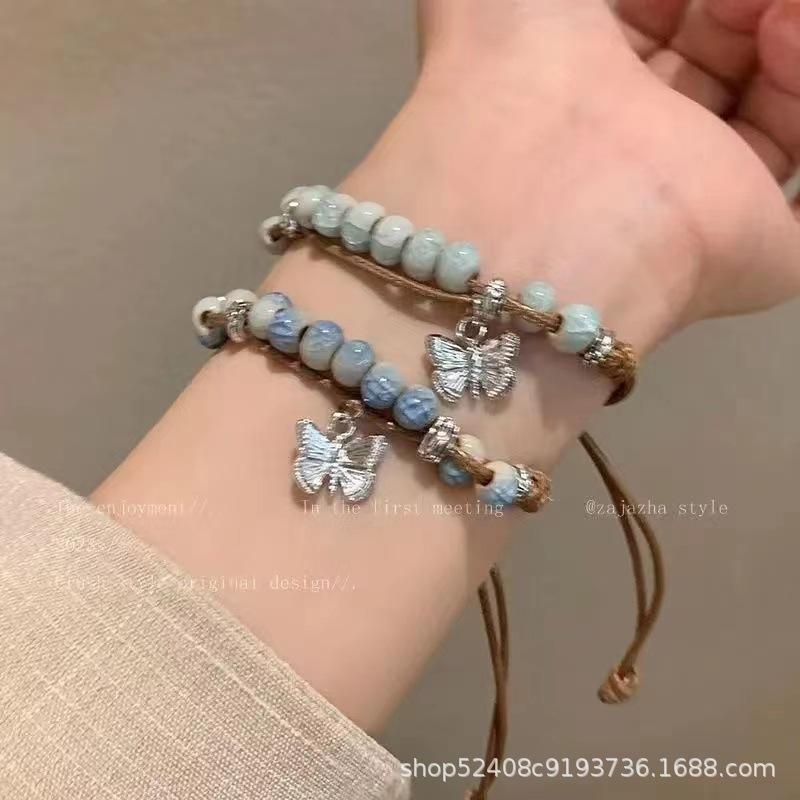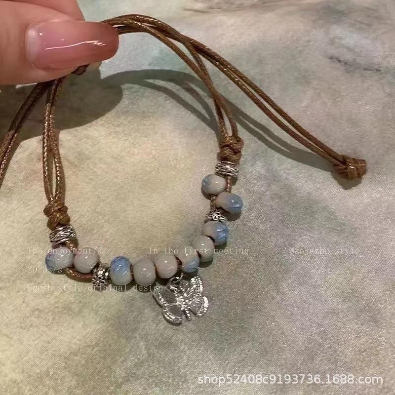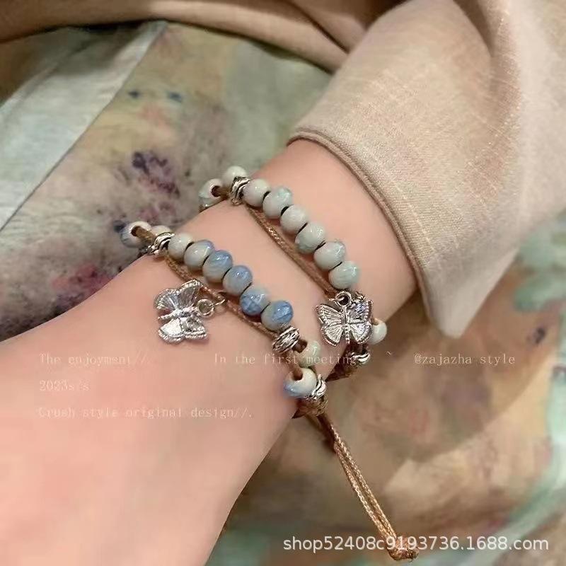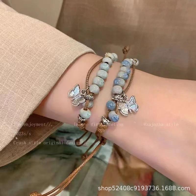 Pulsera de cuentas de cerámica con forma de mariposa de estilo chino para mujer, estilo étnico, estilo retro, moda nacional, verano 2024