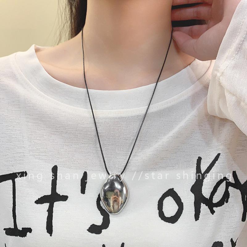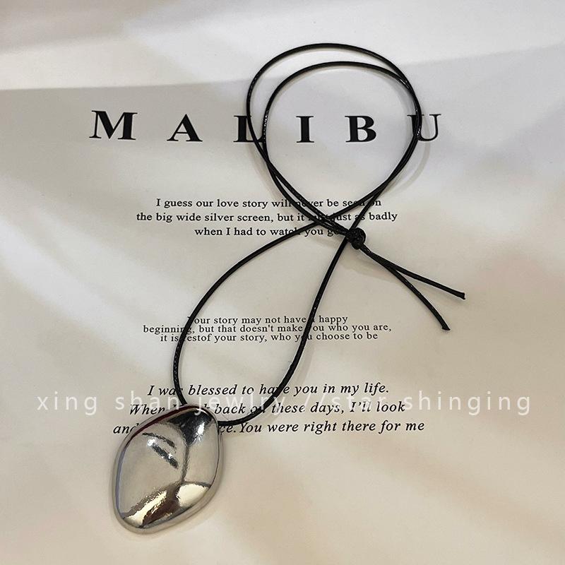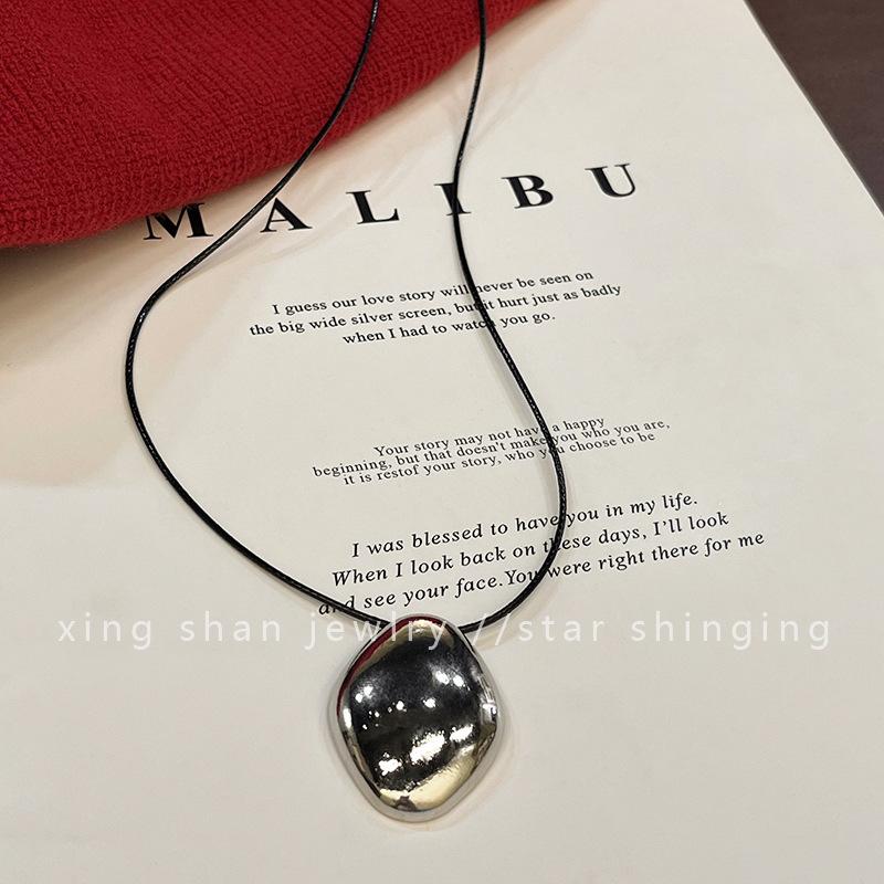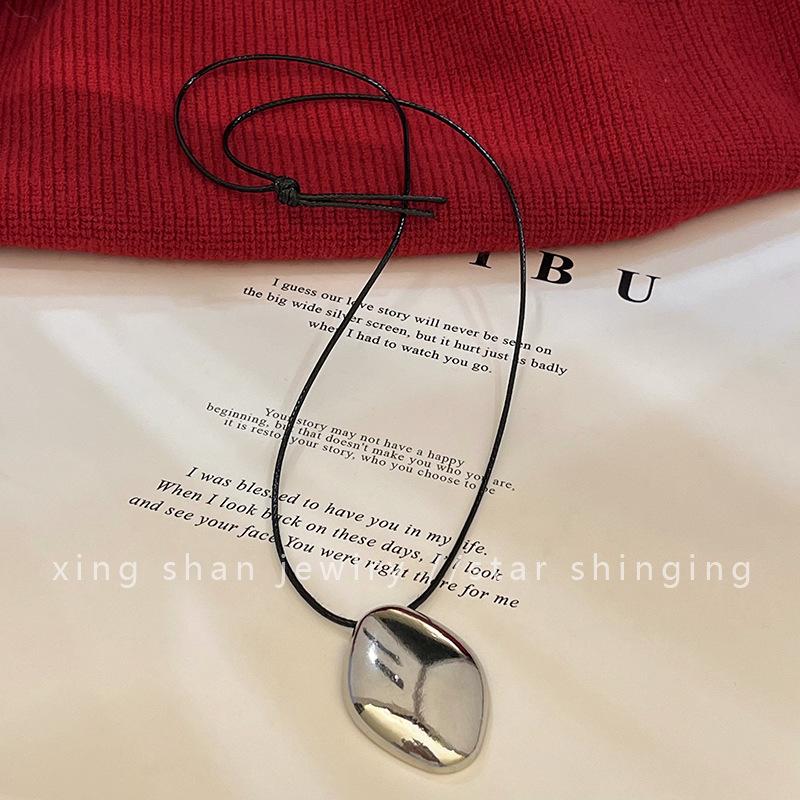 Collar con colgante irregular ovalado retro de cuero negro simple y moderno para mujer, cadena de lana ligera de lujo con nicho.