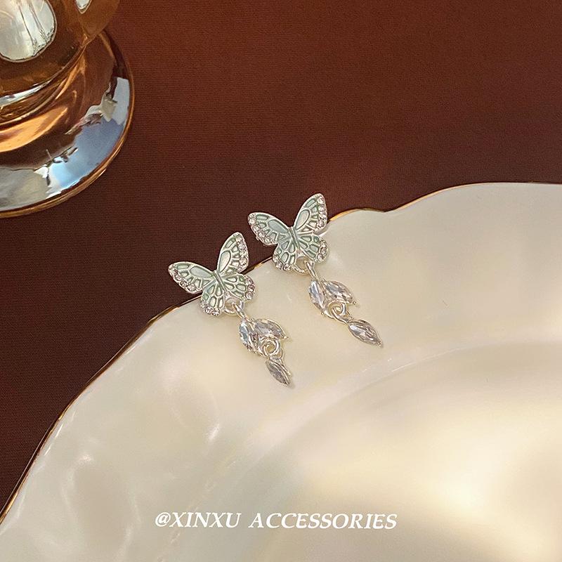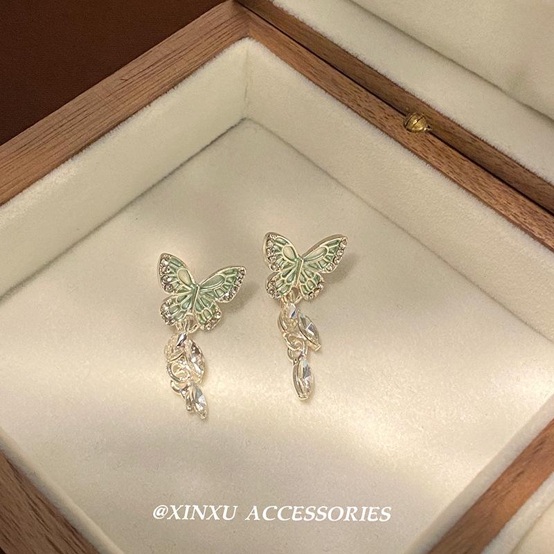 Pendientes con borlas de mariposa azul súper hada, elegantes, sencillos y a la moda, combinables, para mujer, 2024