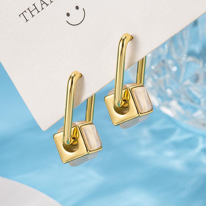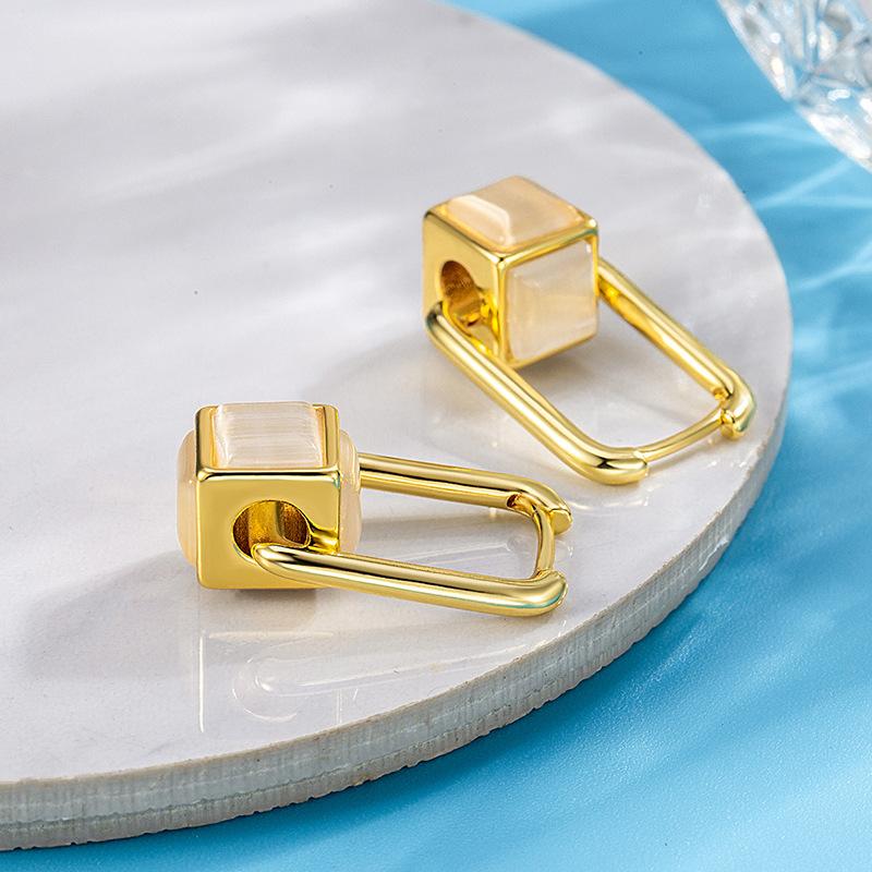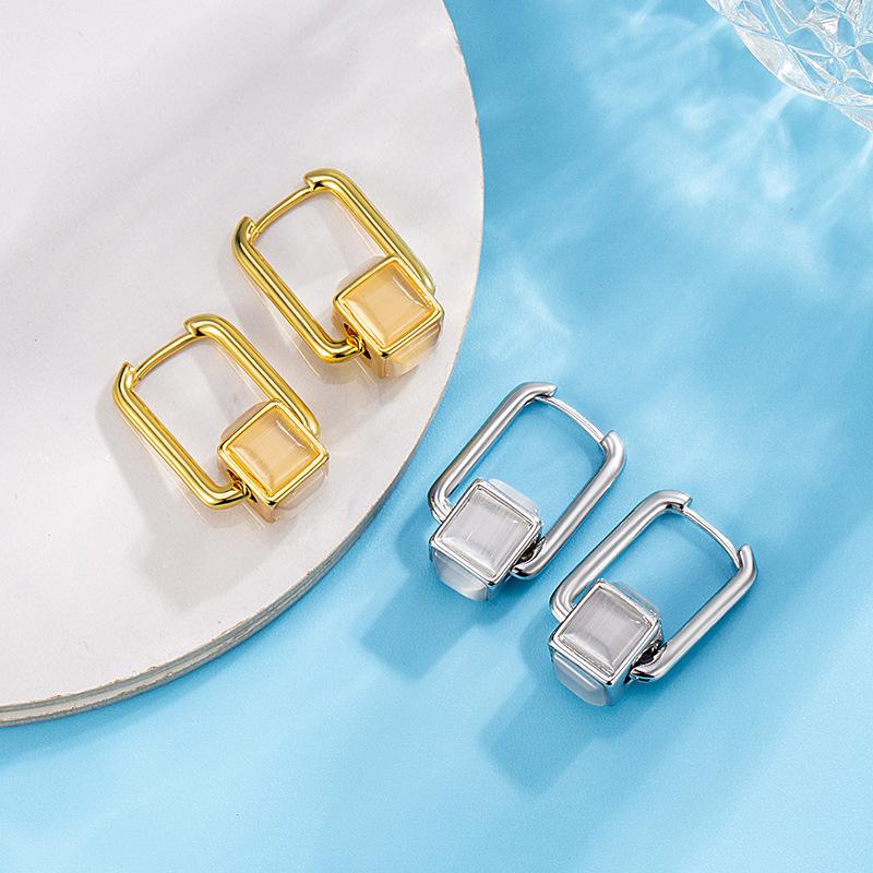 Cat's eye square earrings (white gold), Cat's eye square earrings (gold)