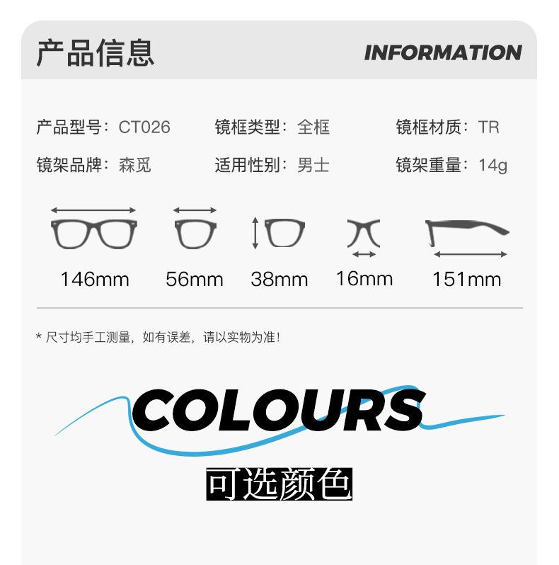 CT026 armazón ligero de material TR para hombre, deportivo, estilo simple, moderno, versátil, cómodo, protección para los ojos con luz azul