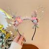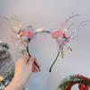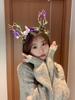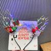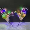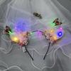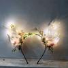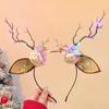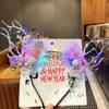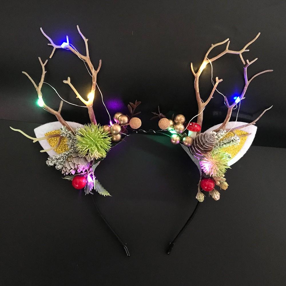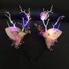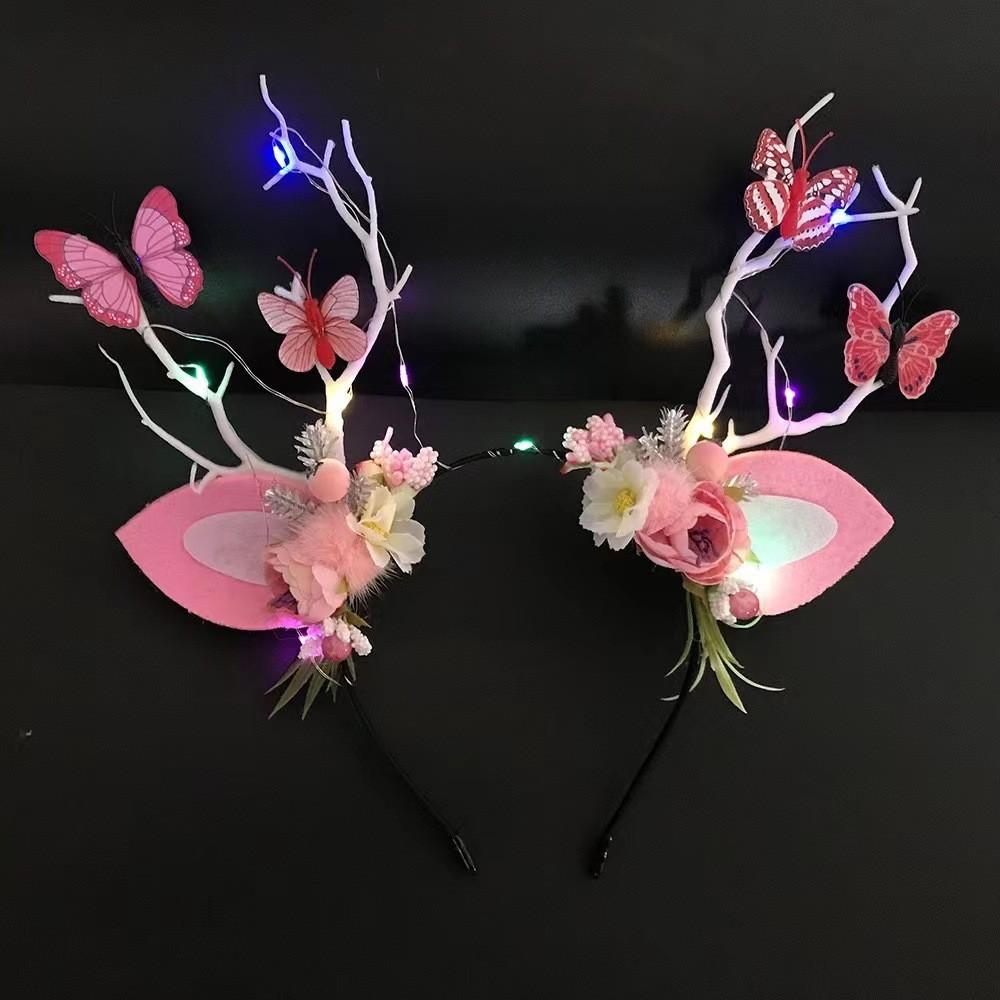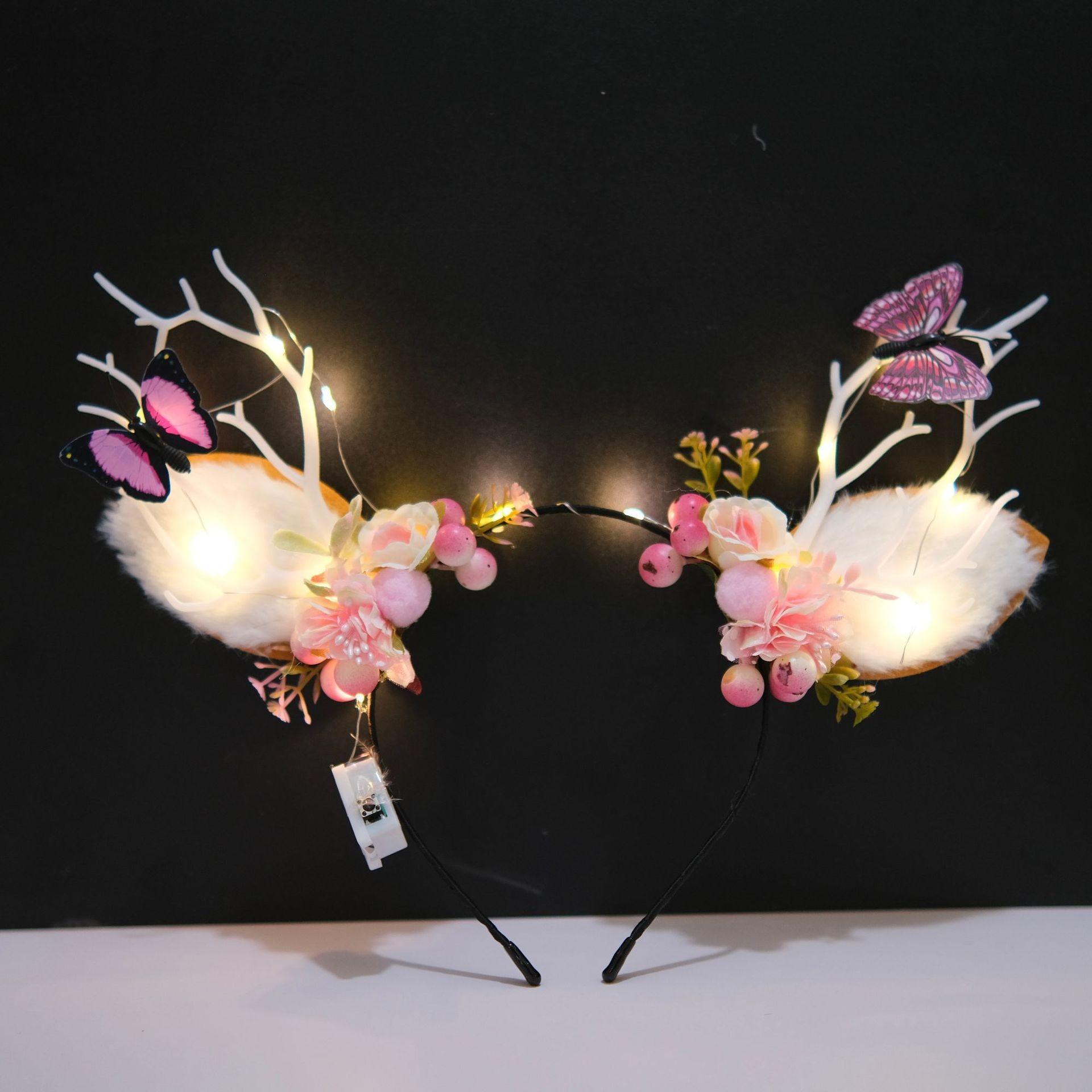Diadema Navideña Brillante Diadema de Astas de Hada de Flores Luces Intermitentes Tocado de Reno Navideño Diadema de Lujo Ligero de Alta Gama