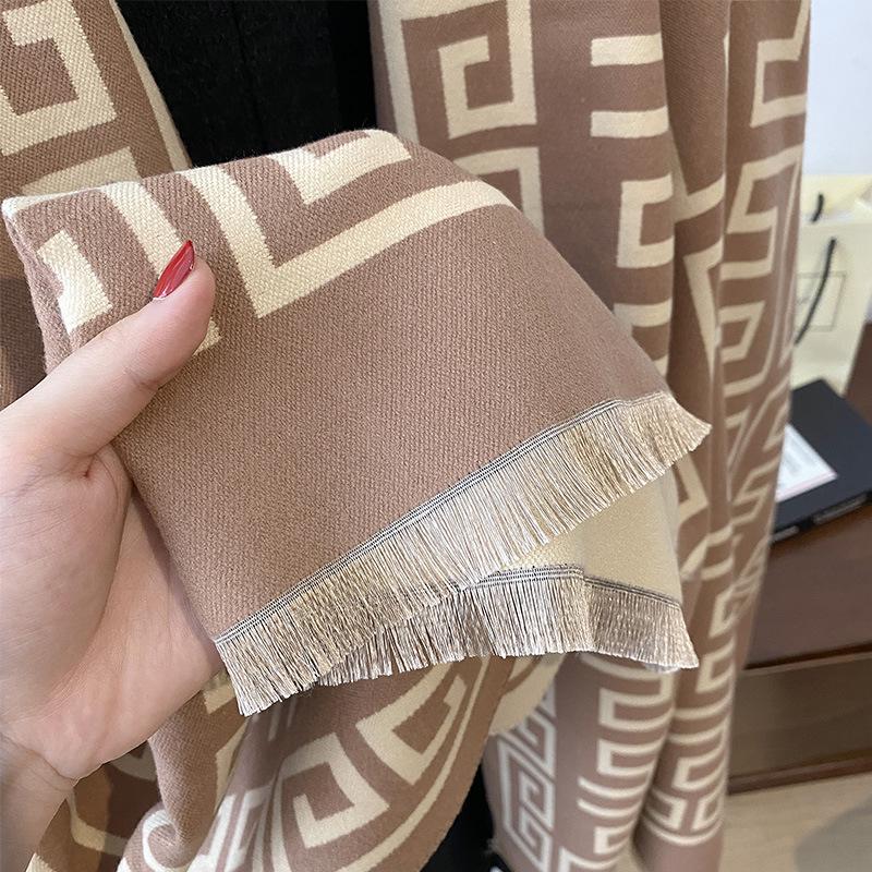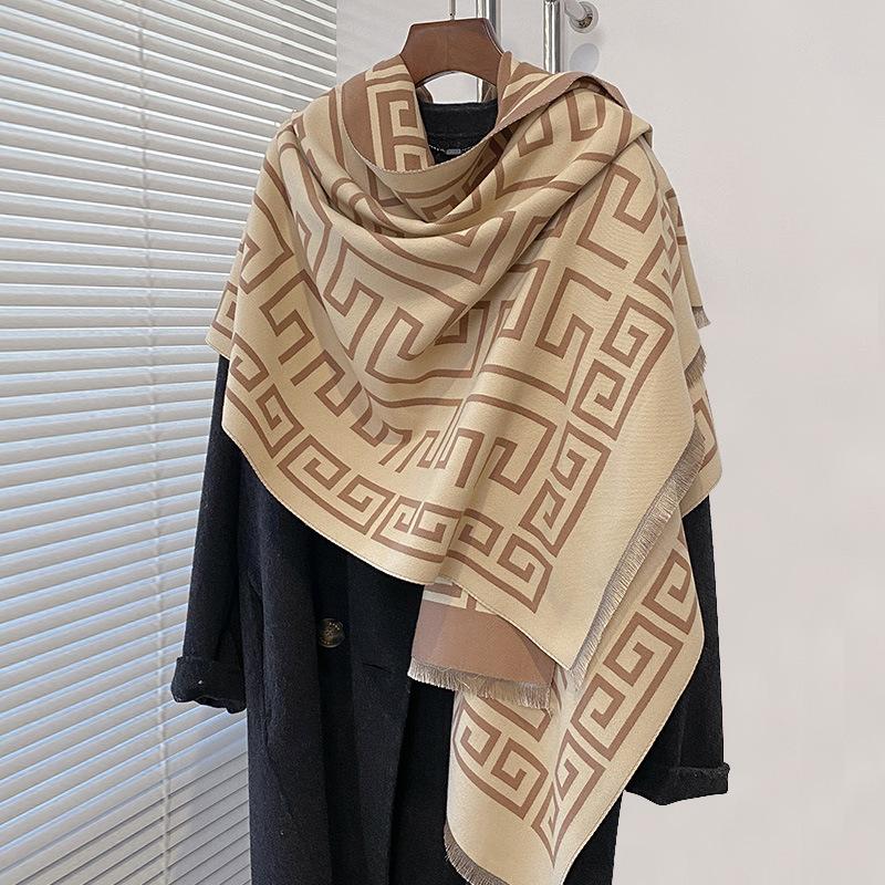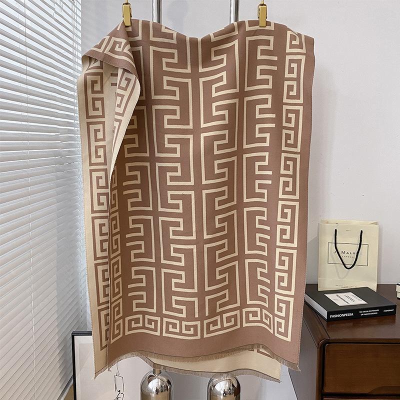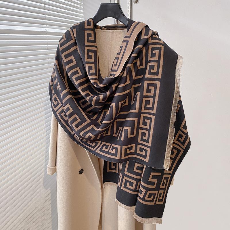 Bufanda gruesa de lana de doble cara cálida de cachemira con patrón geométrico circular de estilo coreano para otoño e invierno.