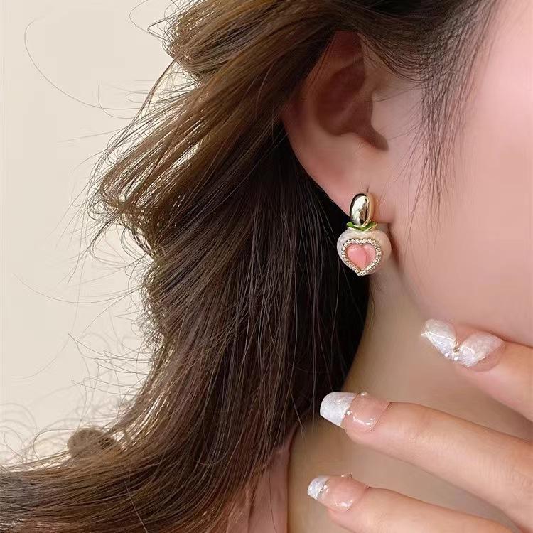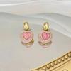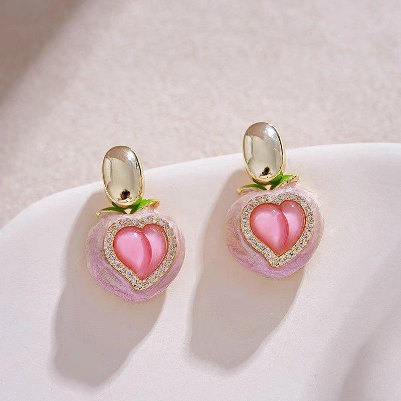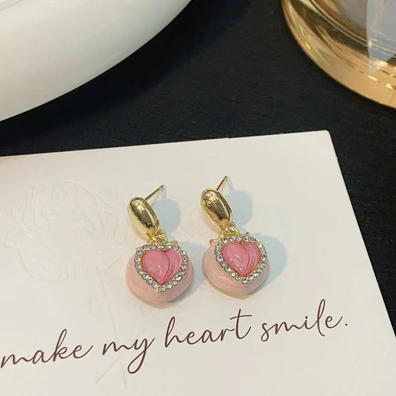 Dulces~2025 Nuevos Aretes Rosa Durazno para Mujer, Pendientes de Botón Suaves y Dulces con Forma de Corazón, Aretes de Lujo Ligero de Alta Gama