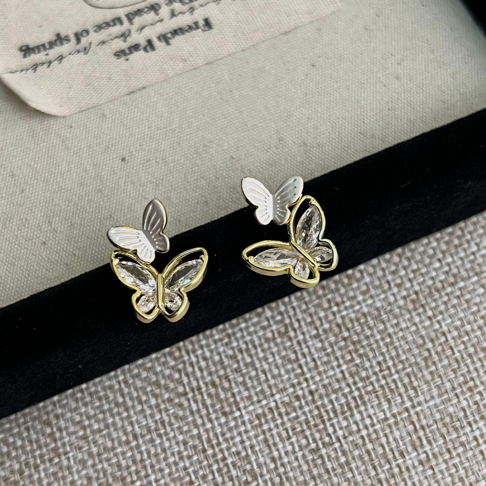 Pendientes de mariposa de circonita de alta gama, ligeros y lujosos, para mujer, con personalidad exquisita, elegantes y combinables.