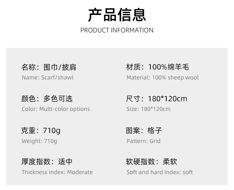 Bufanda Cálida de Invierno para Mujer 100% Lana Pura Chal a Cuadros Suave Engrosado Moda para Hombre y Mujer Bufanda Versátil para Mujer