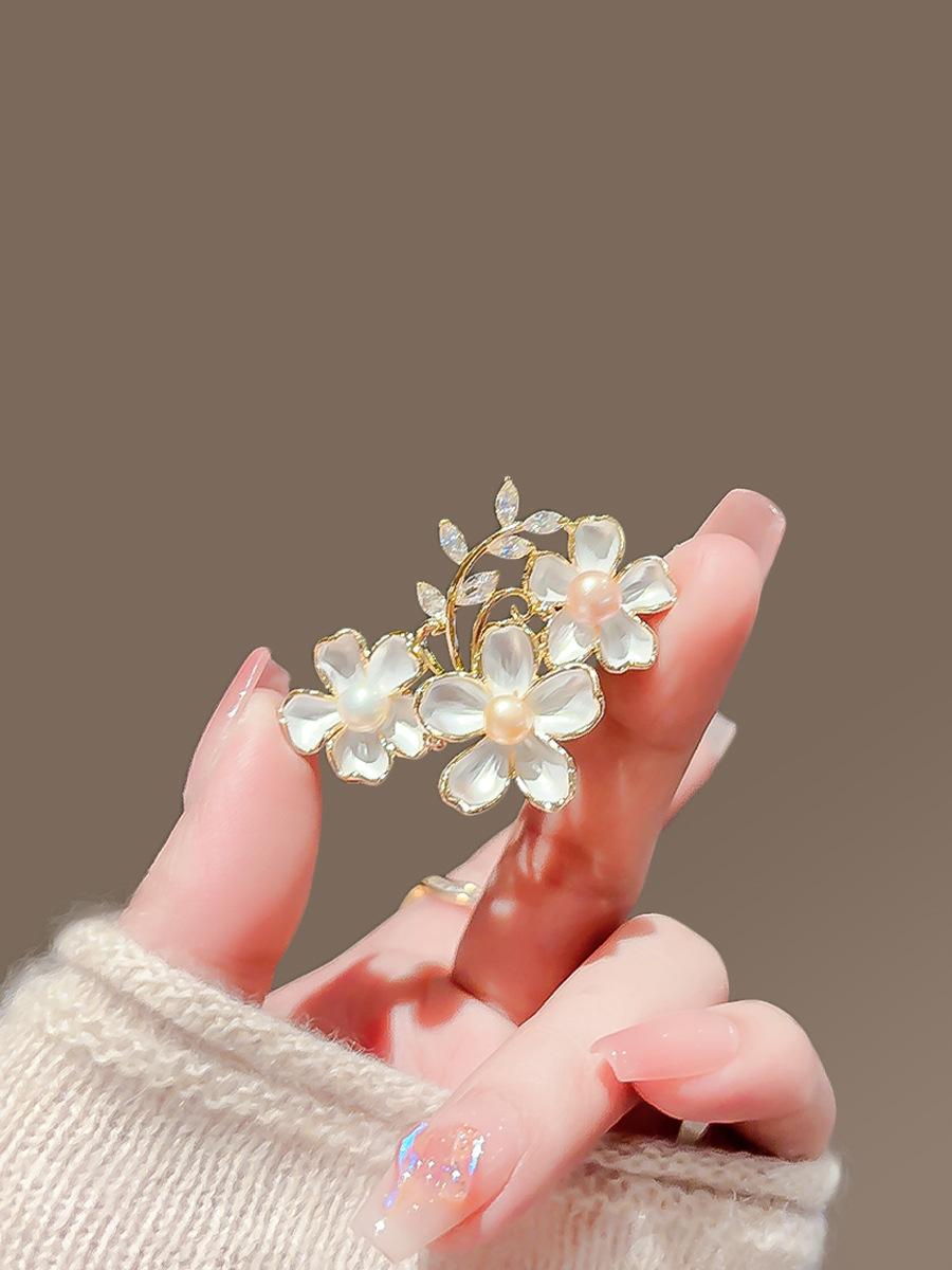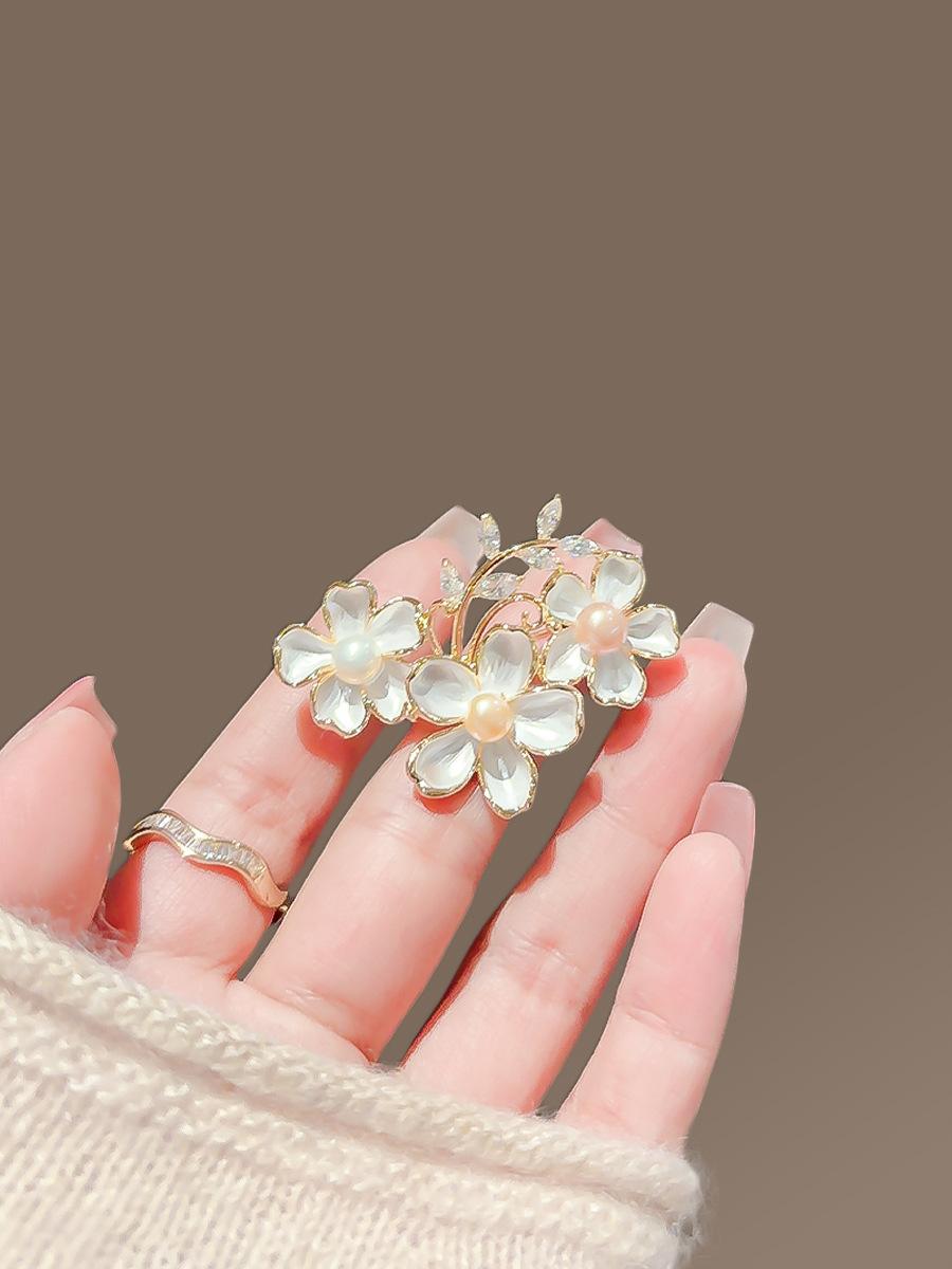 Broche de perlas y flores para mujer, estilo elegante y de alta gama, ideal para abrigos, trajes, ramilletes, accesorios de alta gama.