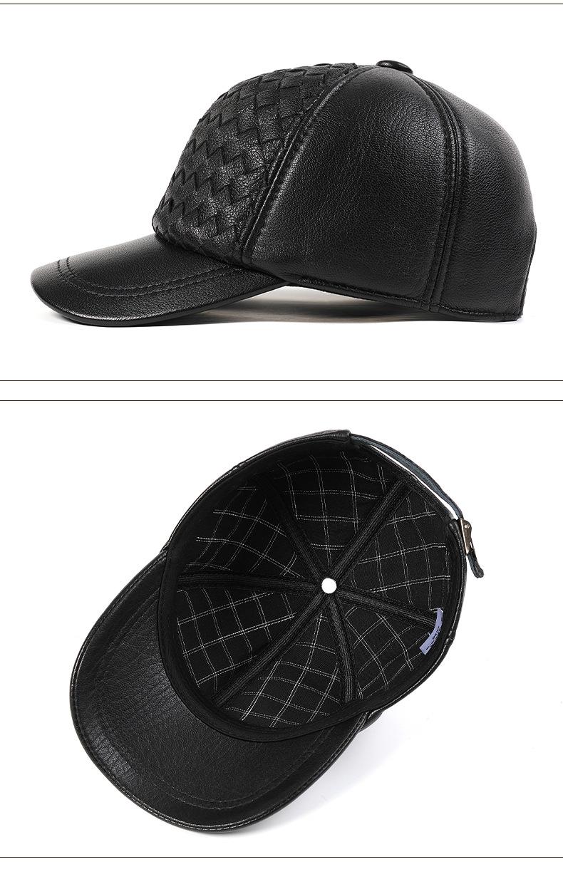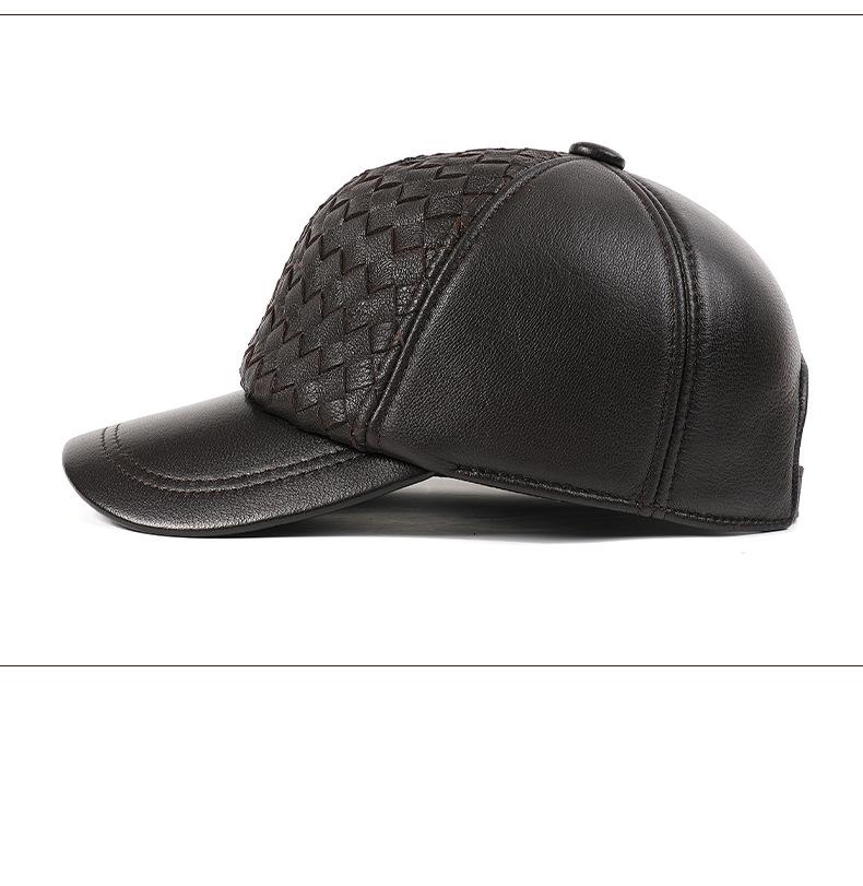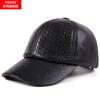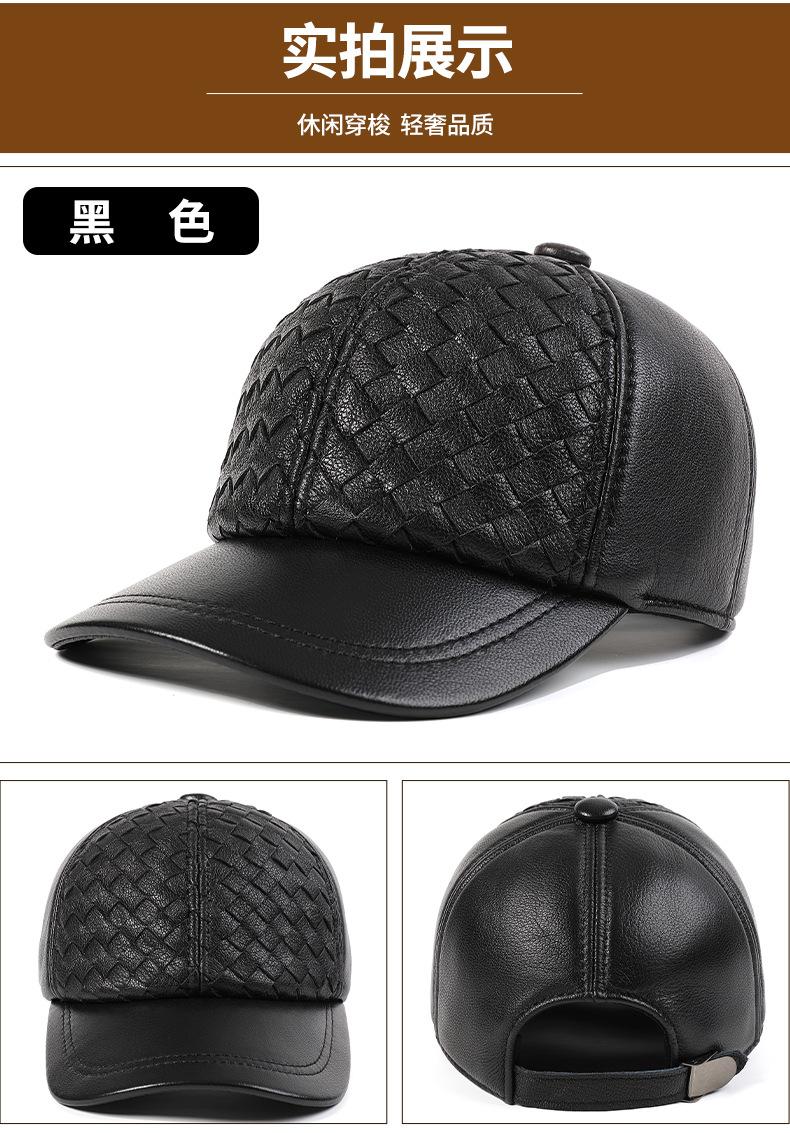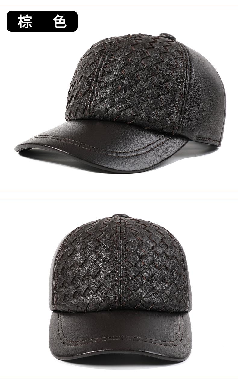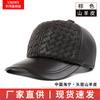 Gorra de cuero genuino para hombre, nueva gorra de béisbol de otoño e invierno de piel de oveja tejida a rayas, gorra informal para personas de mediana edad y jóvenes, gorra retro de moda