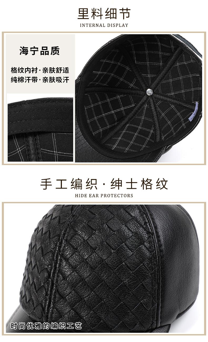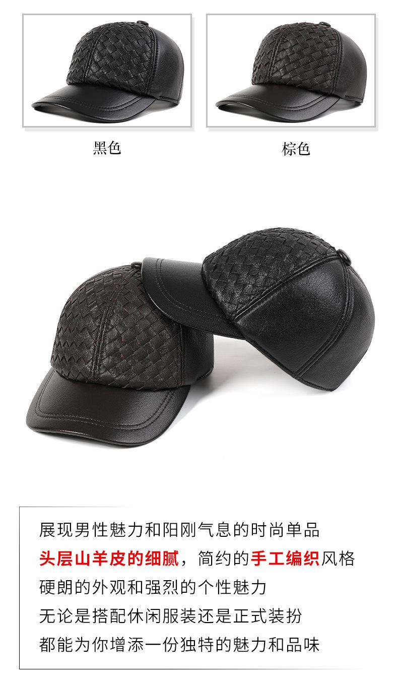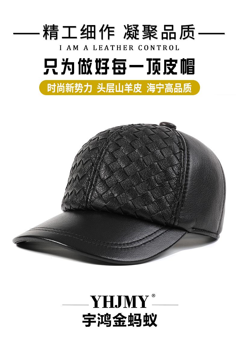 Gorra de cuero genuino para hombre, nueva gorra de béisbol de otoño e invierno de piel de oveja tejida a rayas, gorra informal para personas de mediana edad y jóvenes, gorra retro de moda