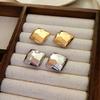 Aretes de Flores de Acero Inoxidable de Moda Europea y Americana Diseño Niche de Alta Gama Ins Anillo de Acero de Titanio con Combinación de Colores Dorado y Plateado de Doble Capa