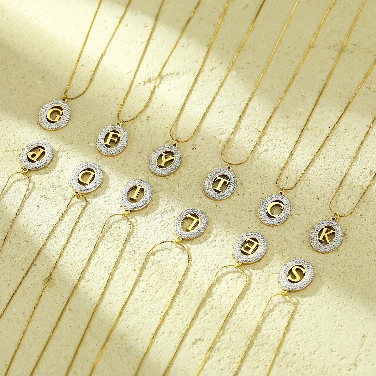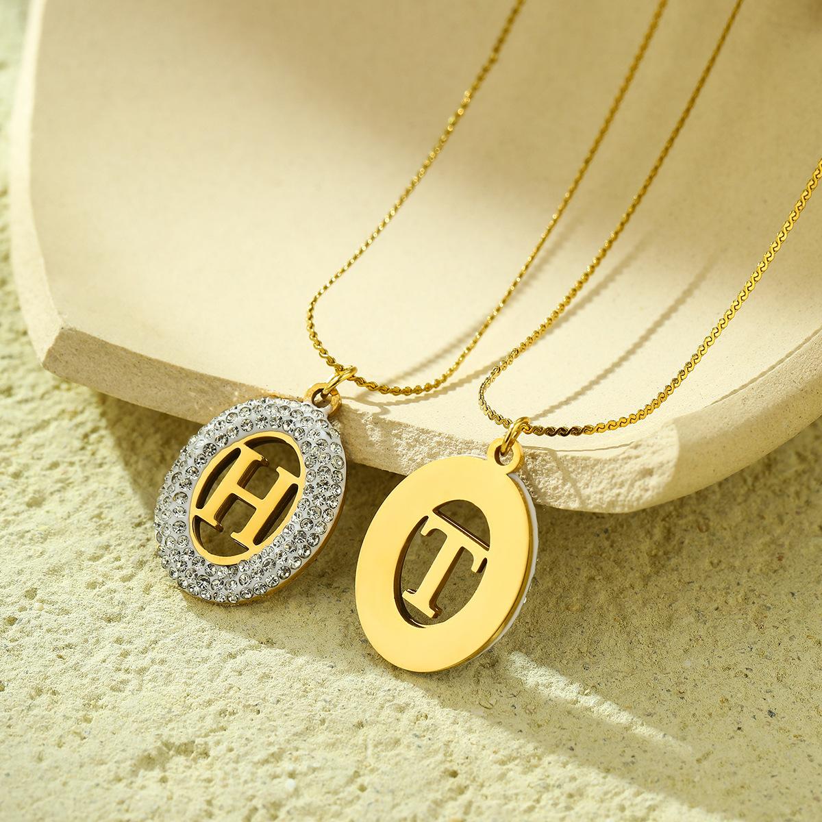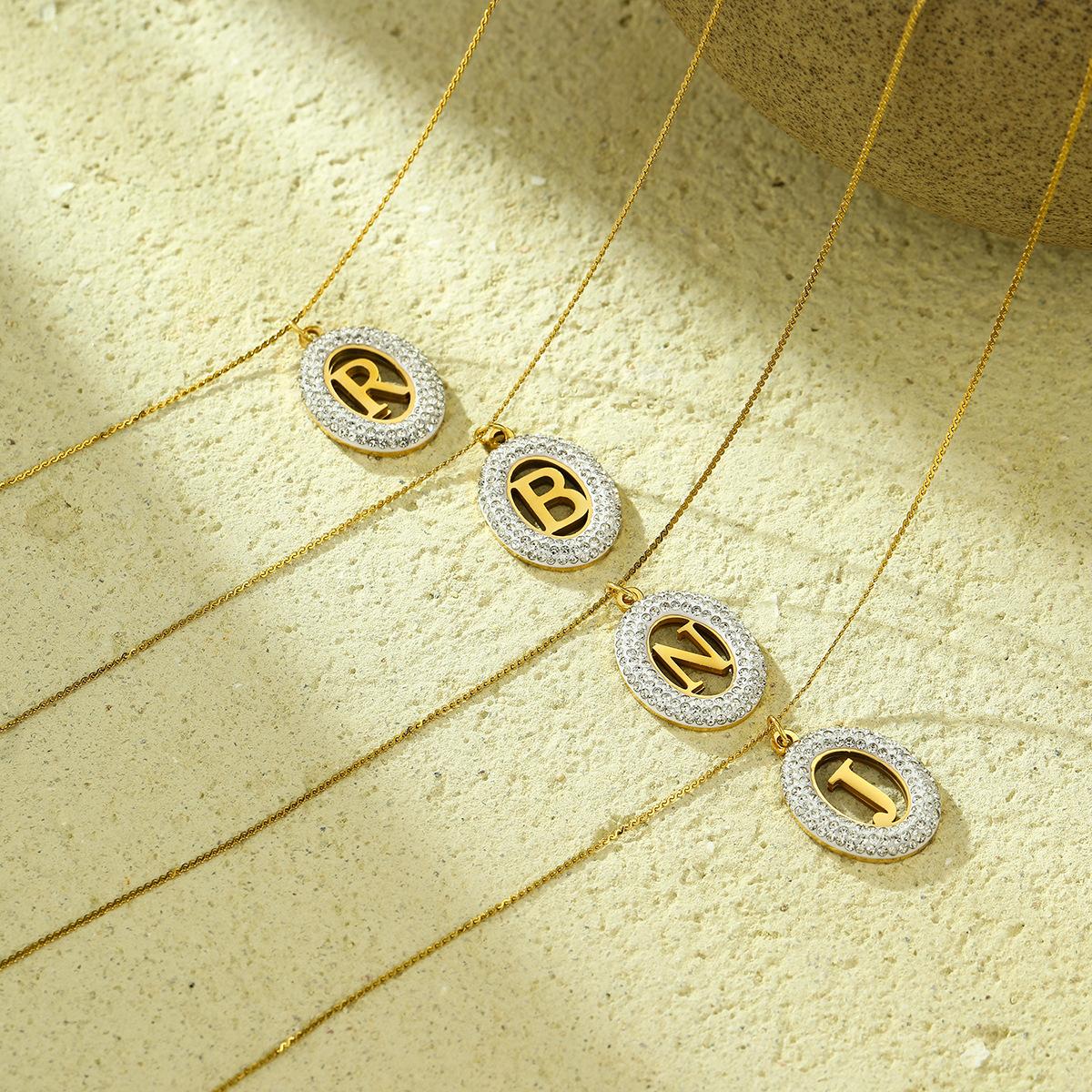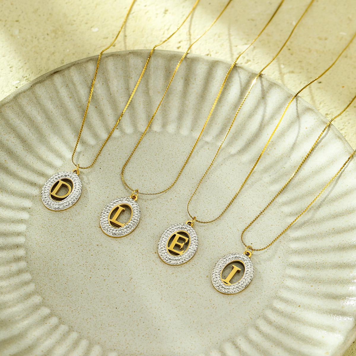 Compra Collar con colgante de letra hueca de circonita con incrustaciones ovaladas de acero inoxidable de alto sentido de Joker de moda europea y americana, joyería al por mayor al por mayor en Joom.pro