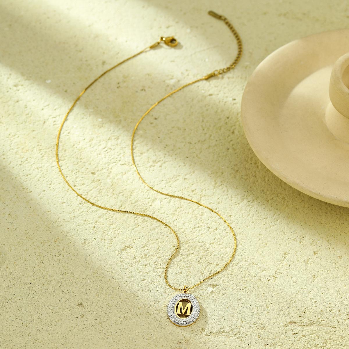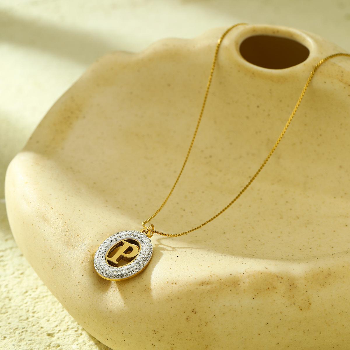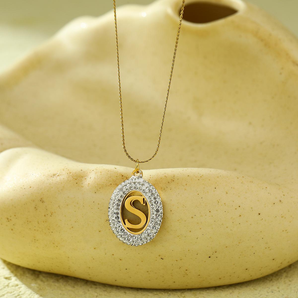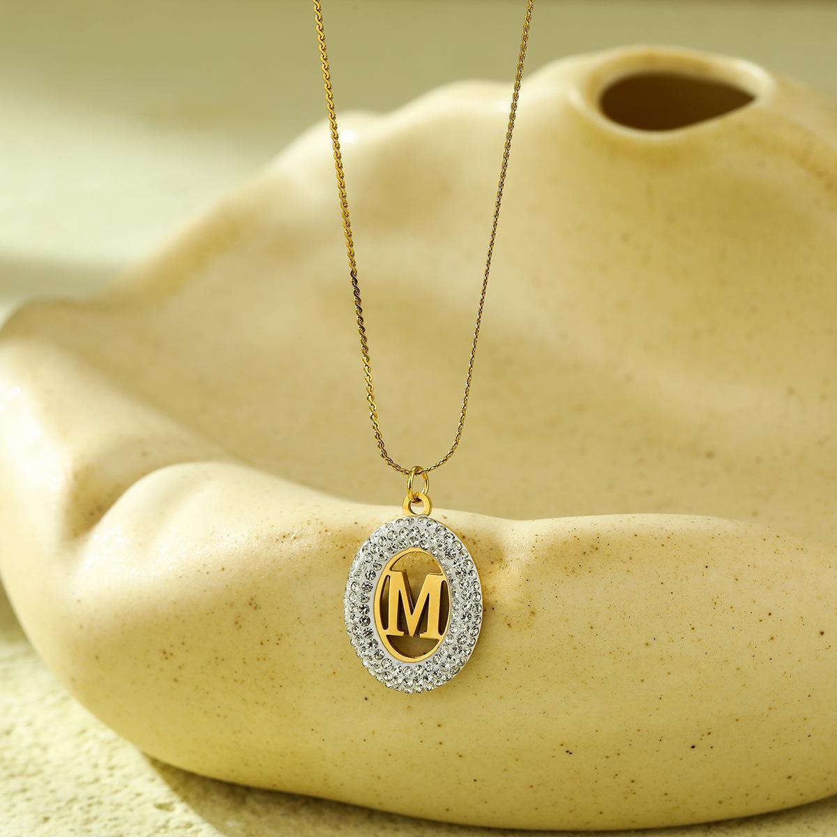 Compra Collar con colgante de letra hueca de circonita con incrustaciones ovaladas de acero inoxidable de alto sentido de Joker de moda europea y americana, joyería al por mayor al por mayor en Joom.pro