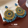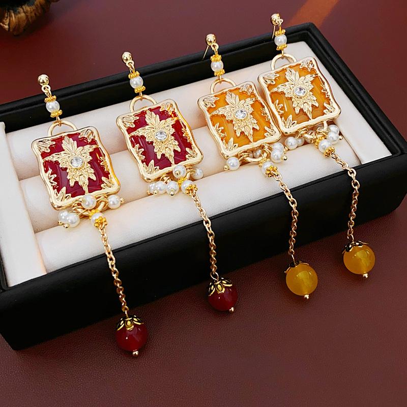 1 # Silver needle-red, 2 # Silver needle-yellow, 3 # Silver needle diamond circle square drop earrings, 4 # Si...