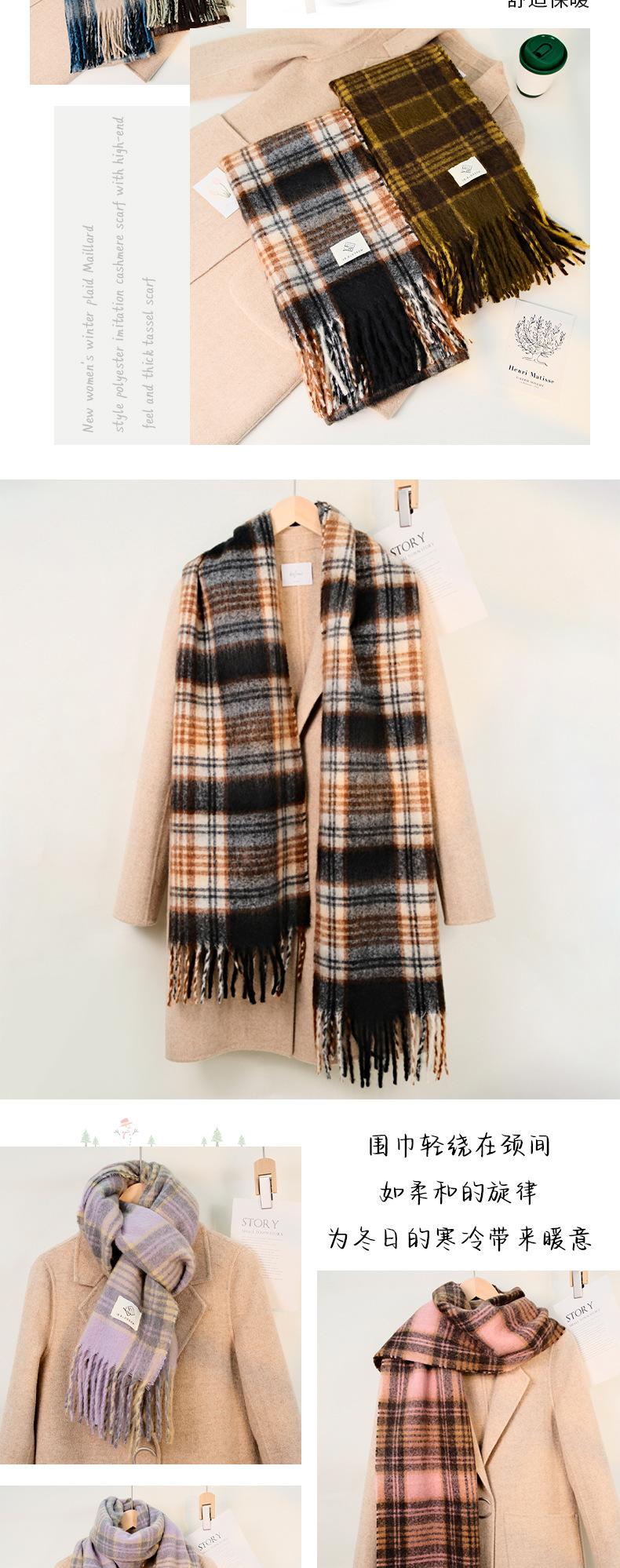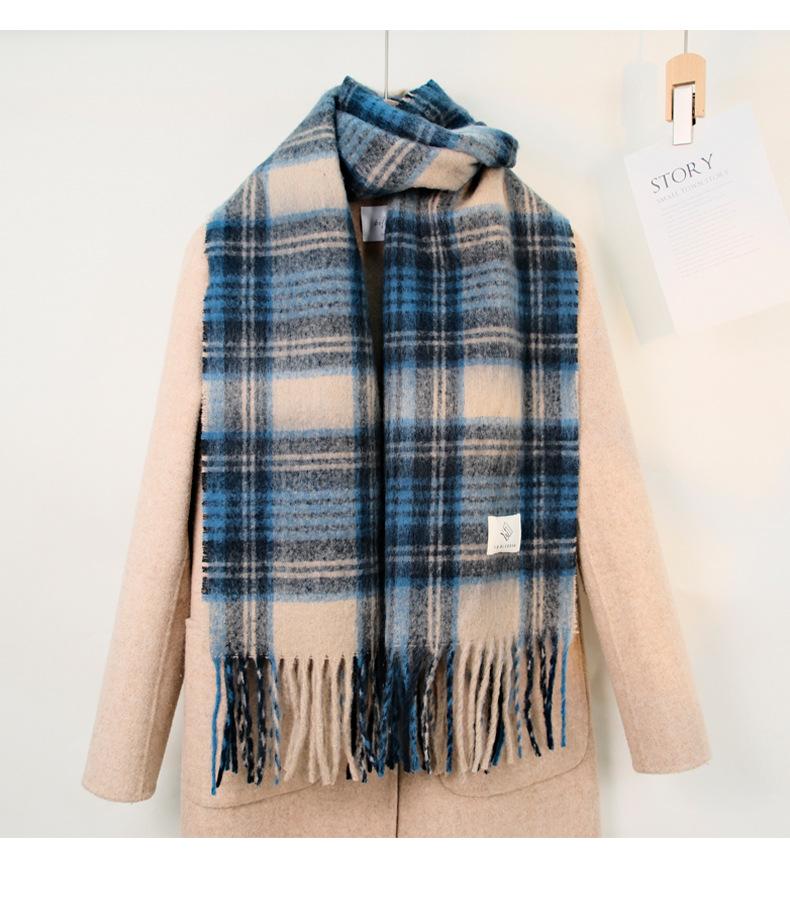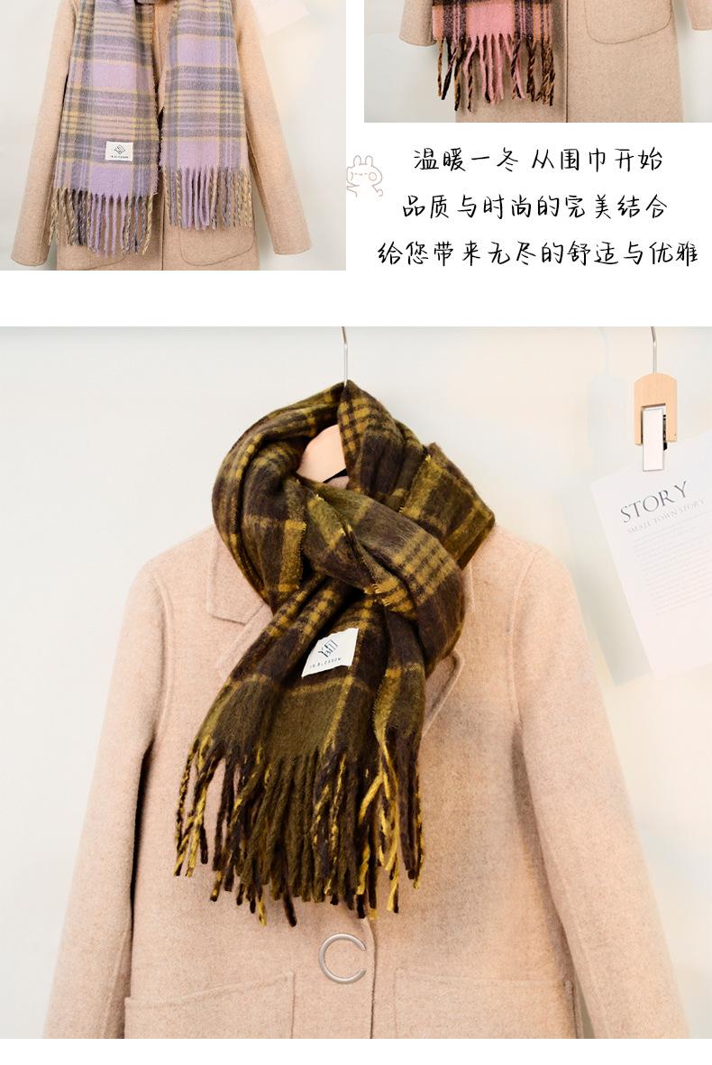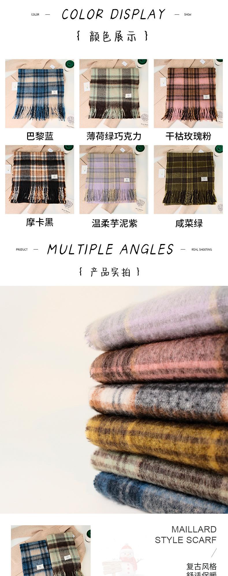 Invierno Estilo Coreano Retro Cuadros Bufanda para el Cabello Pegada Mujer de Alta Gama Gruesa Larga Exterior Cálida Chal de Mohair de Imitación