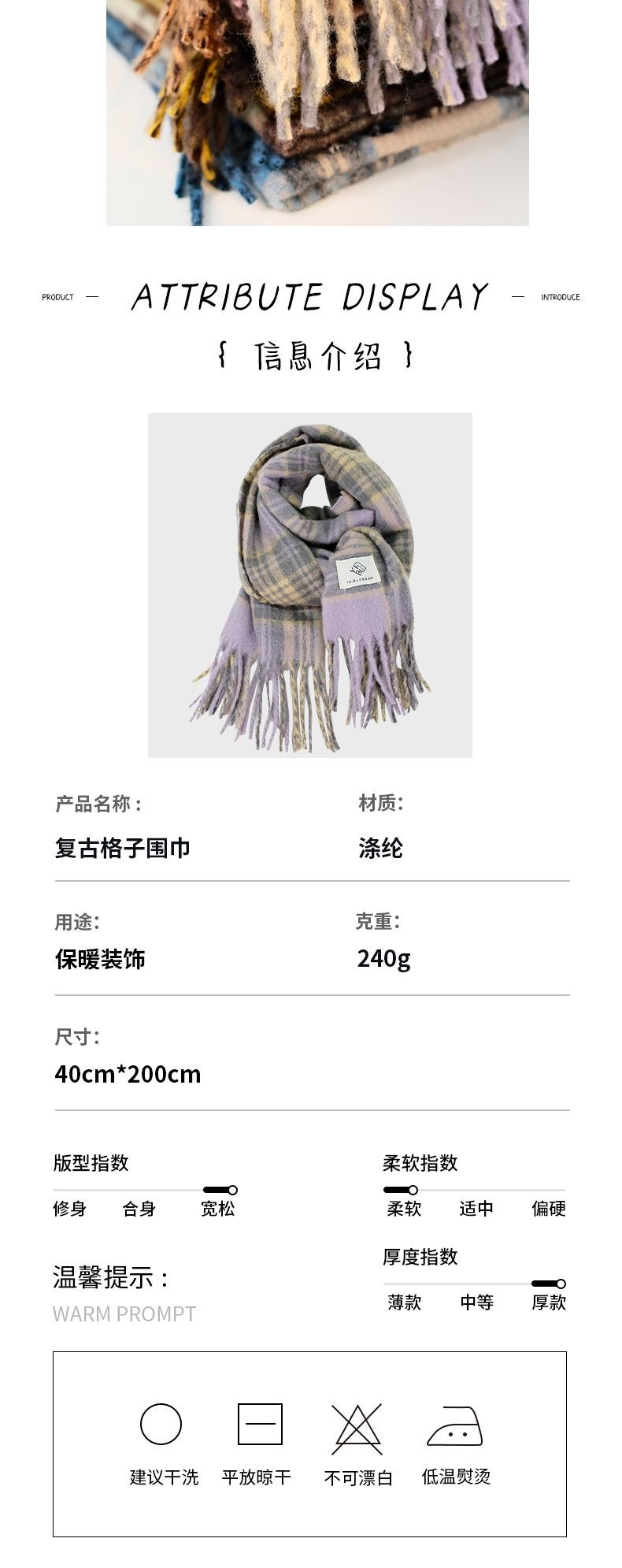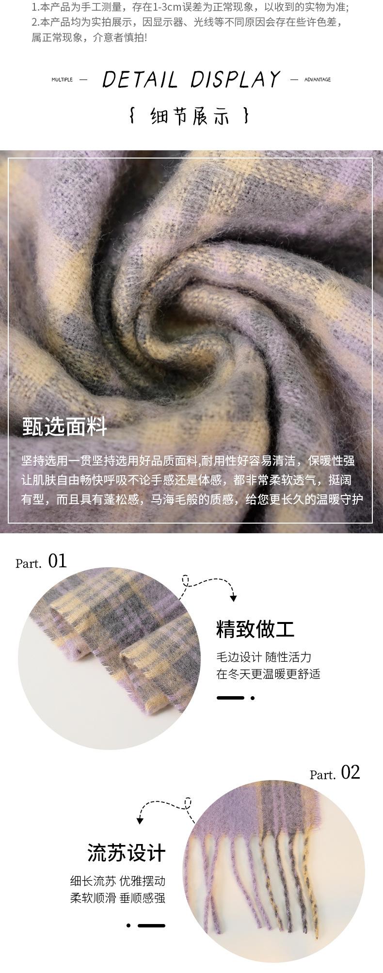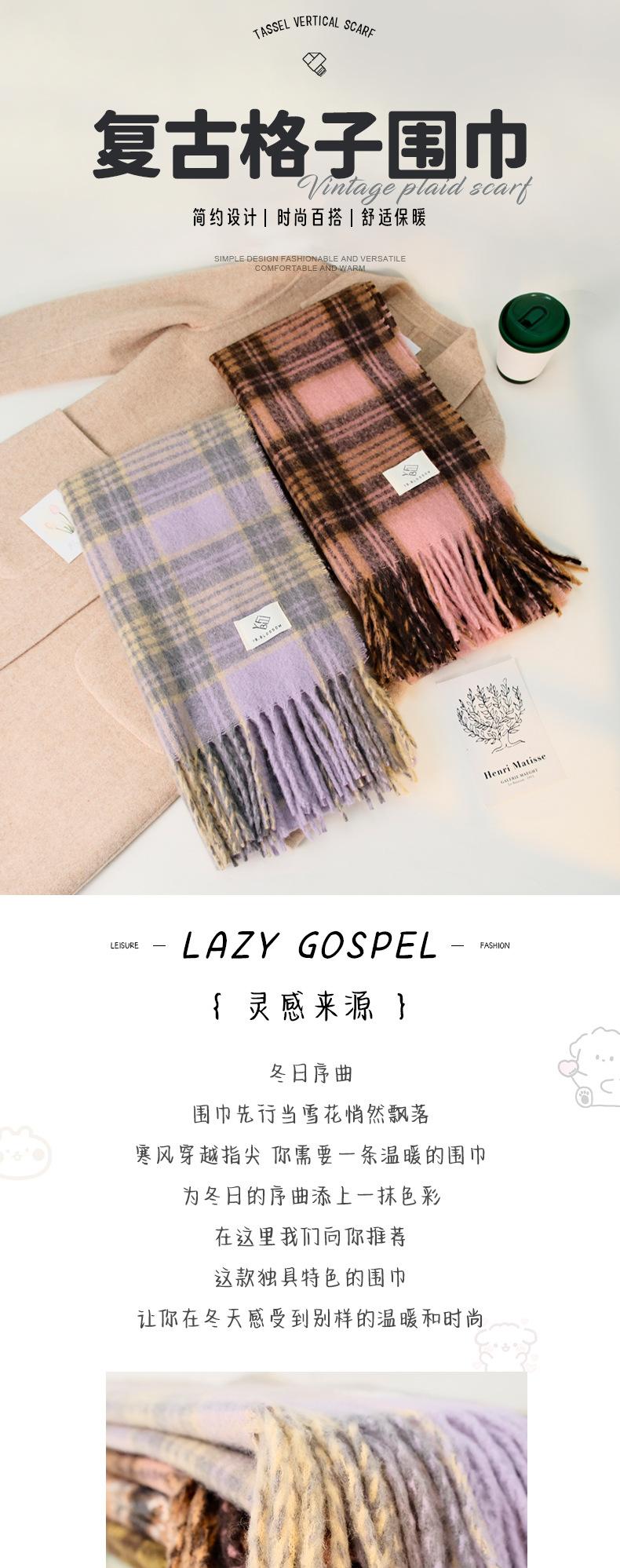 Invierno Estilo Coreano Retro Cuadros Bufanda para el Cabello Pegada Mujer de Alta Gama Gruesa Larga Exterior Cálida Chal de Mohair de Imitación