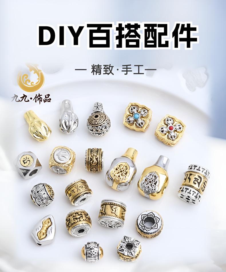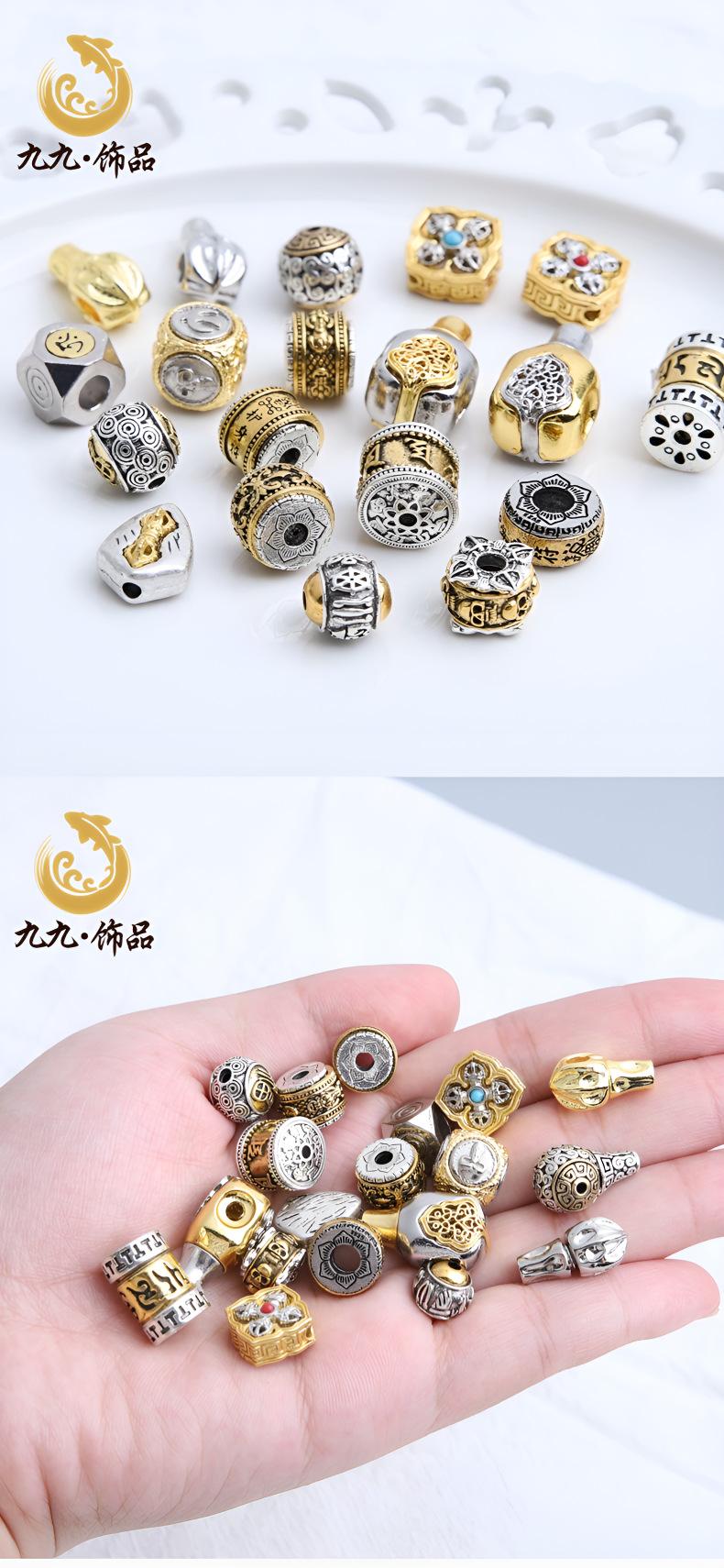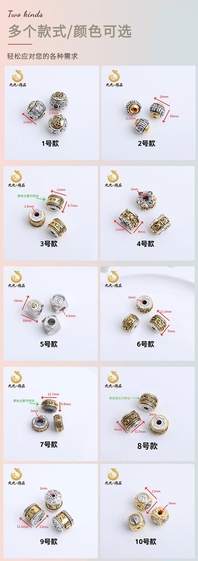 Nuevas cuentas de cubo giratorias de plata Xizang de dos colores incrustadas con cuentas de proverbios de seis caracteres Tee Diy Wen Play Accesorios con cuentas