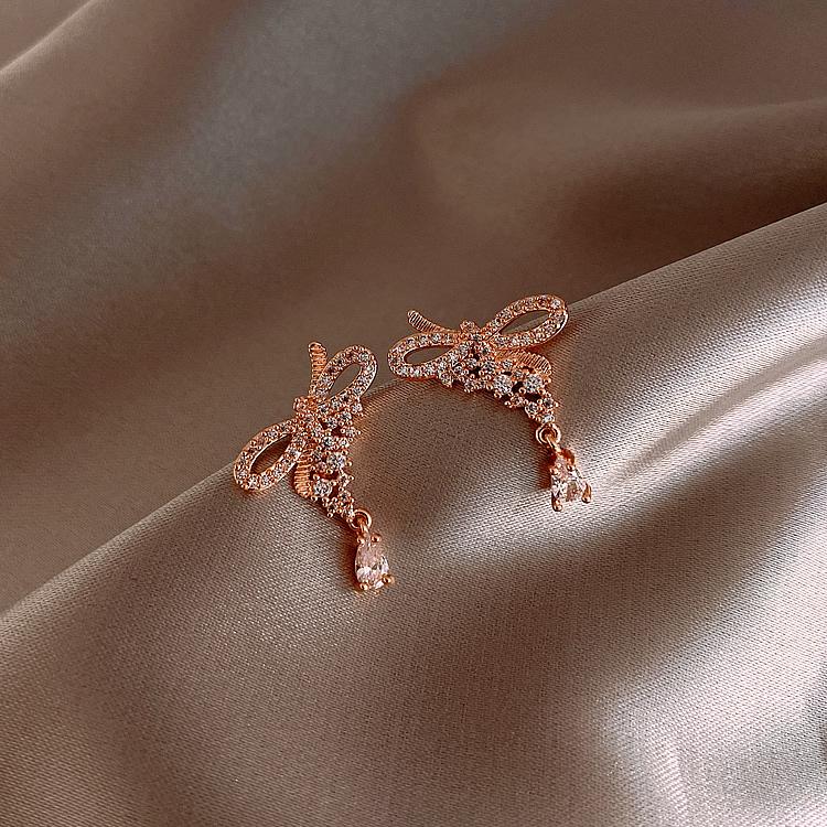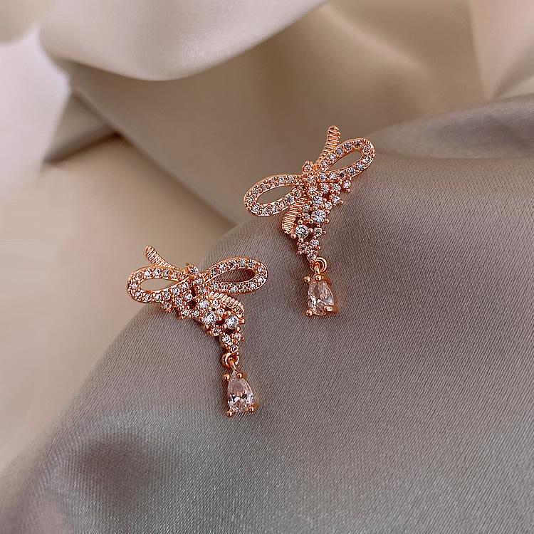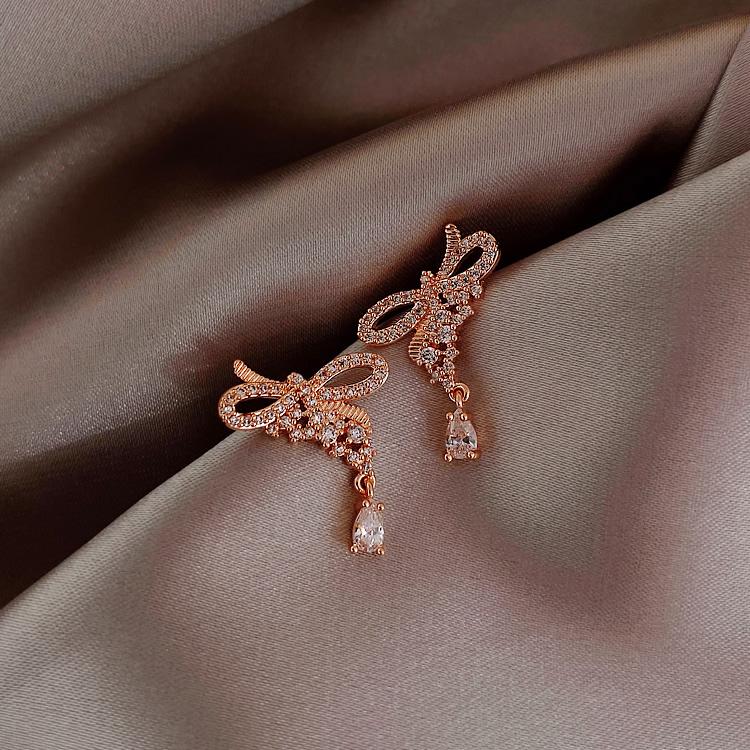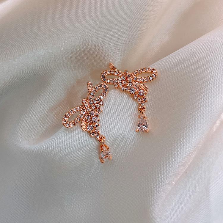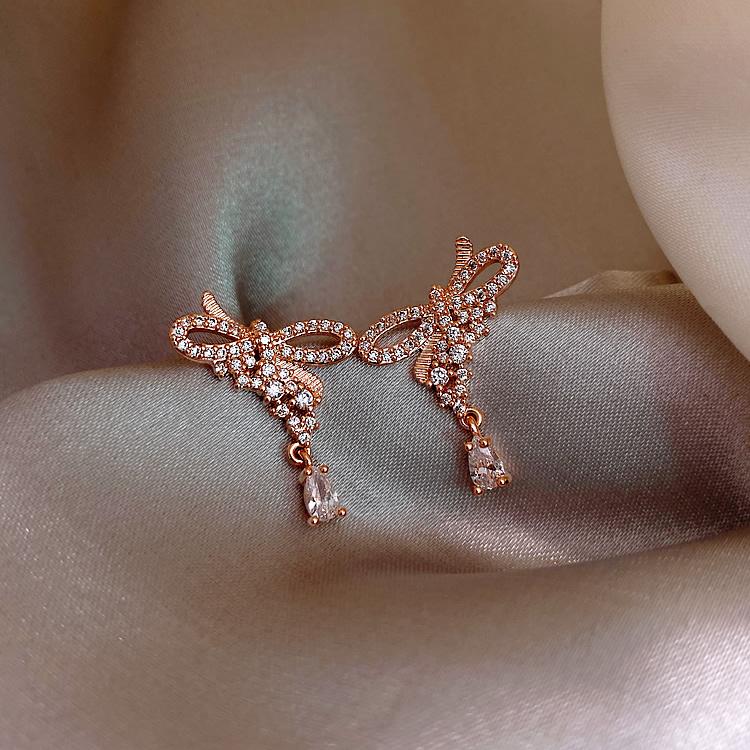 Pendientes de mujer con microincrustaciones, lazos sencillos y elegantes, pendientes de celebridades de Internet, pendientes de aguja de plata 925 para mujer.