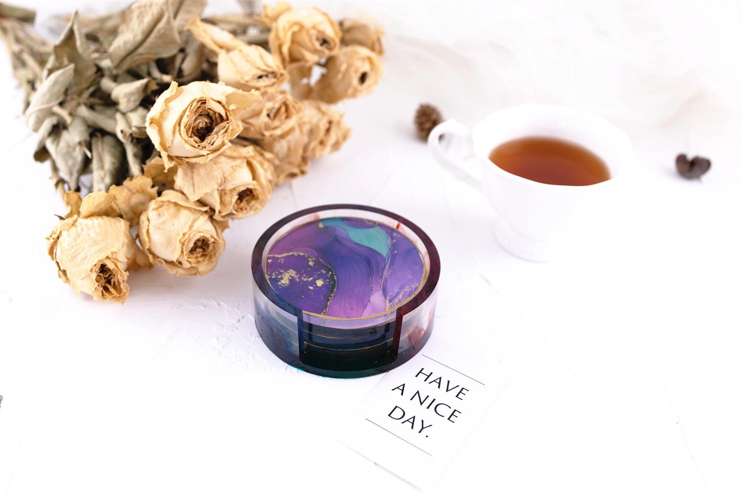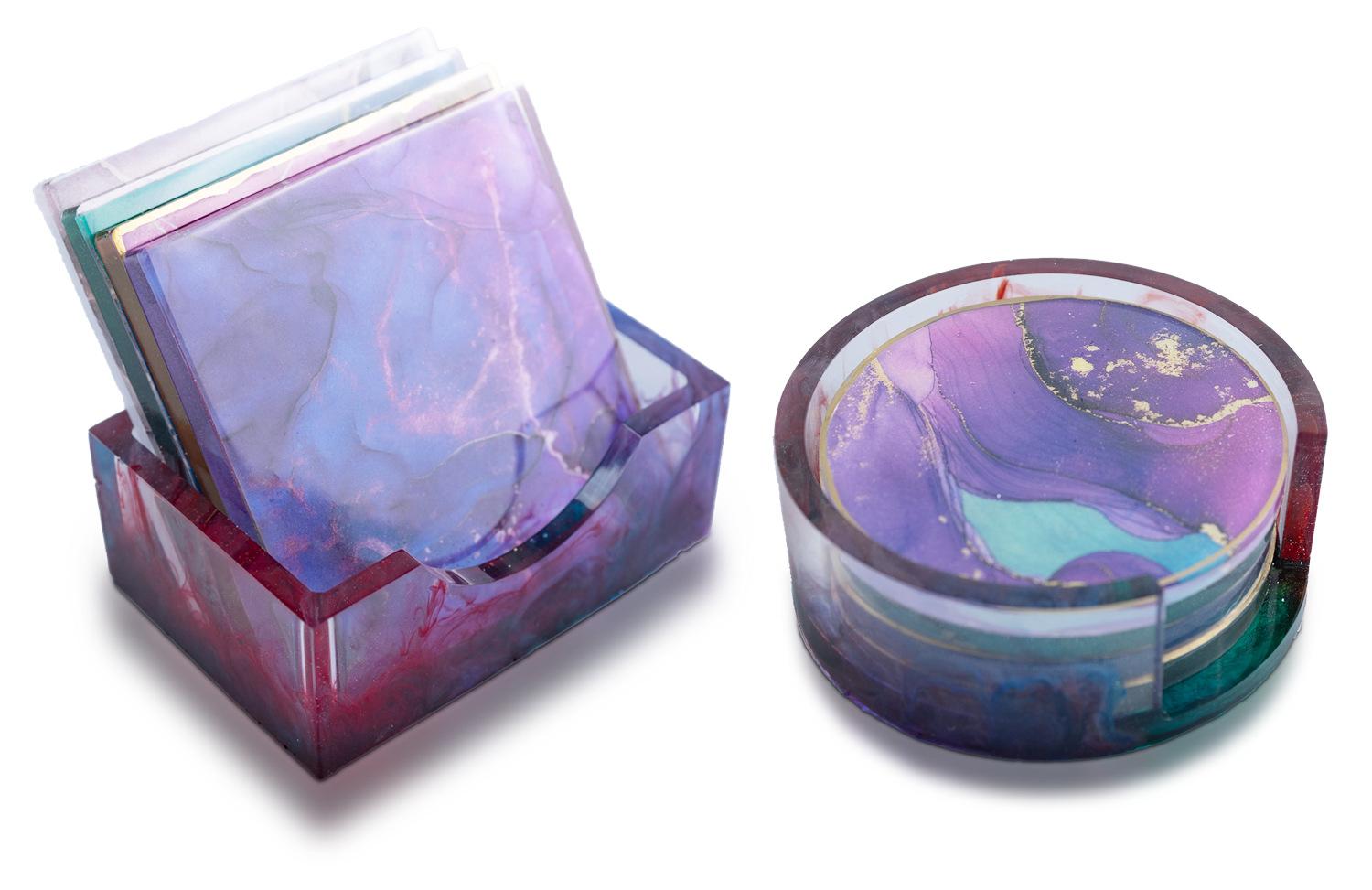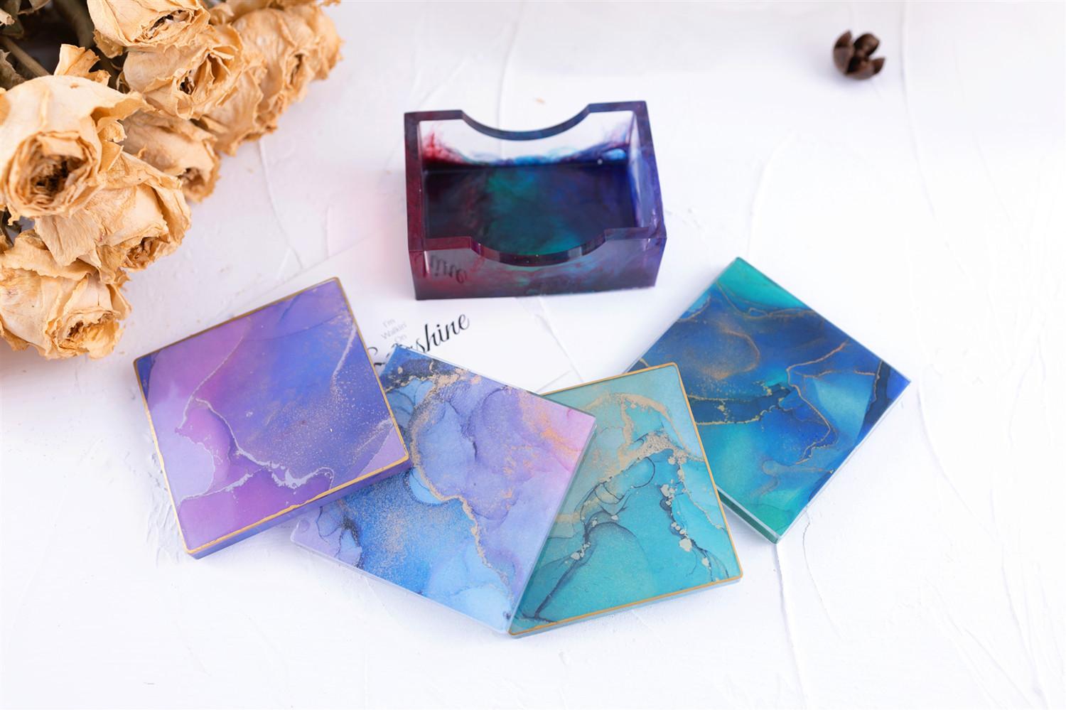 Compra Posavasos redondos de resina epoxi con pegamento de gota de cristal, caja cuadrada para taza, caja de almacenamiento, molde de espejo de silicona al por mayor en Joom.pro