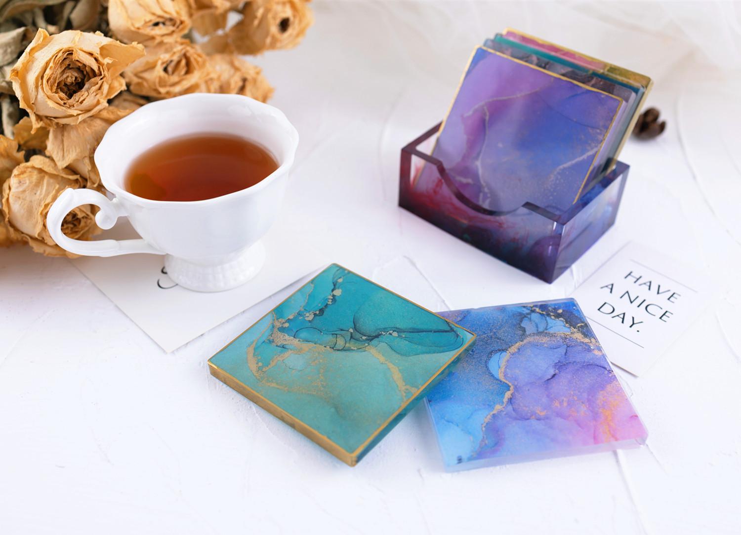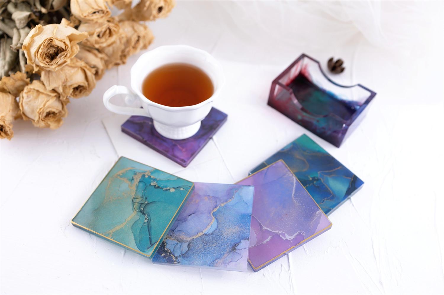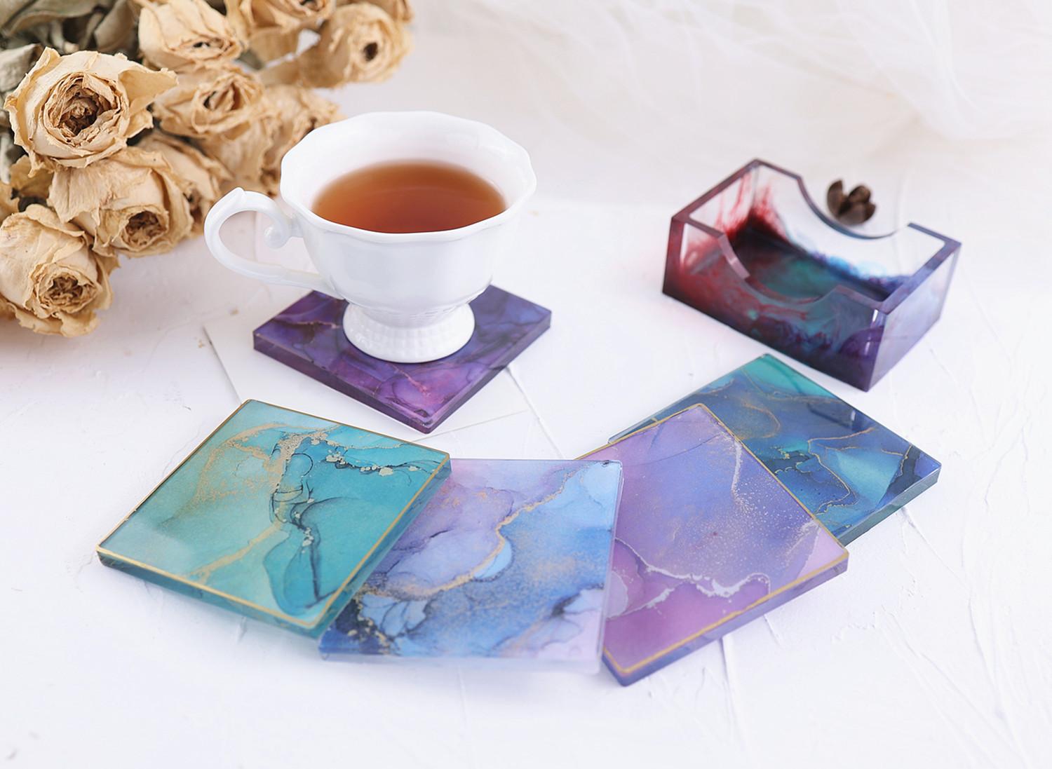Compra Posavasos redondos de resina epoxi con pegamento de gota de cristal, caja cuadrada para taza, caja de almacenamiento, molde de espejo de silicona al por mayor en Joom.pro